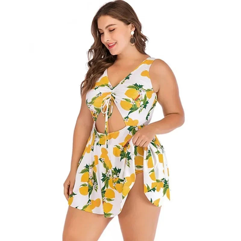 New One Piece Swimsuit Women Tankini Plus Size Swimwear Summer Print Big Swimdress Bikini Beach Wear Bathing Suit 2025 Mujer 5XL