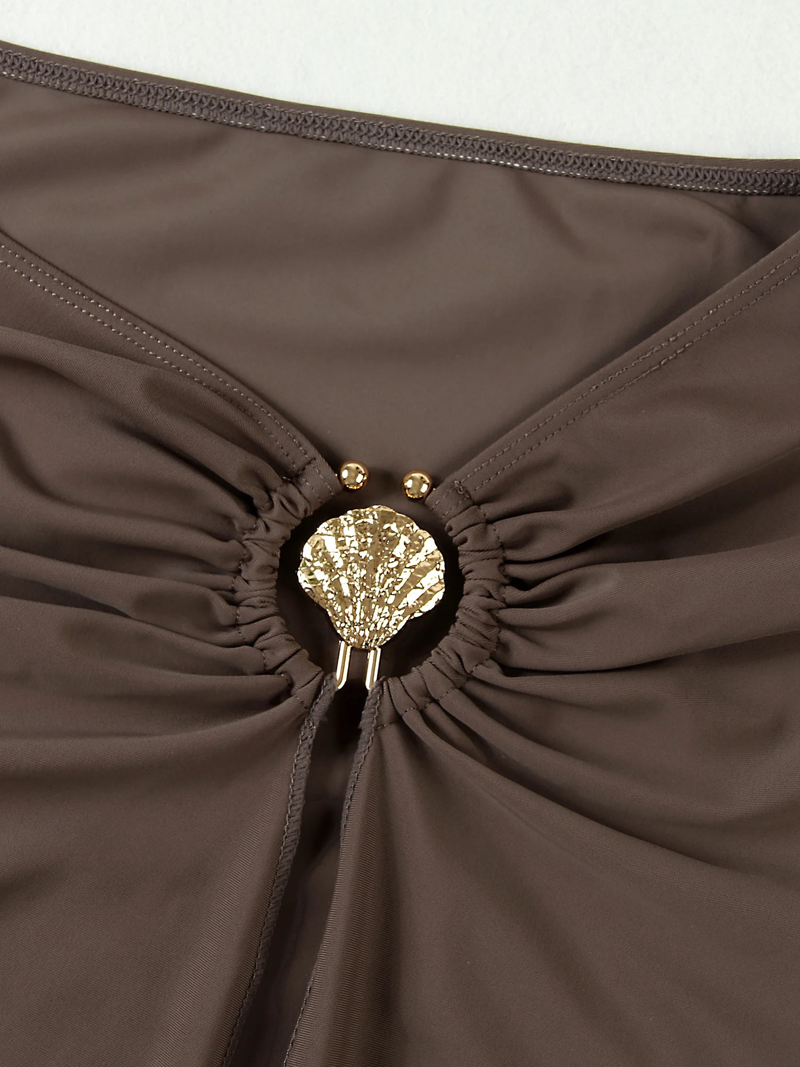 New Stylish Bikini 3 Piece Sexy Shell Swimsuit and O Ring Long Skirt Brazilian Biquini High Split Beachwear Vacation Outfit K131