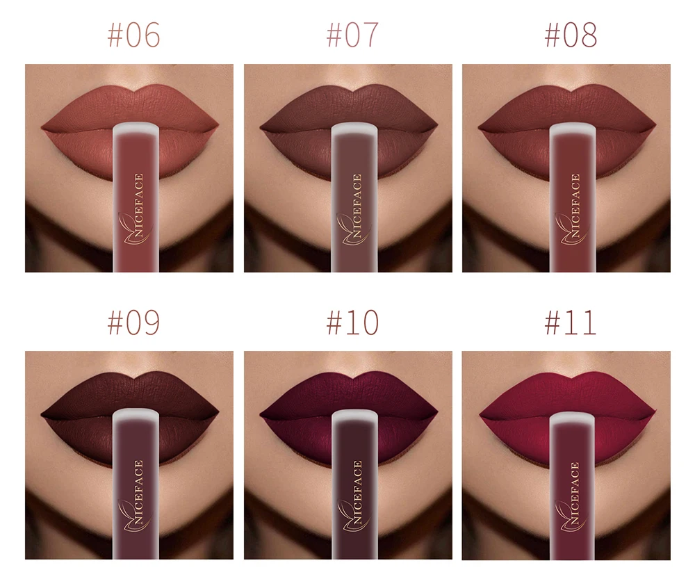 NICEFACE Nude Liquid Lipstick Ultra Matte Velvet Long Lasting Women Beauty Red Nonstick Cup Waterproof Lip Gloss Lips Cosmetics