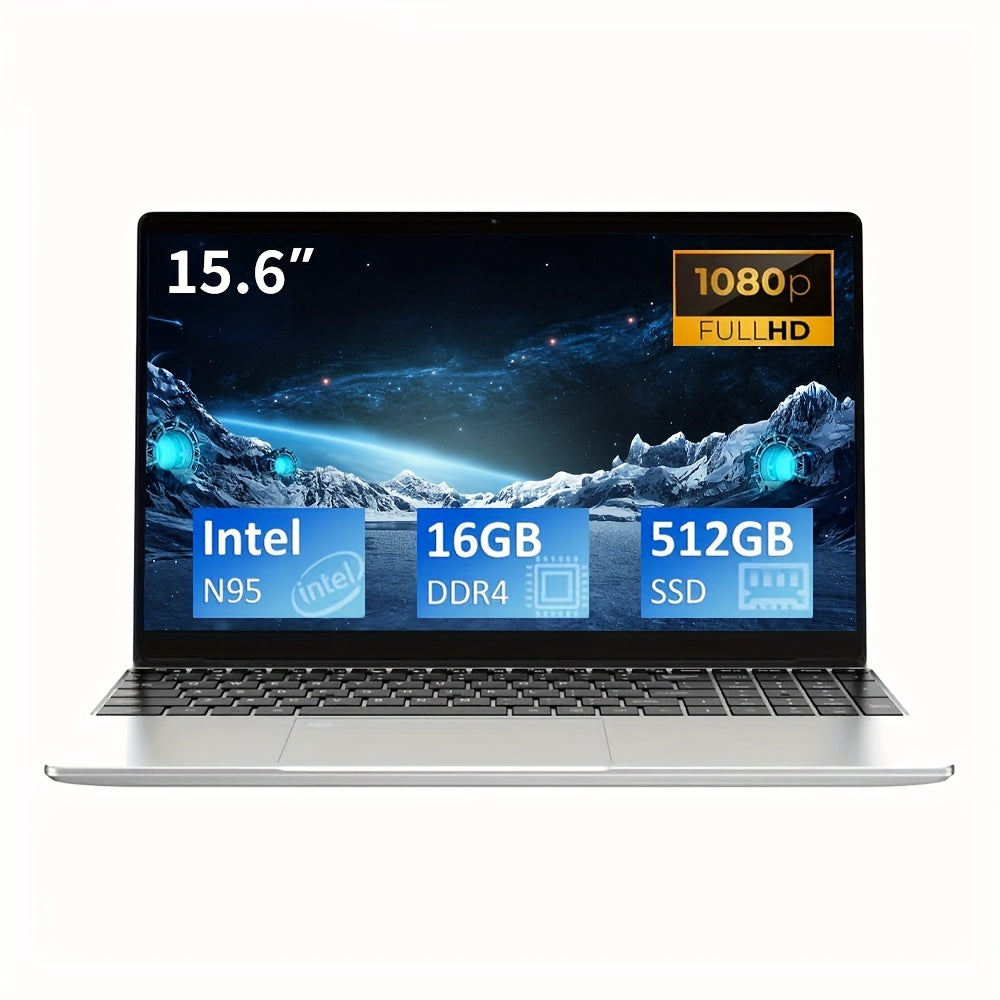 Ninkear N15 Air 39,62 cm Laptop, Intel Celeron N95, 16 GB DDR4, 512 GB SSD, display HD 1920x1080, cornice ultra sottile, tastiera full size, ampio trackpad, design leggero con apertura a 180°, USB 3.0, Wi-Fi, batteria ricaricabile, laptop leggero