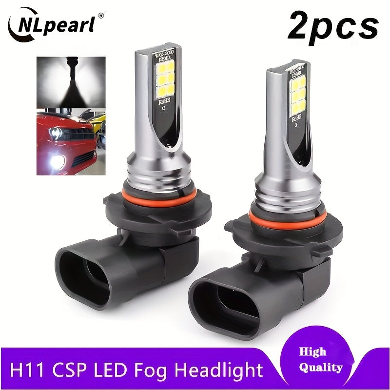 NLpearl 2pz Luci Fendinebbia LED CSP Ultra-Luminose per Auto - Compatibili con H8/H11, Luce Bianca Fredda 12V 6000K, Alloggiamento in Lega di Alluminio, Visibilità Giorno e Notte, Bassa Dissipazione del Calore, Angolo 360°, Super Luminosità per una Guida