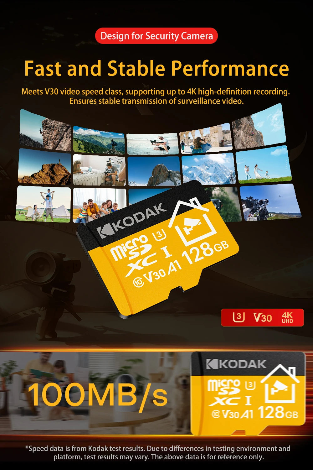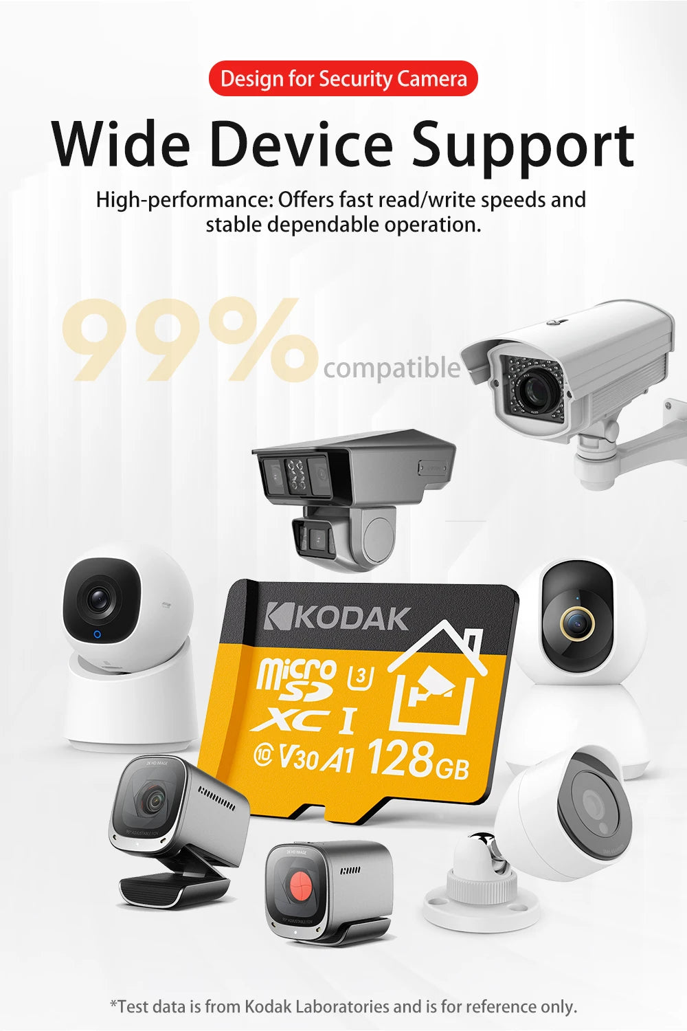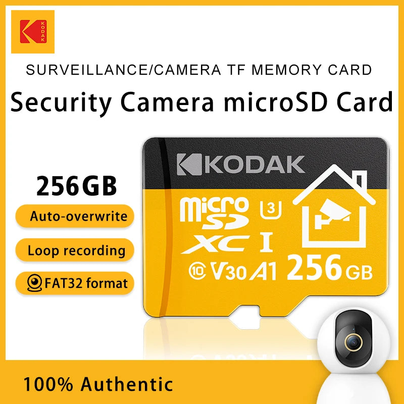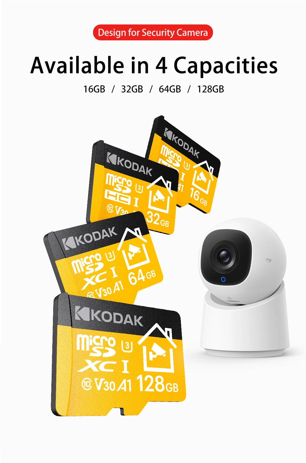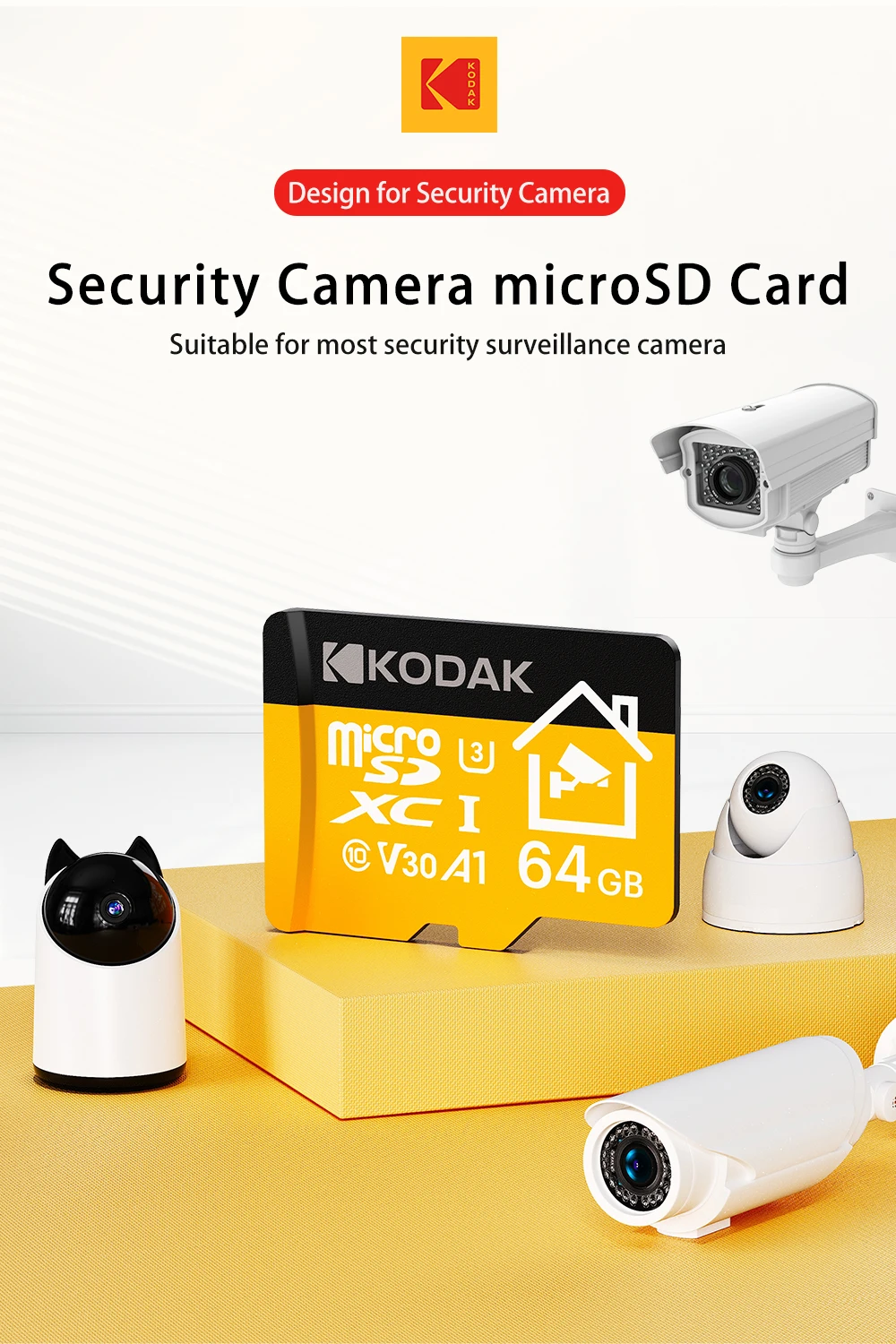 Nuova scheda Micro SD Kodak 32 GB 64 GB 128 GB 256 GB Scheda di memoria per telecamera di sicurezza, DVR, smartphone Scheda TF Scheda Microsd