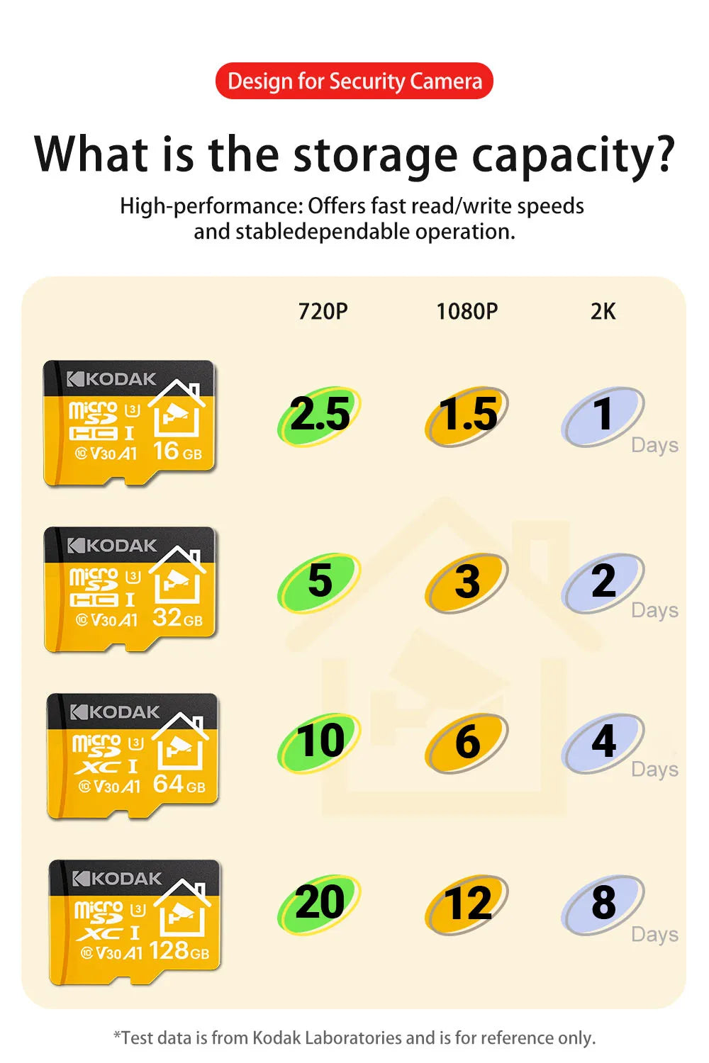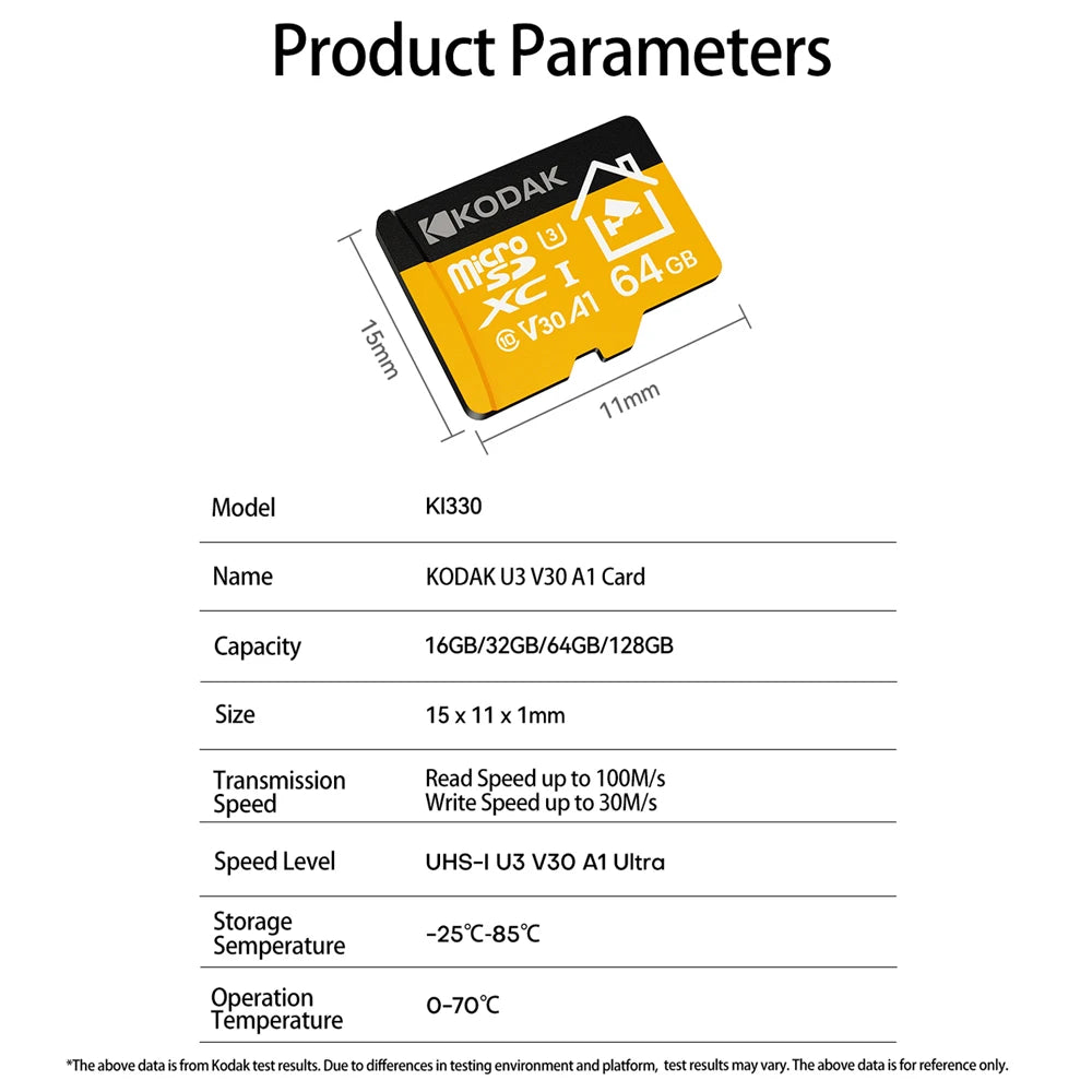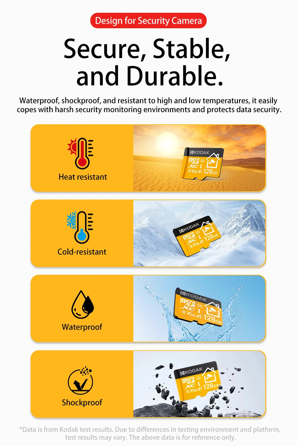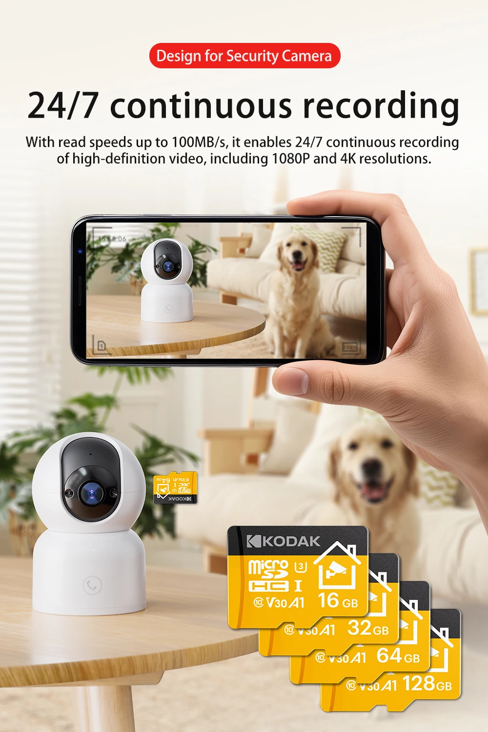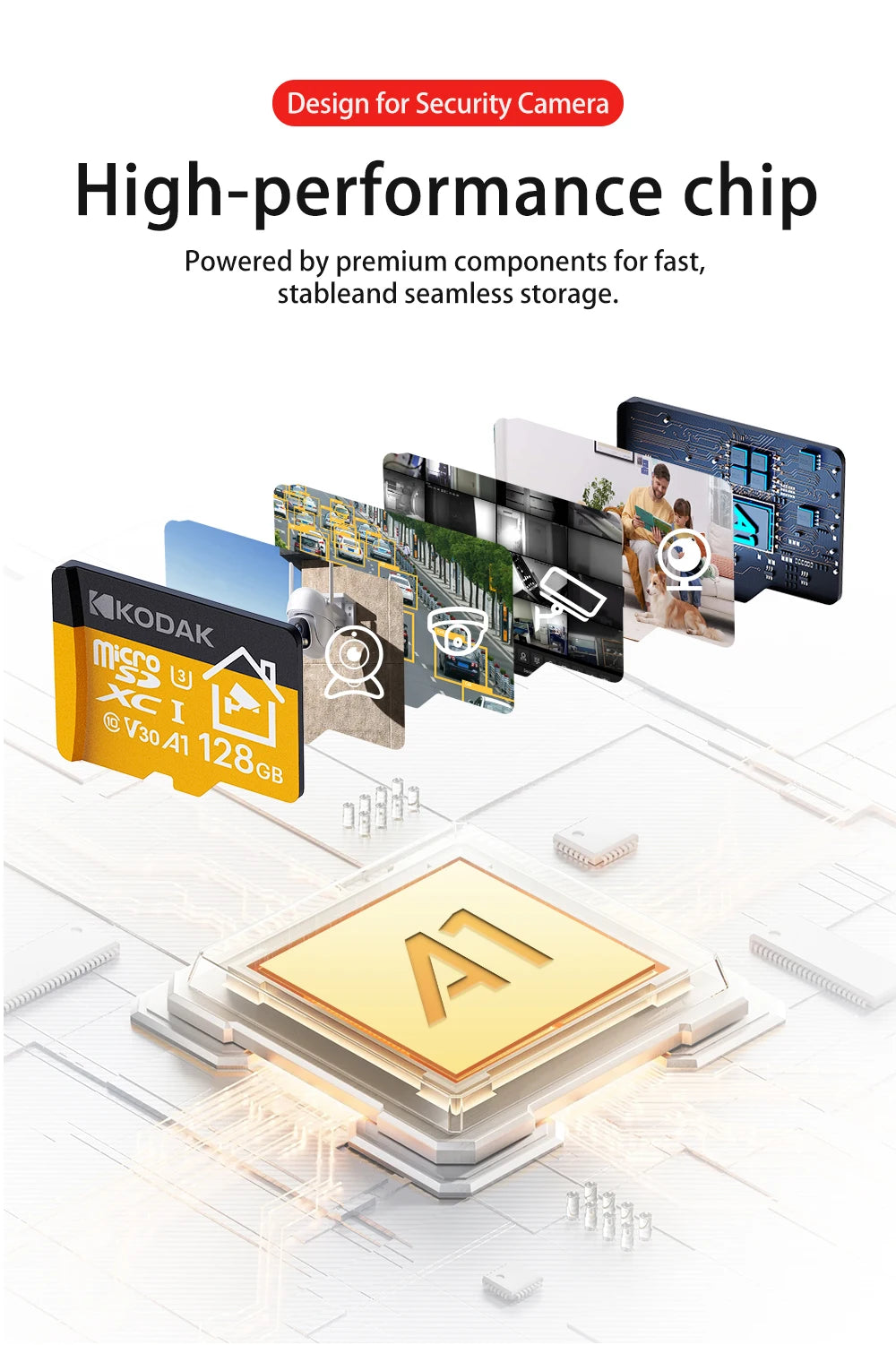 Nuova scheda Micro SD Kodak 32 GB 64 GB 128 GB 256 GB Scheda di memoria per telecamera di sicurezza, DVR, smartphone Scheda TF Scheda Microsd