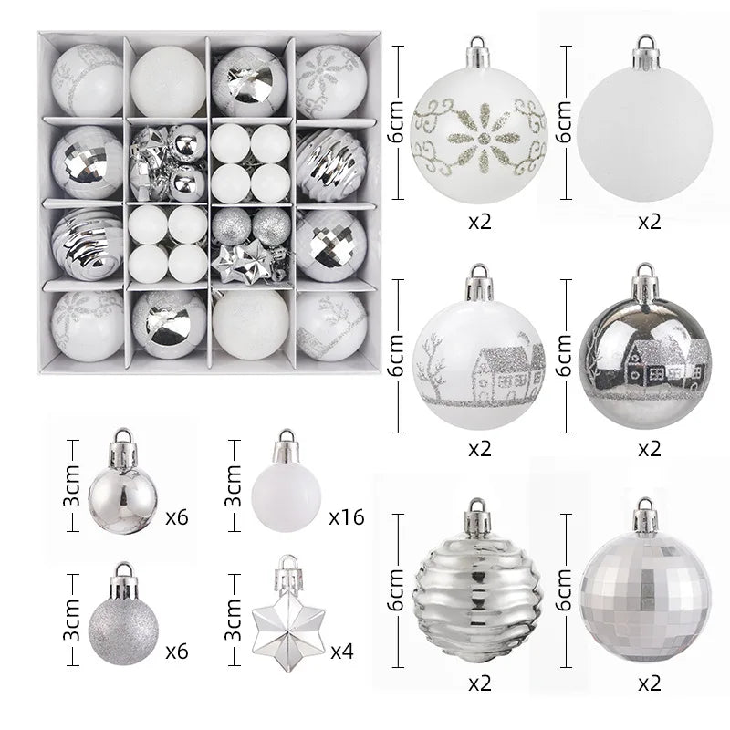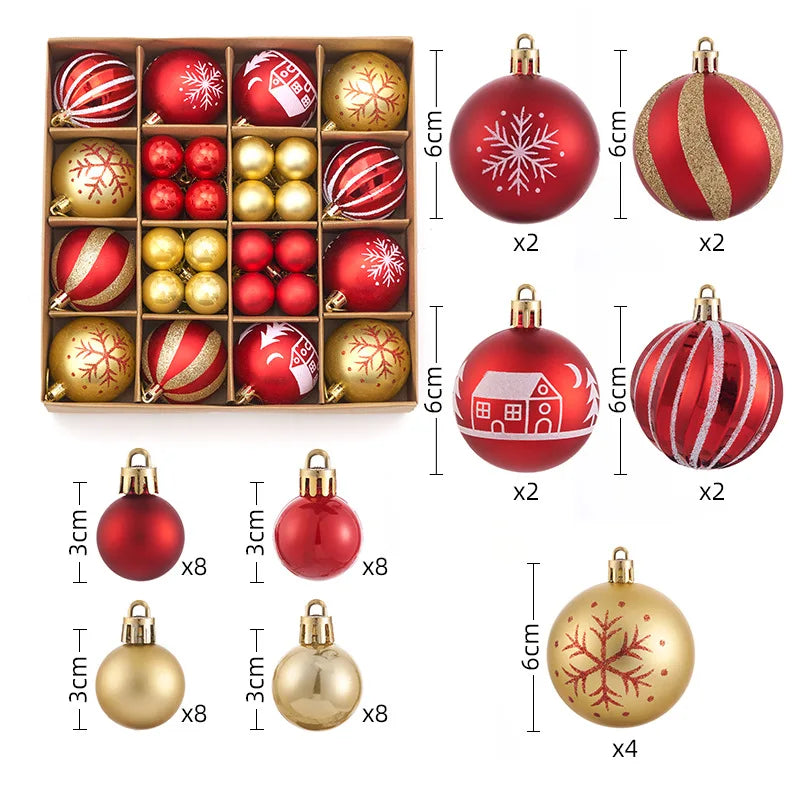 Nuovi 42 set di decorazioni natalizie Palline verniciate elettrolitiche, palline di plastica, decorazioni per finestre, pendenti per albero di Natale
