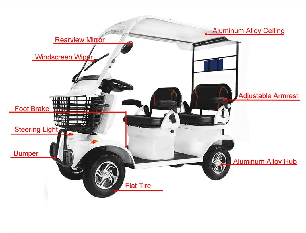 Mini Autobus Elettrico 2-4 Posti con Tetto - Scooter Turistico Doppia Fila