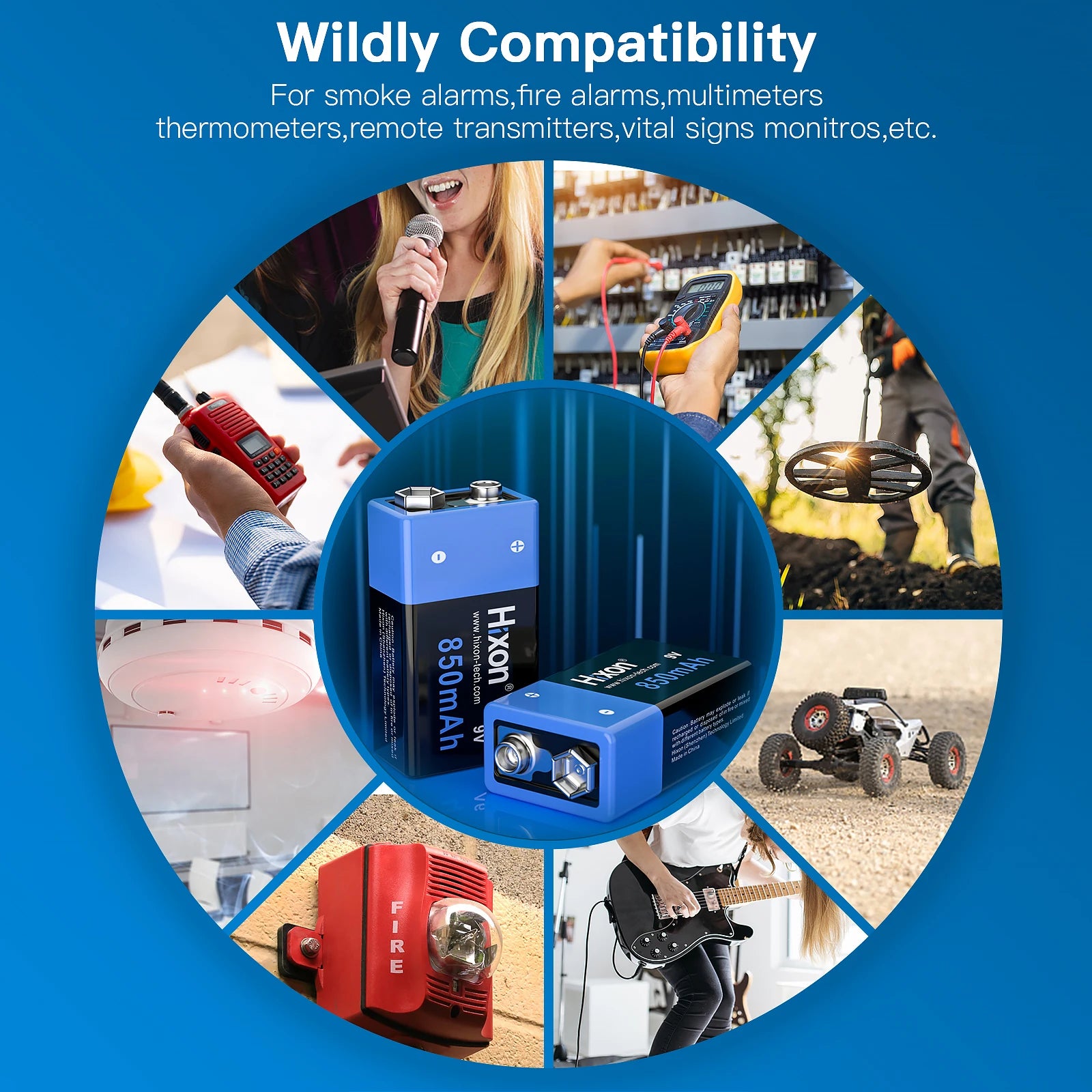 Nuovo 6f22 9v 850mah Batteria ricaricabile agli ioni di litio 9V Multimetro Microfono al litio Metal Detector Cavo remoto, Rilevatore di fumo