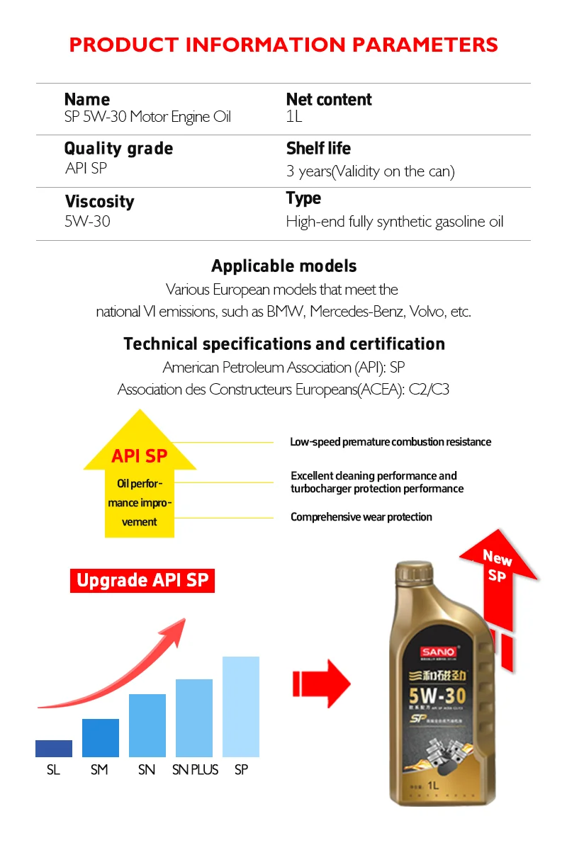 SPECIFICATIONSChoice: yesFeatures: Excellent LSPI performance,Superior cleaning,Lower ash contentMarca: SANVOOrigine: CN (Origine)Peso dell'articolo: 1.05Prodotti chimici ad alto impatto: NessunoTipo di articolo:... Per saperne di più