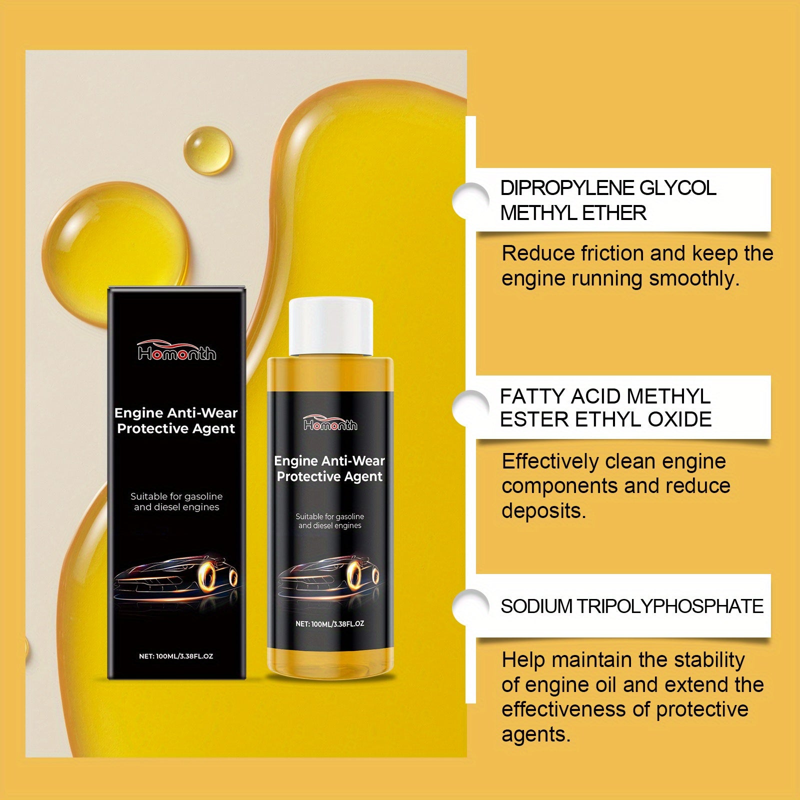 Olio Protettivo Antiusura per Motori - Riduttore di Attrito e Potenziatore Prestazioni per Auto, Camion, SUV - Formula di Alta Qualità con Costruzione in Plastica Durevole - Applicazione Facile con Bottiglia Spray