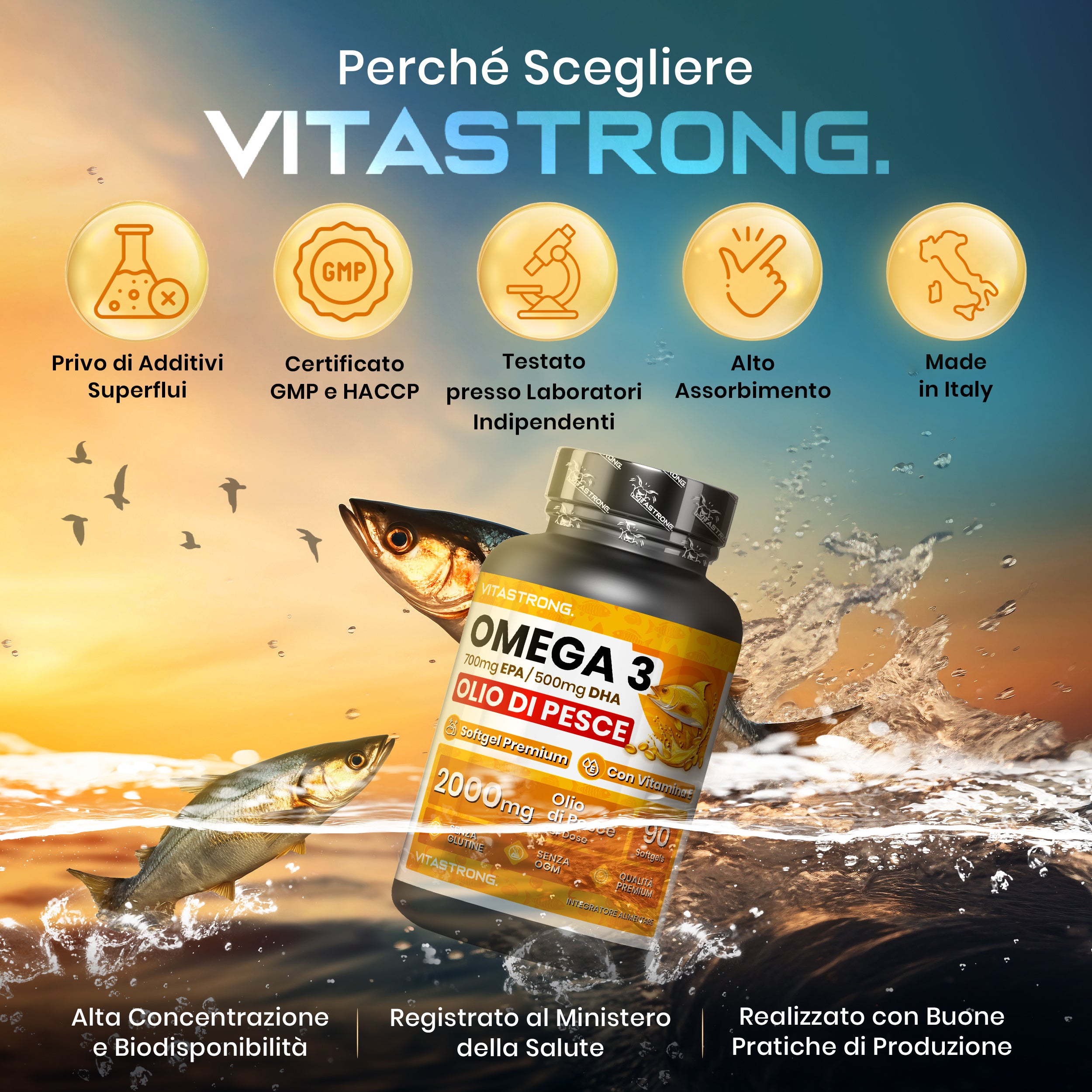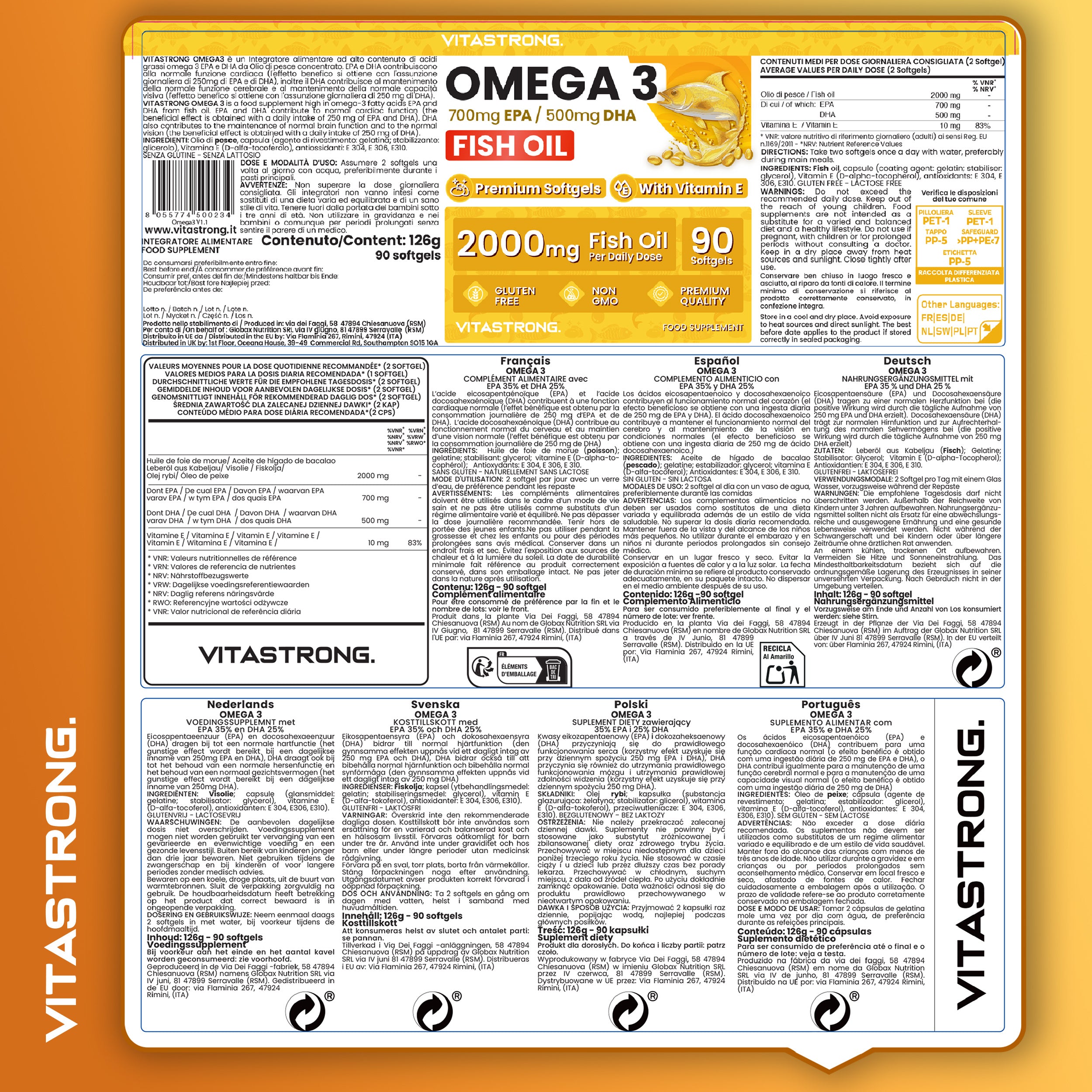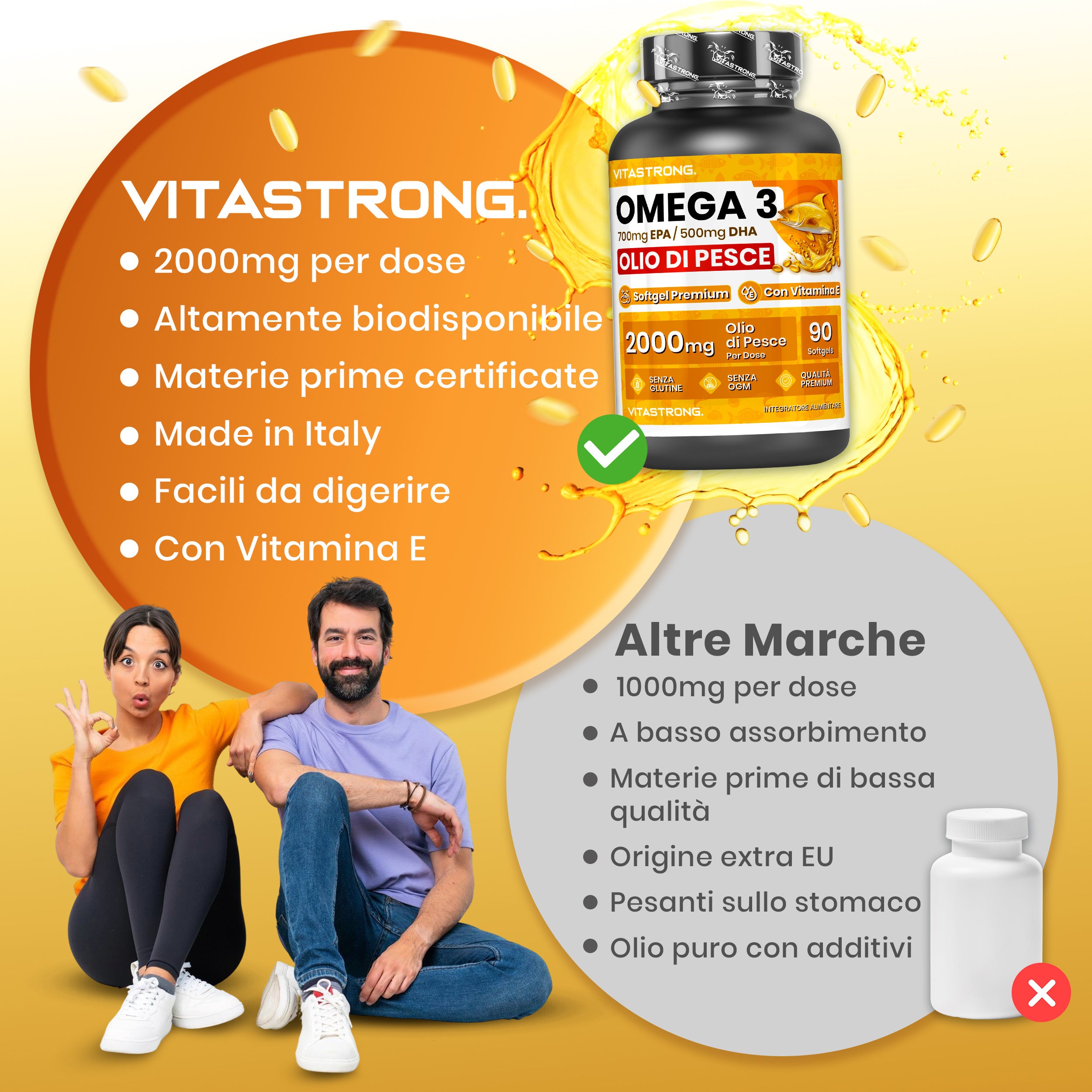 Informazioni sugli allergeni:Senza glutineMarca:VITASTRONG.Modulo di dosaggio del prodotto:CapsuleIngredienti 1:Ingredienti di origine animaleIngrediente principale 1:Olio di pesceIngrediente 2:Acido grassoIngrediente principale 2:Acidi... Per saperne di più