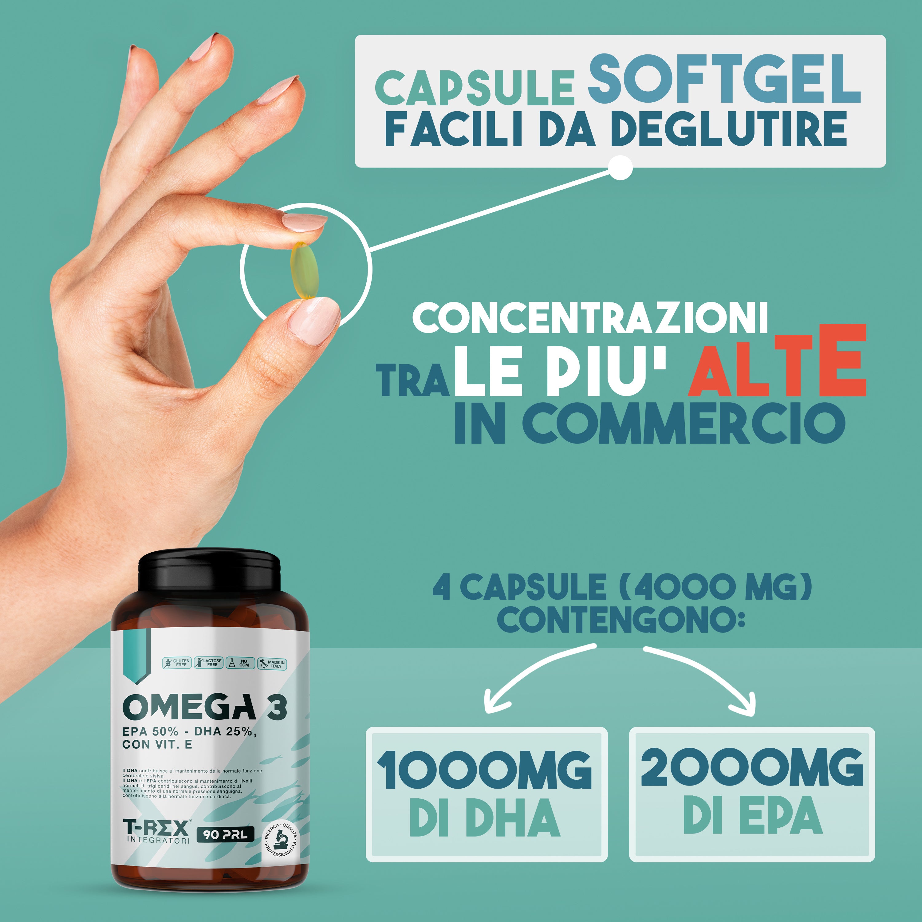 Omega 3 Olio di Pesce FOS 1000 mg - 90 capsule softgel ad Alto Dosaggio EPA 500 mg DHA 250 mg - Integratore Colesterolo, Pressione alta, Cuore - Certificato pesca sostenibile FOS