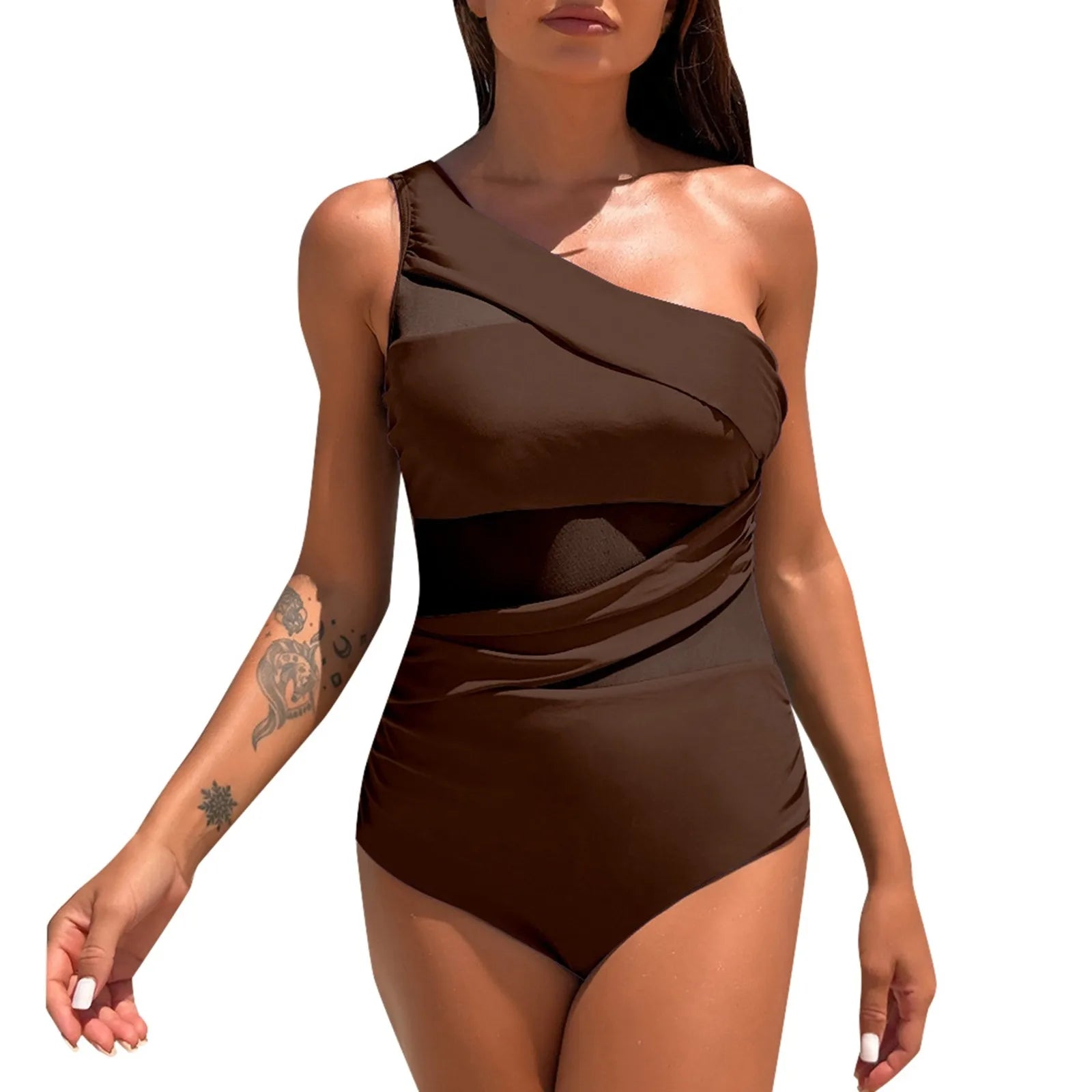 One Shoulder Sports Sexy Swimwear Bikini Mesh Patchwork One Piece Swimsuit For Women Plus Size Swimwear Bathing Suit Monokini
