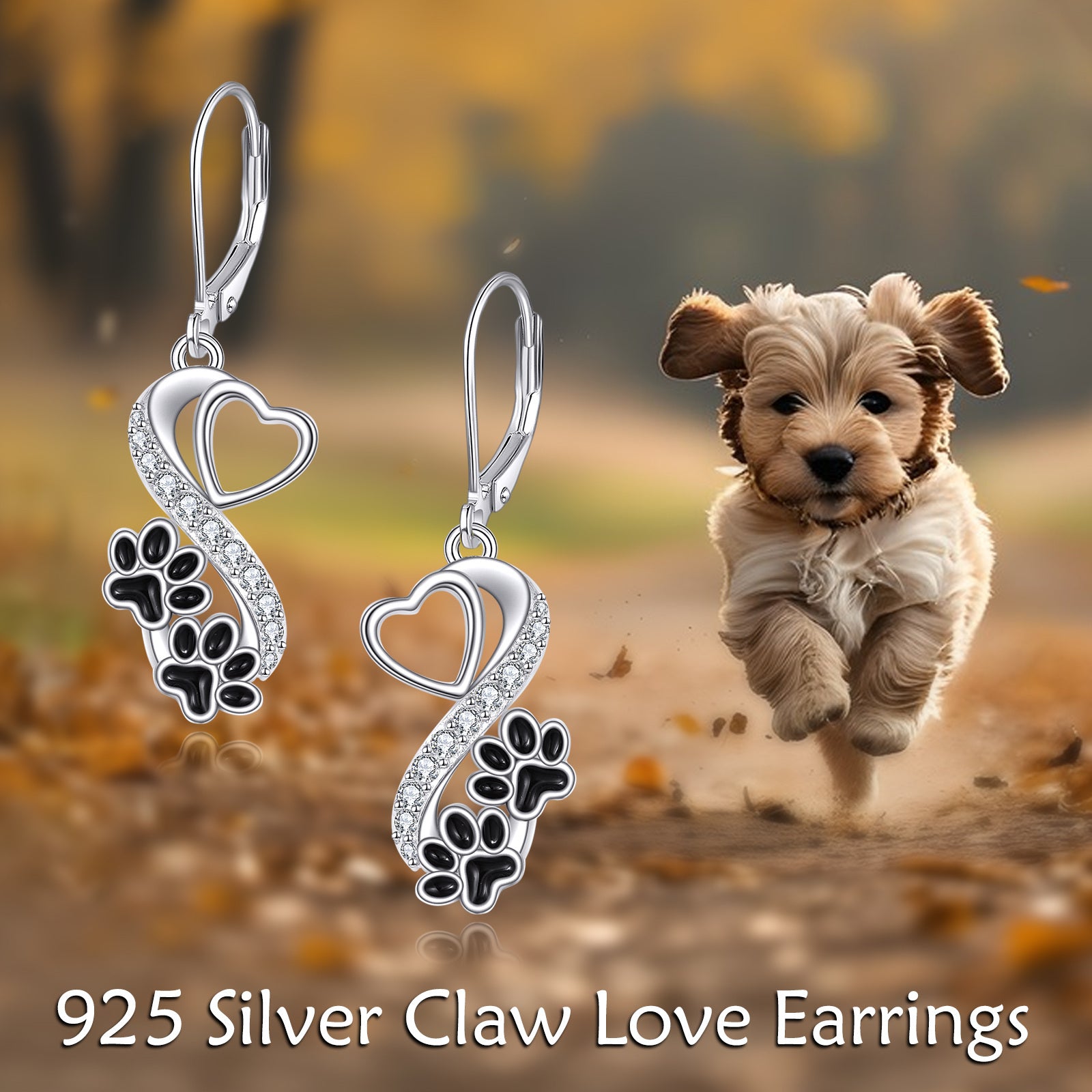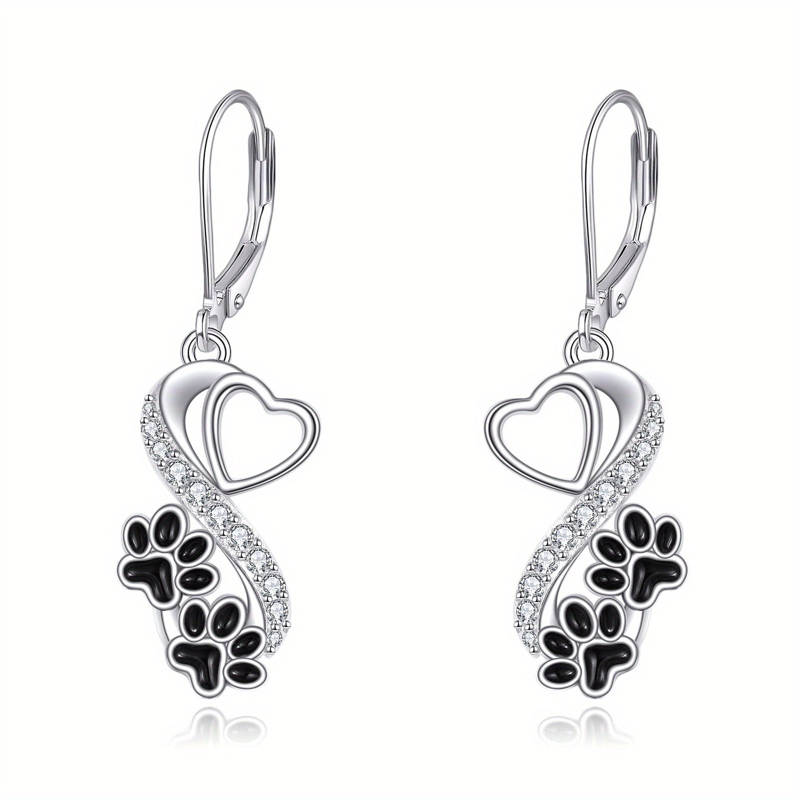 Orecchini a gancio con gatto nero in argento sterling per donne, con stampa di zampe di gatto, regali di compleanno e Natale per mamma