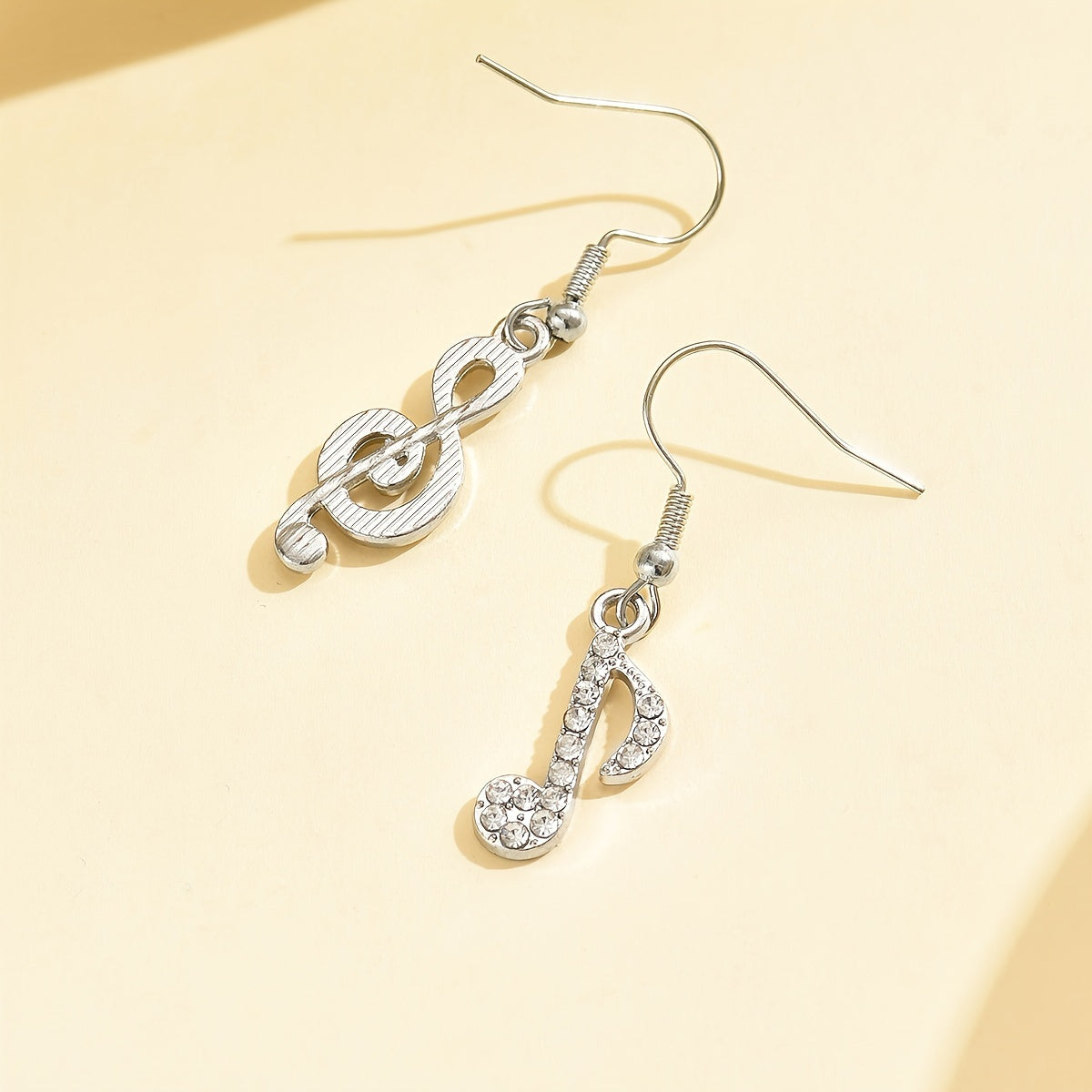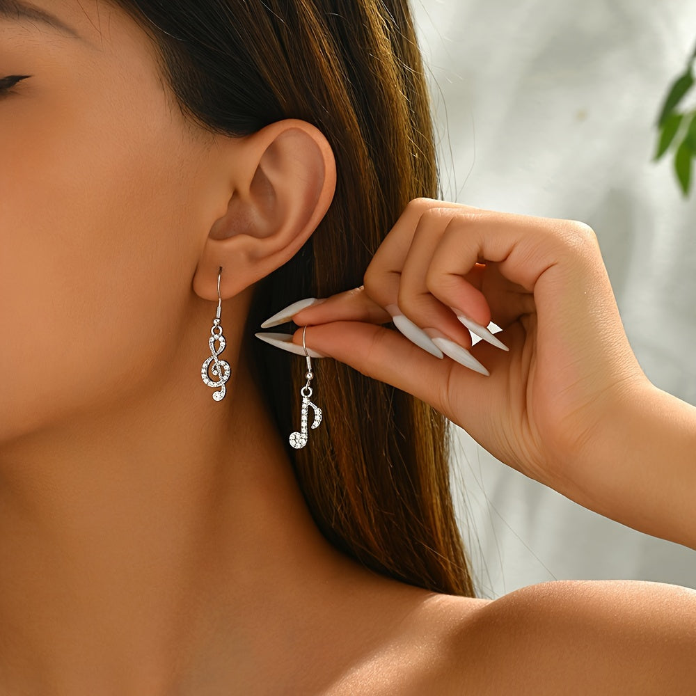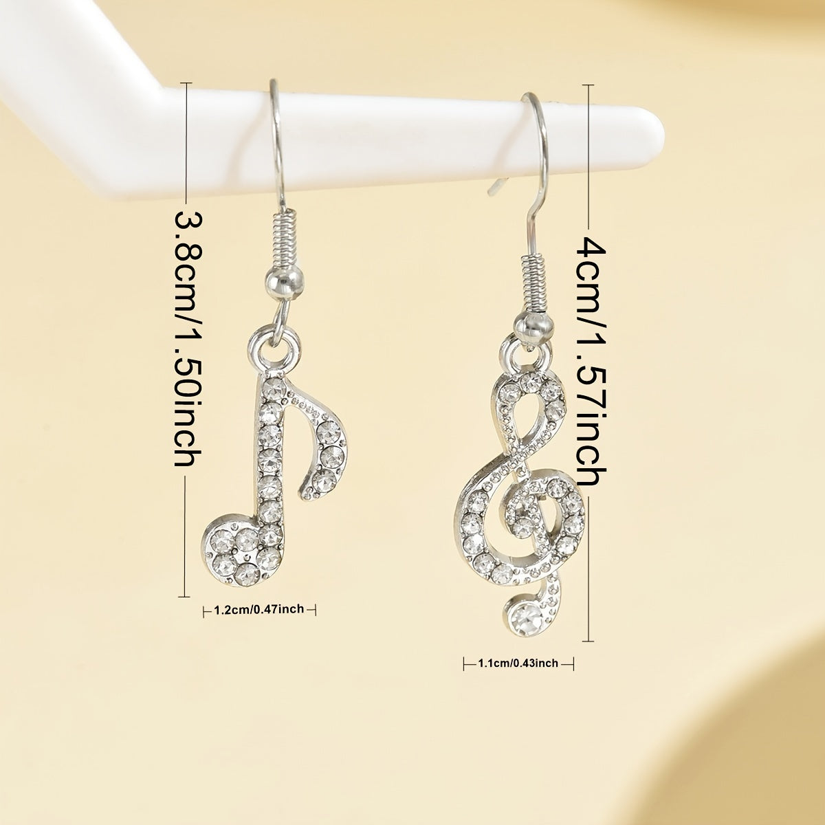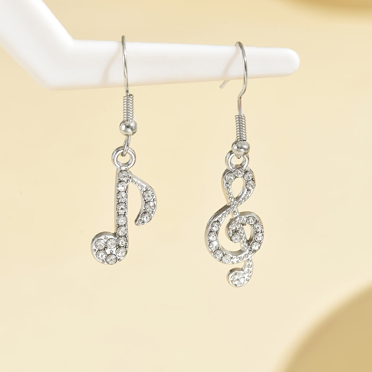 Orecchini a goccia di nota musicale con accenti di rhinestone, mosaico di vetro di moda, corpo in lega e ago auricolare in ferro per donne e ragazze - Regalo ideale per gli amanti della musica, festival e uso quotidiano - 1 paio