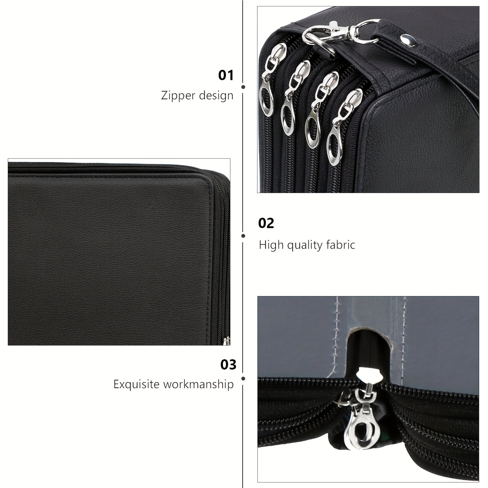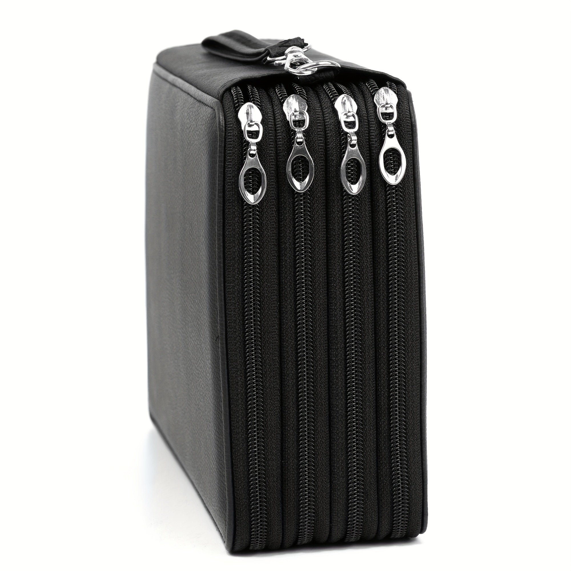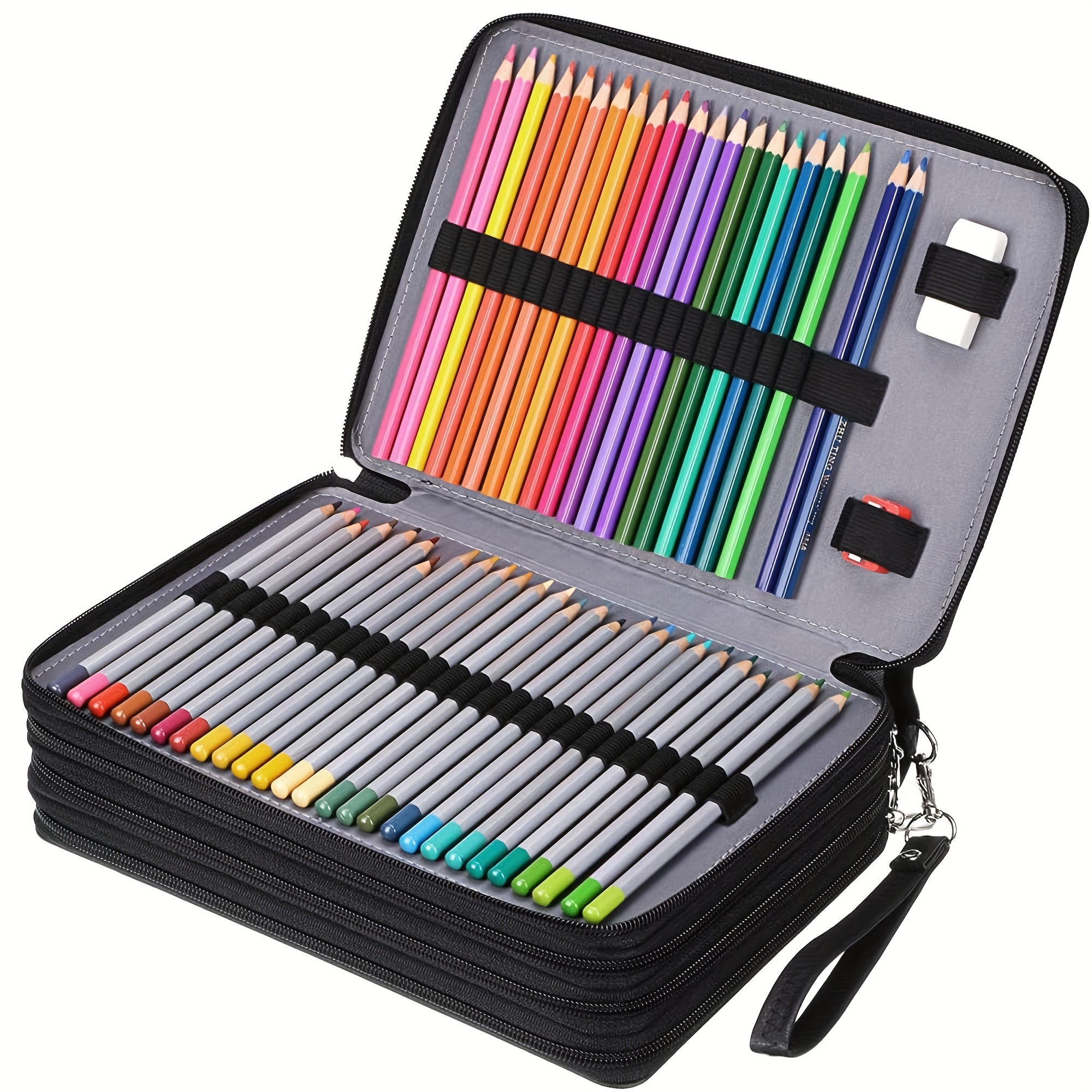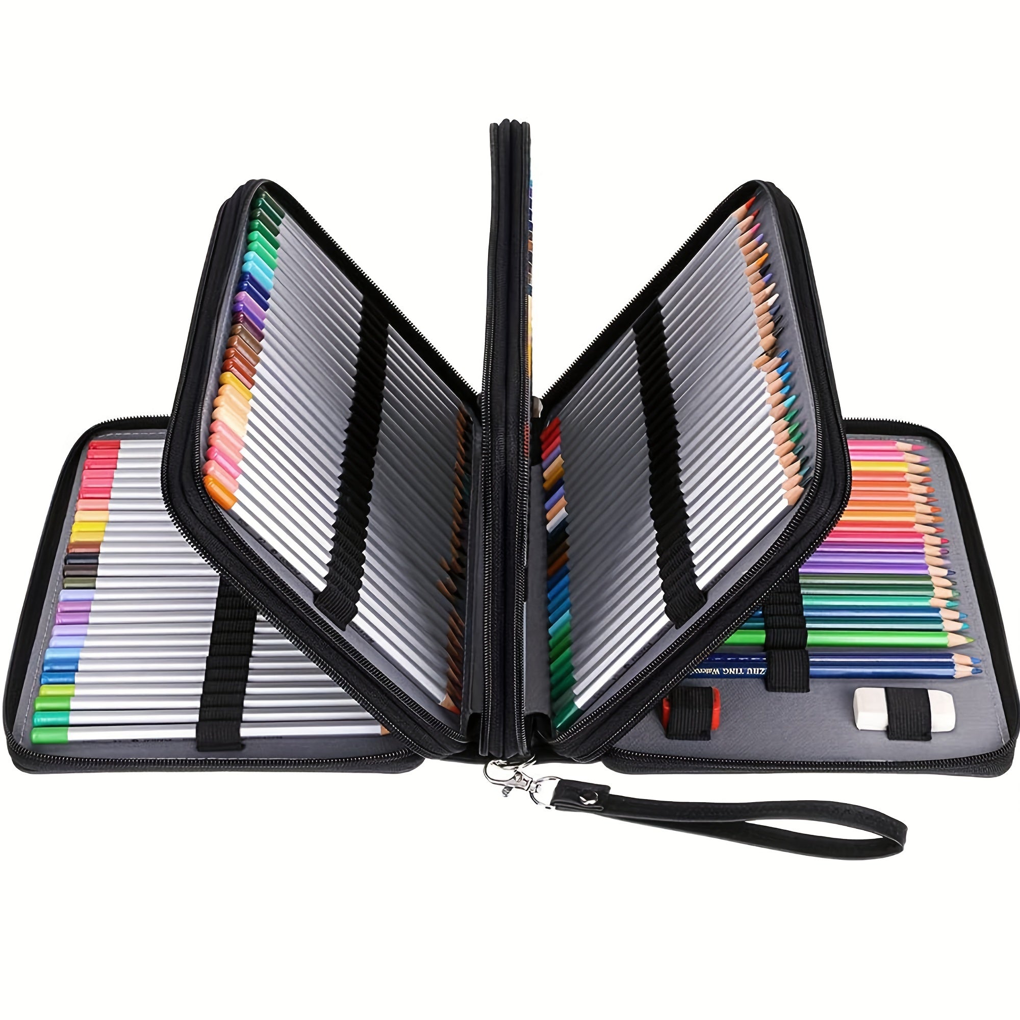Organizzatore di Matite Colorate Deluxe da 200 Scomparti - Grande Custodia in Finta Pelle Nera con Manico Rimovibile per Artisti, Penne Acquerello & Forniture Ufficio Quotidiane