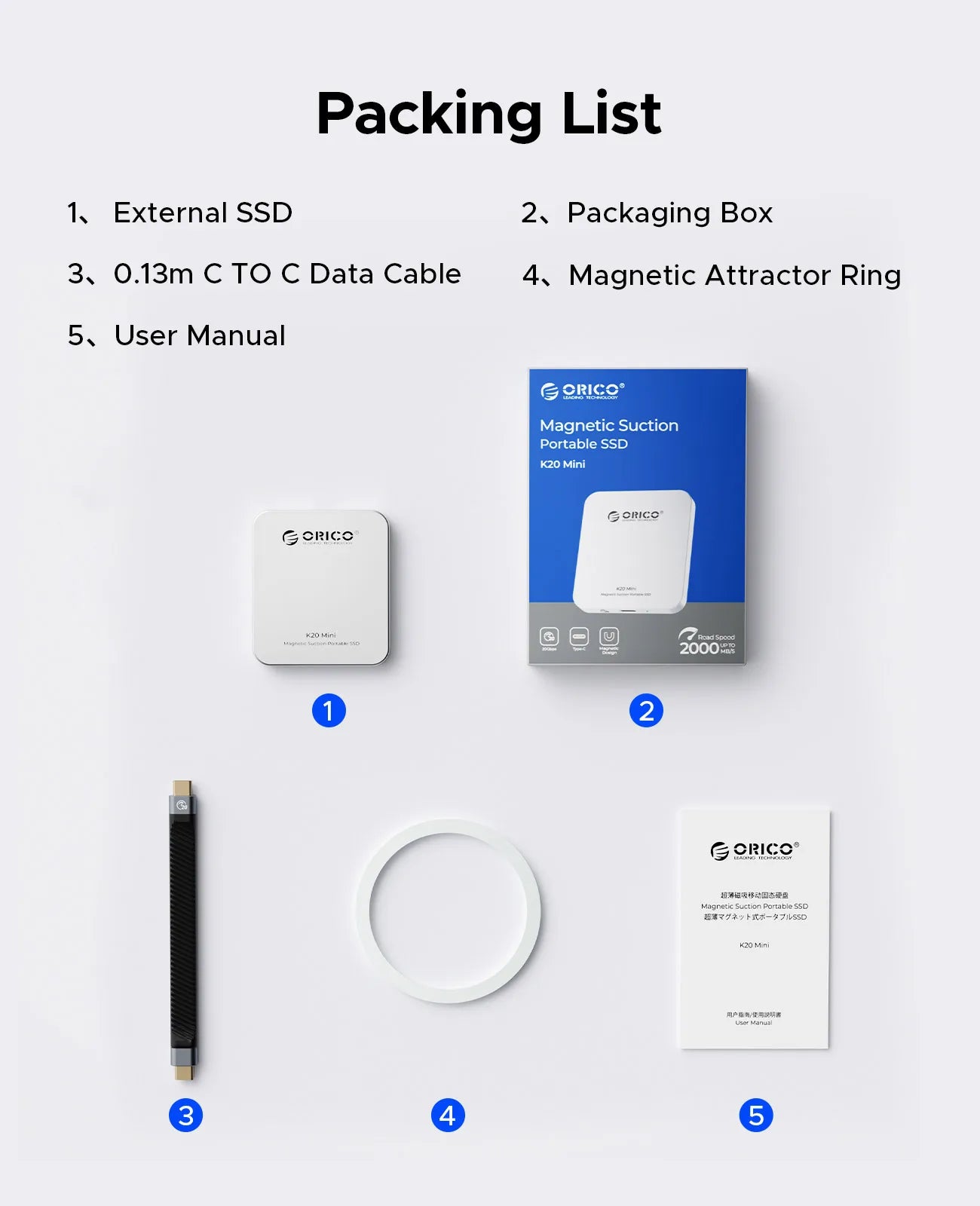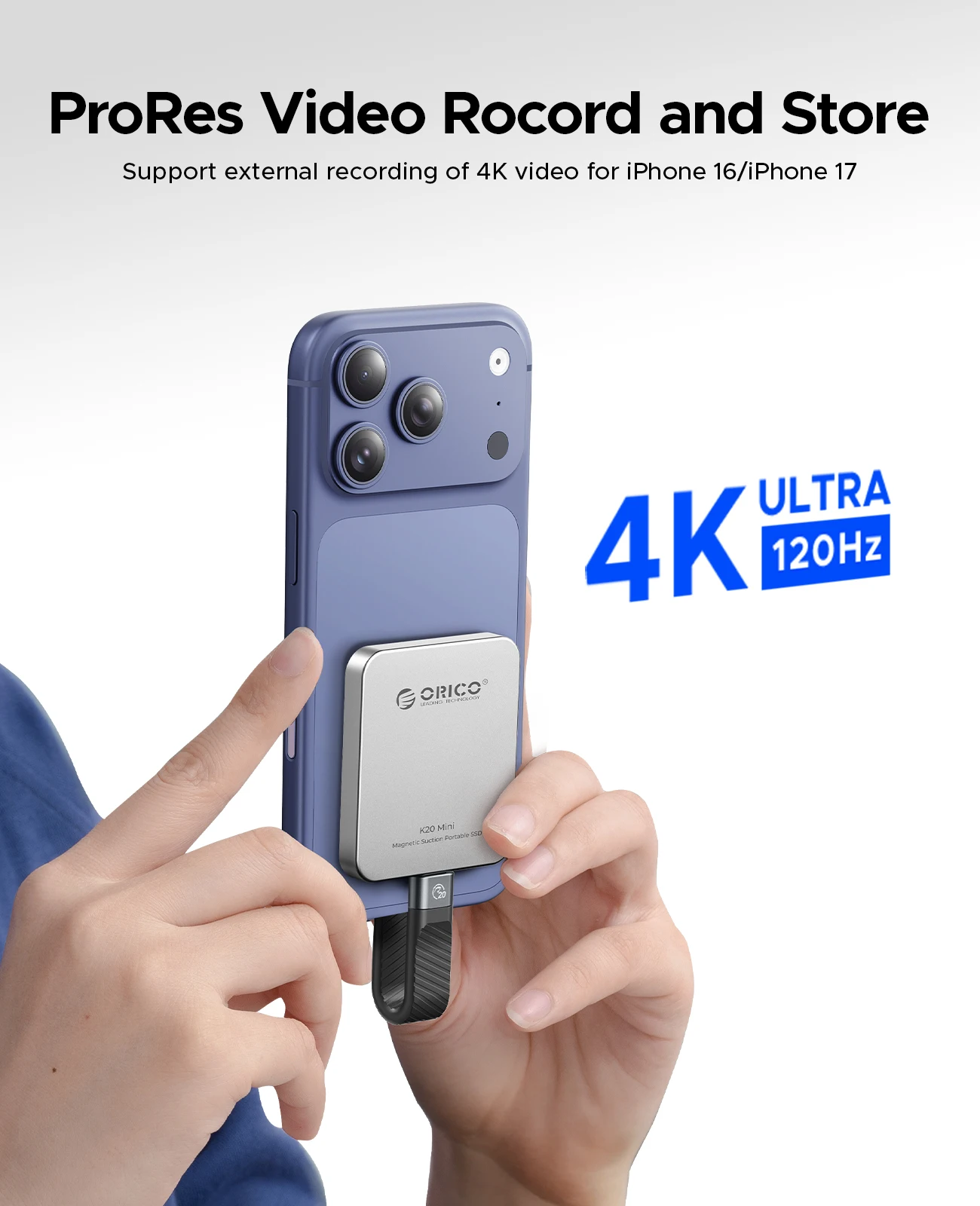 ORICO K20Mini SSD esterno magnetico per iPhone 17 16 Pro/Max ProRes 2000 MB/s 4K ProRes HDR Registra e memorizza Stato solido portatile
