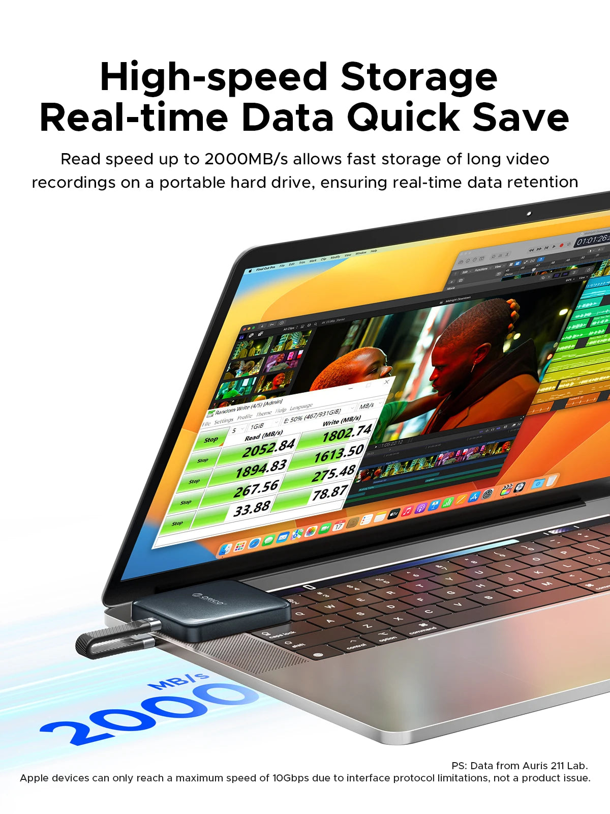 ORICO SSD esterno magnetico da 1 TB, registrazione e negozio HDR 4K ProRes, trasmissione e archiviazione stabili da 2000 MB/s, stato solido portatile