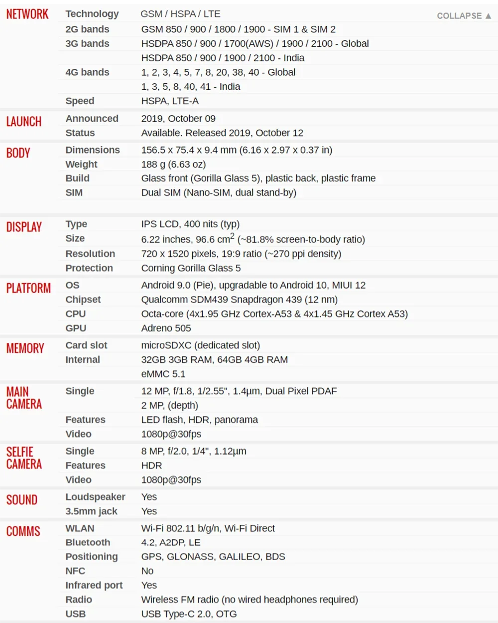 Original Xiaomi Redmi 8 4GB 64GB Smartphone 4700 mAh Dual SIM 6.22'' 12MP+2MP+8MP Snapdragon 439 Octa-Core 4G LTE Mobile Phone
