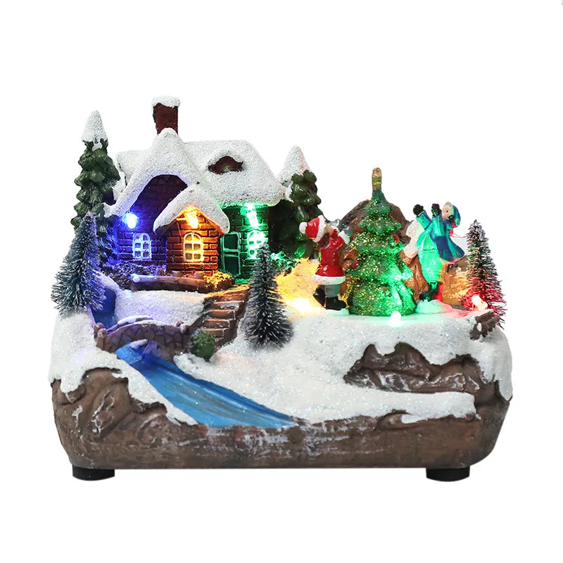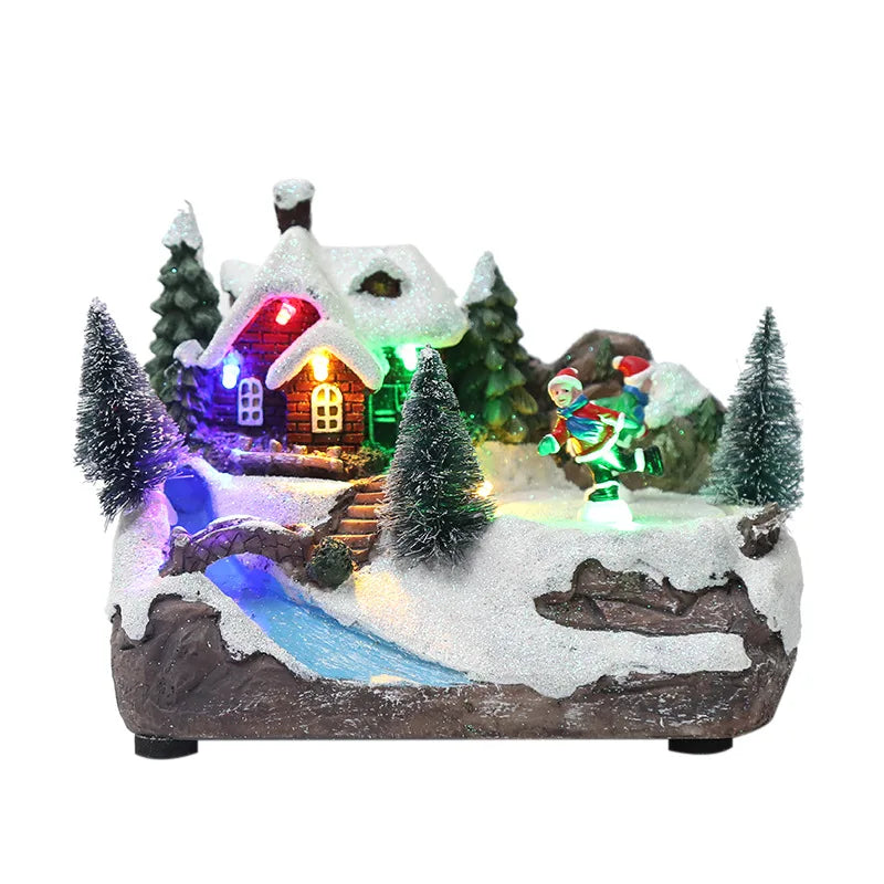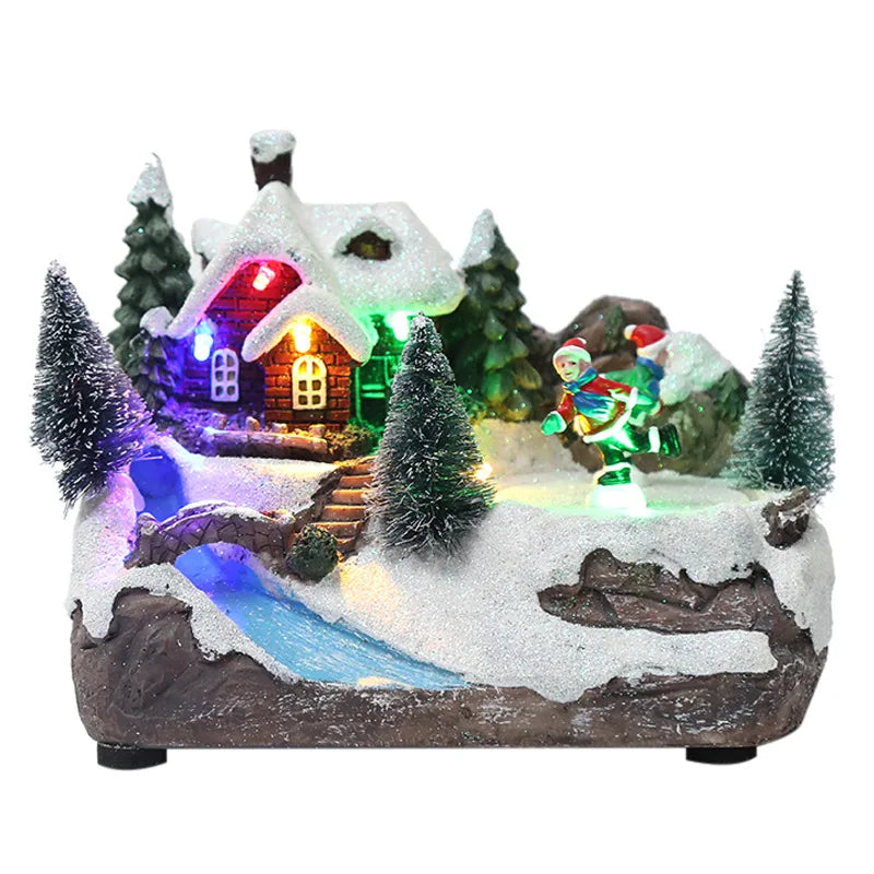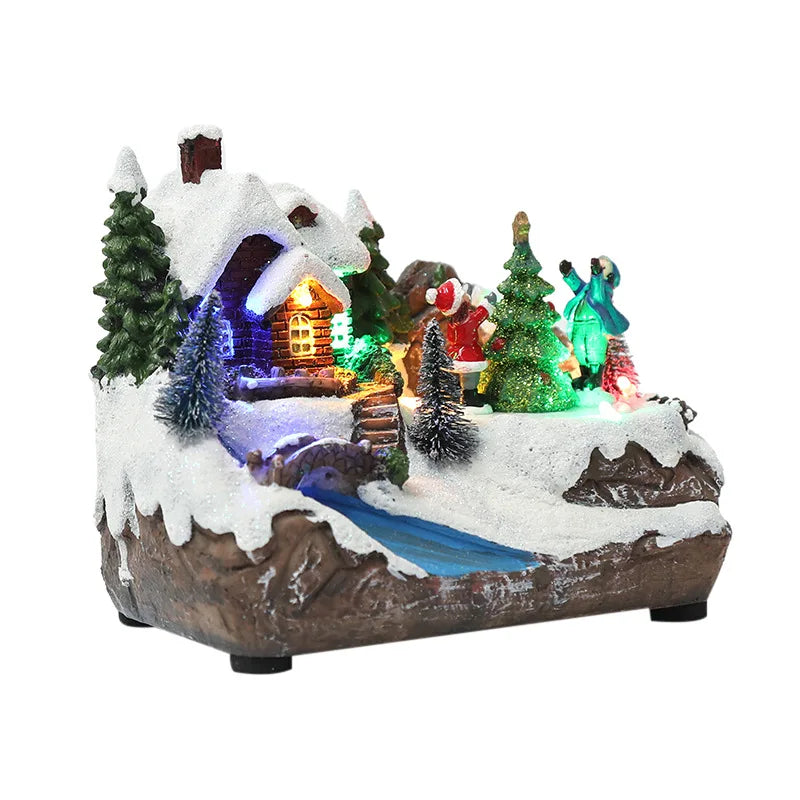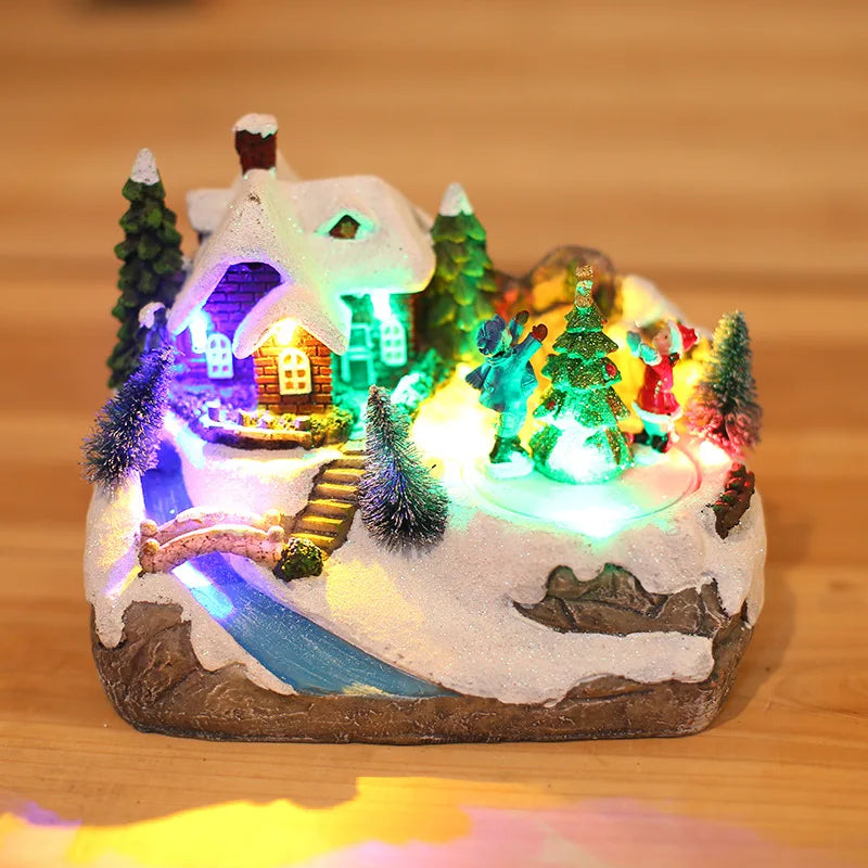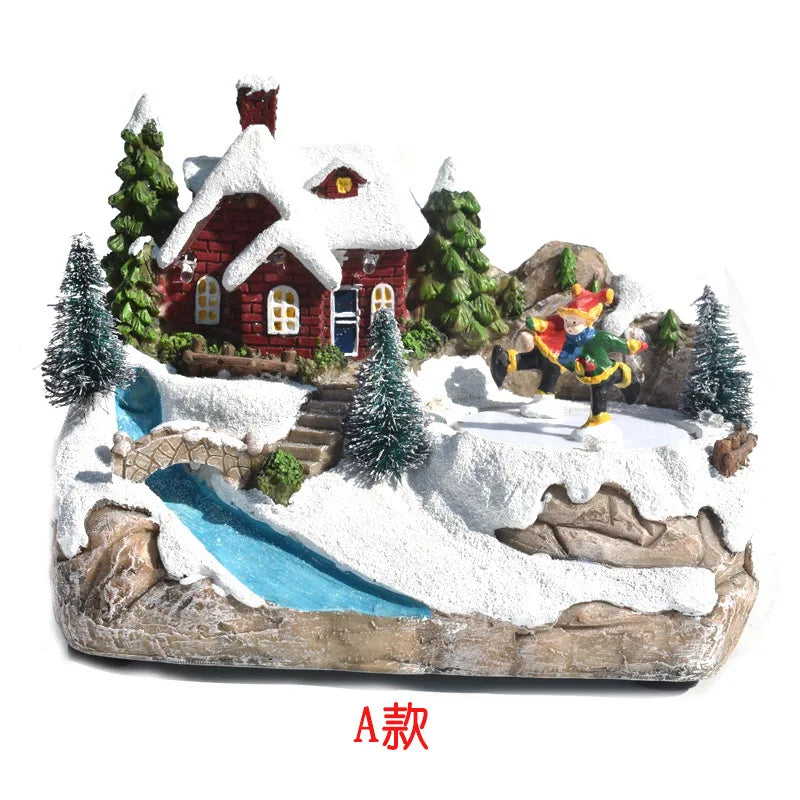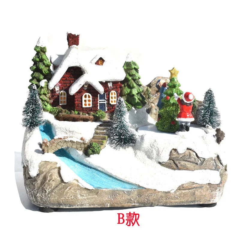 Ornamento per la casa di Natale illuminato a LED, arredamento del villaggio europeo con design musicale e fiocco di neve, decorazione da tavolo delle fiabe invernali