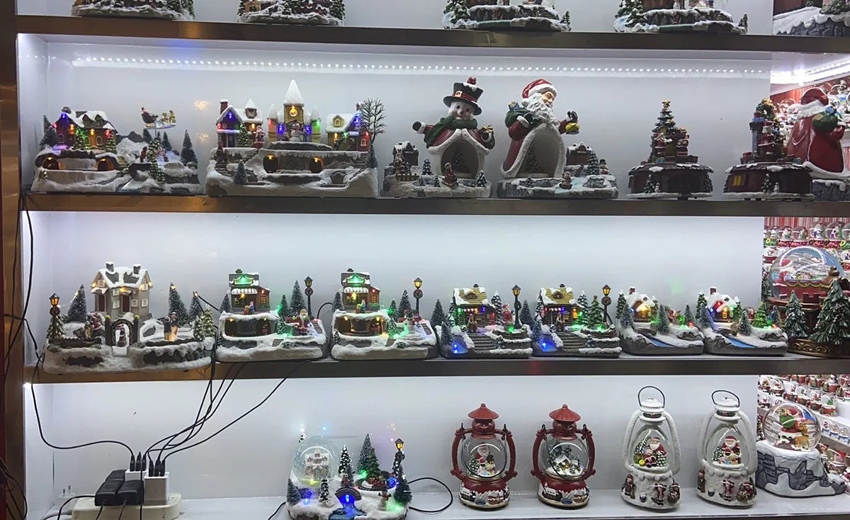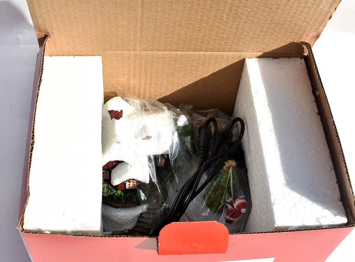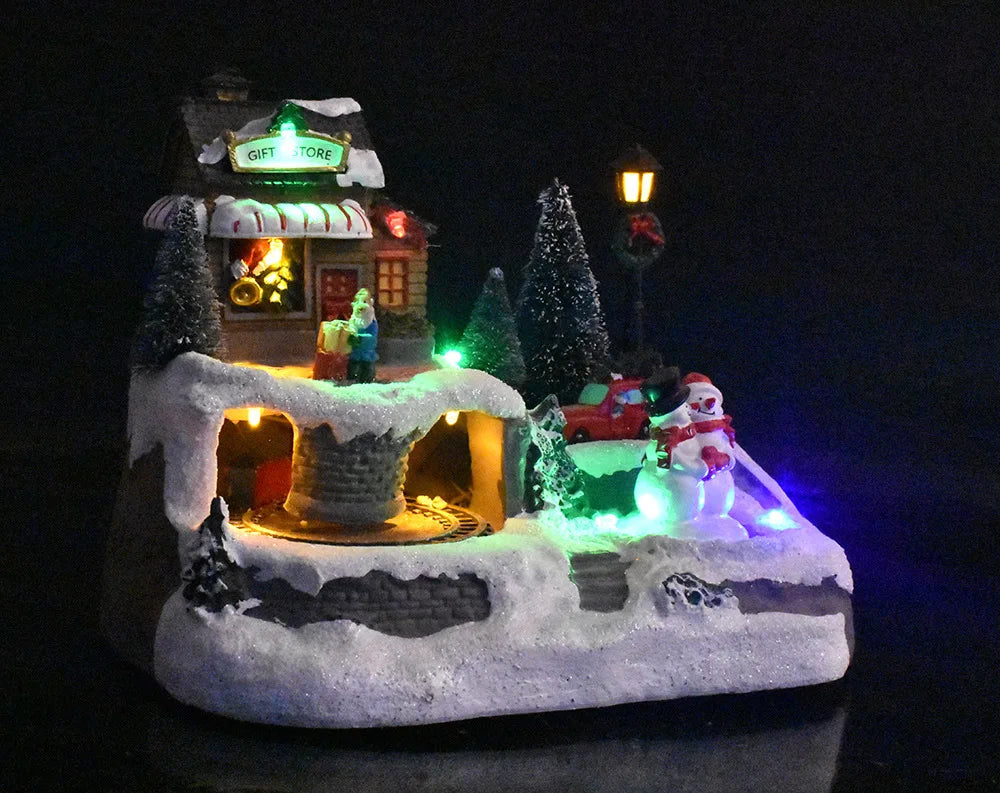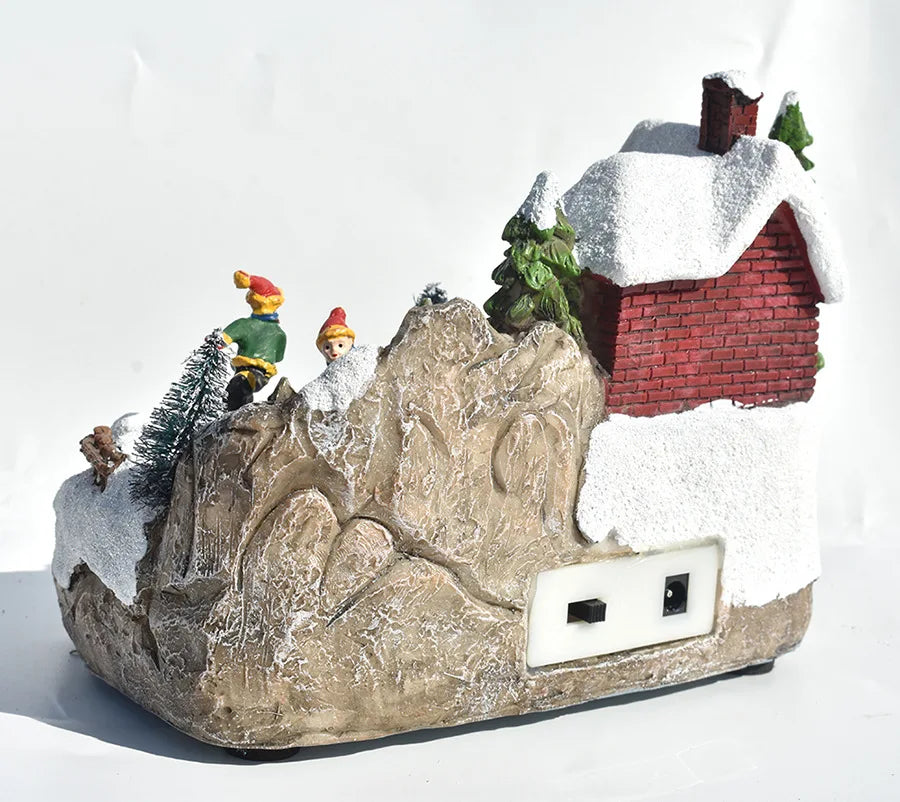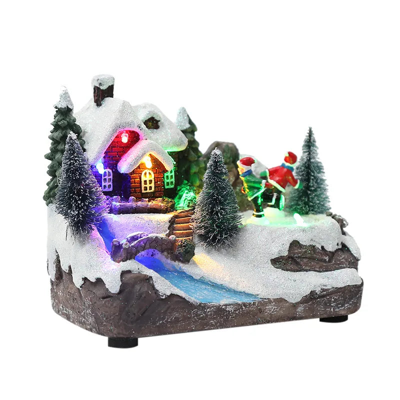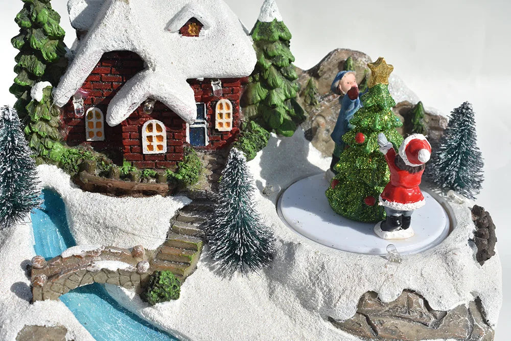 Ornamento per la casa di Natale illuminato a LED, arredamento del villaggio europeo con design musicale e fiocco di neve, decorazione da tavolo delle fiabe invernali