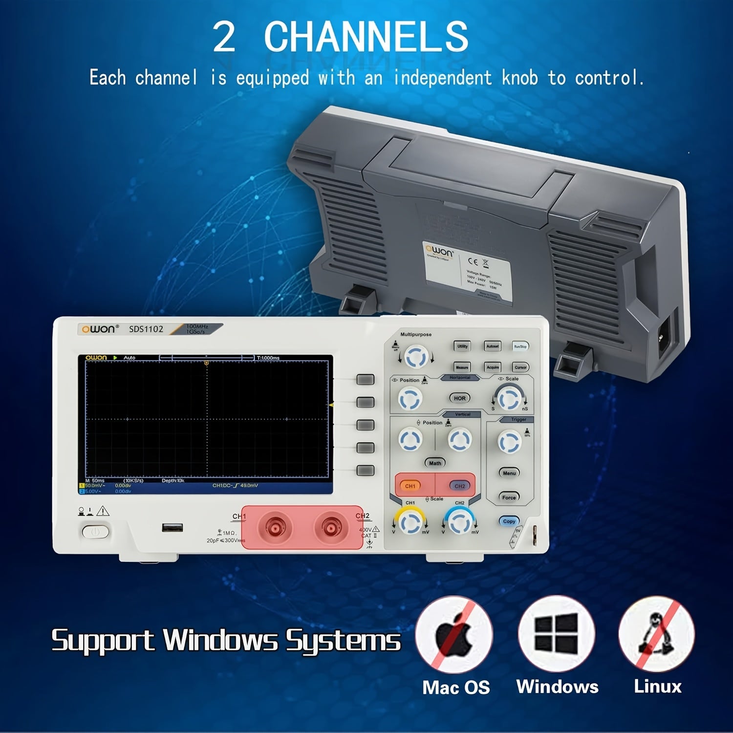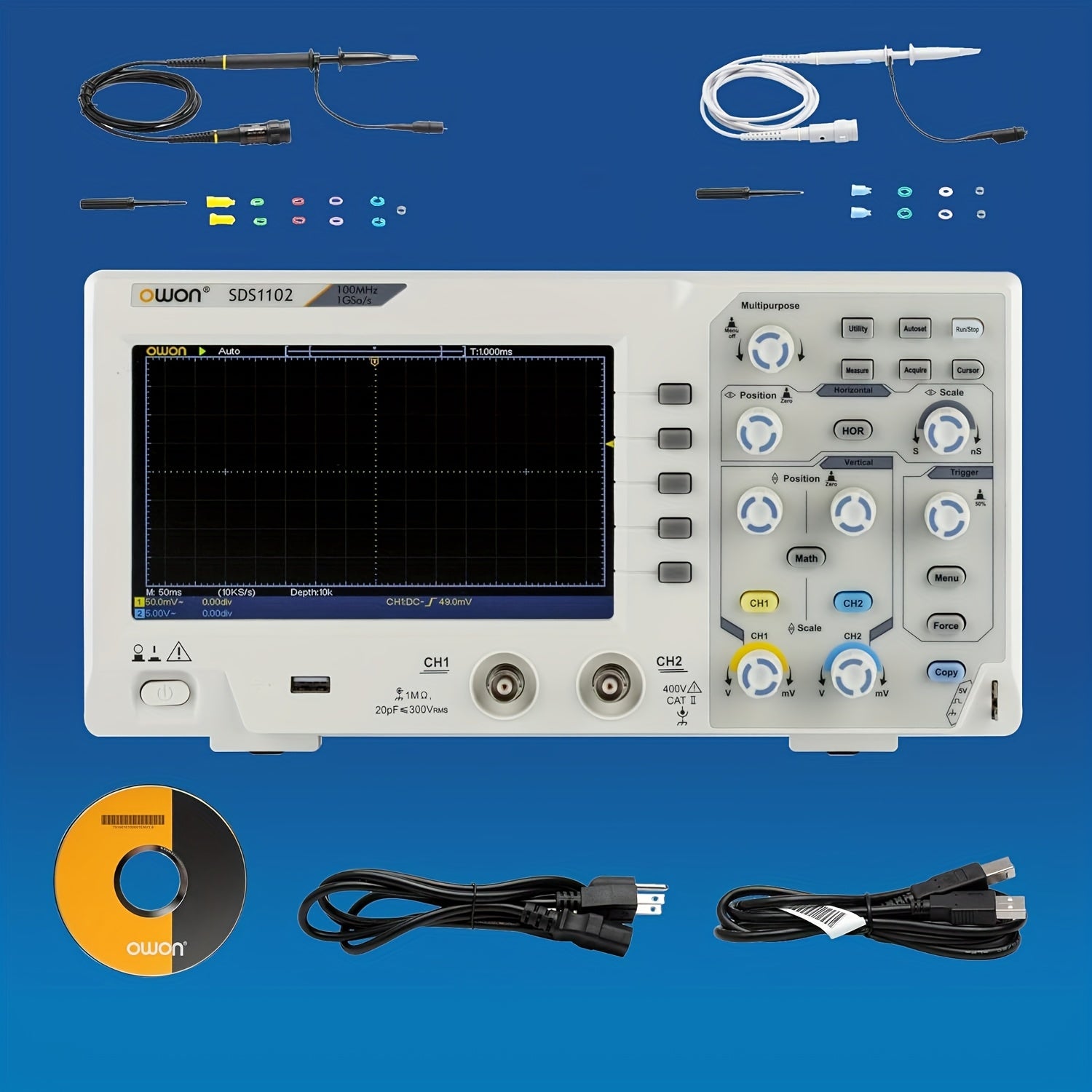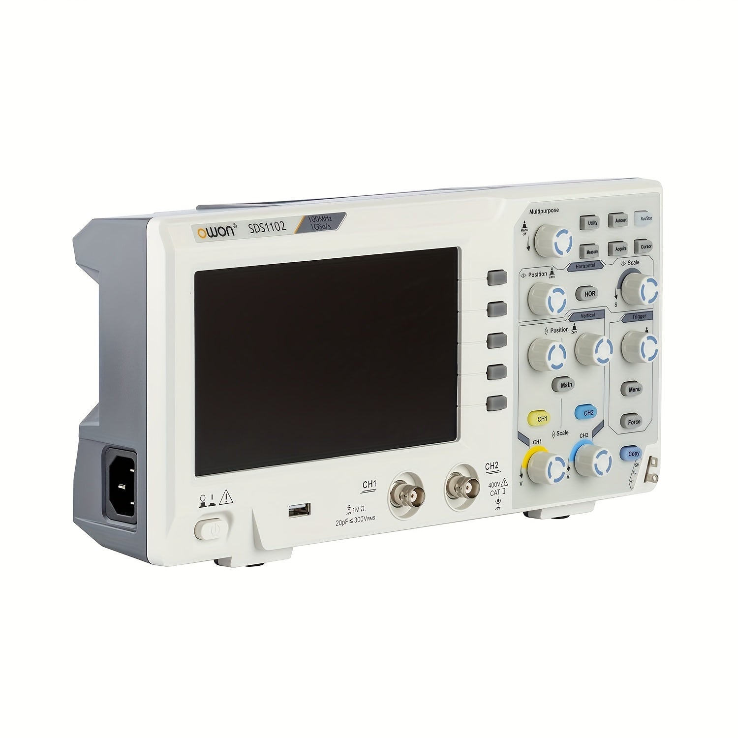 Oscilloscopio Digitale SDS1102 100MHz a 2 Canali - Frequenza di Campionamento 1GS/s, Schermo LCD HD da 17.78cm, Supporto per SCPI e LabVIEW, Design Portatile Ultracompatto, 30 Misurazioni Automatiche, Memoria di Forma d'Onda a 16 Punti, Costruzione in Met