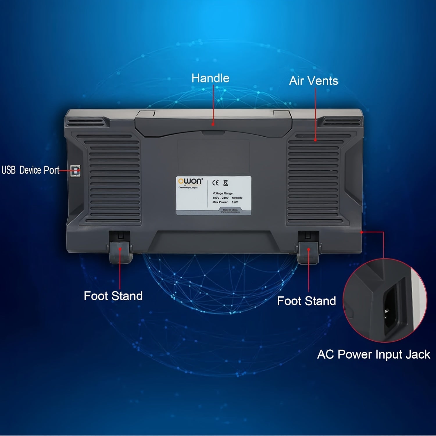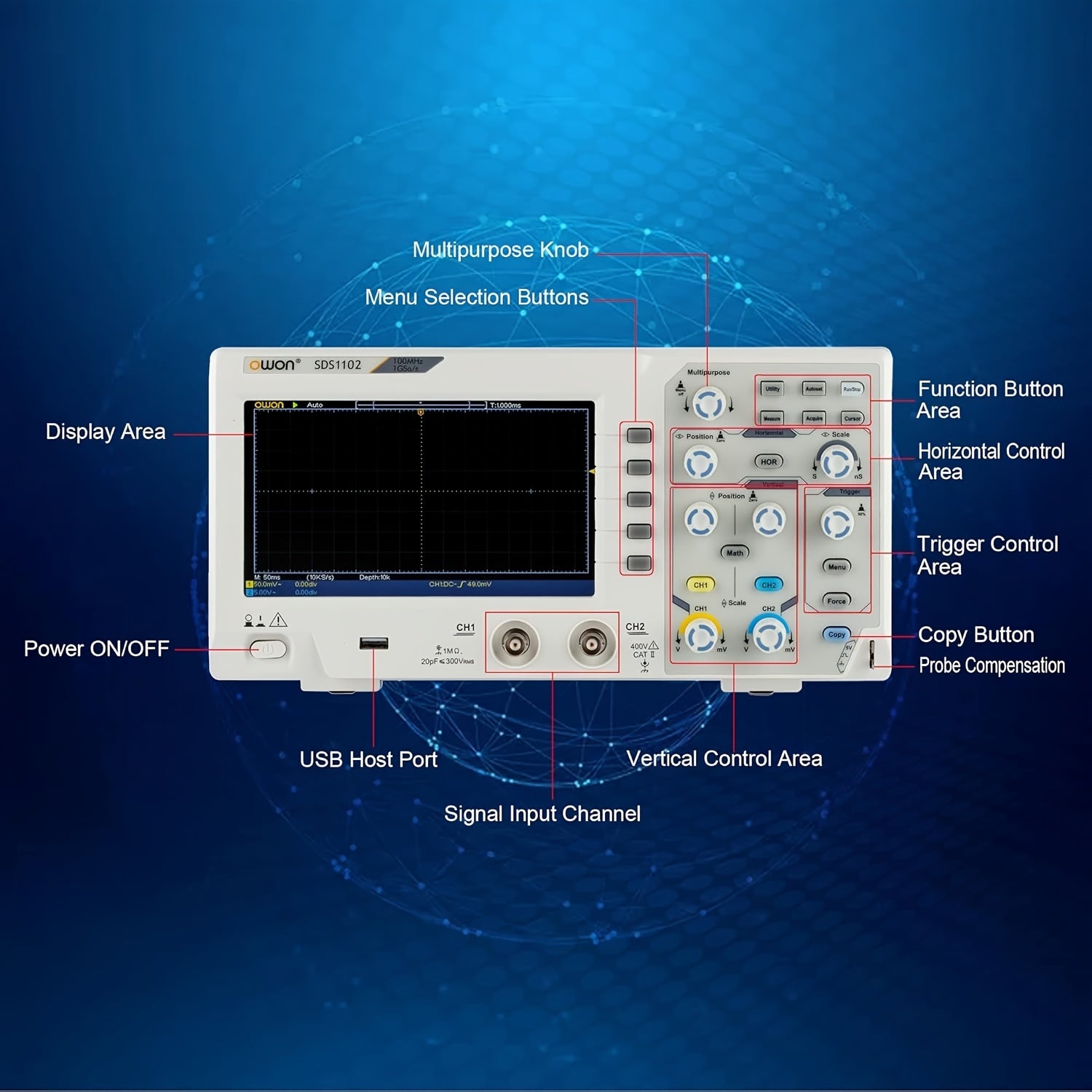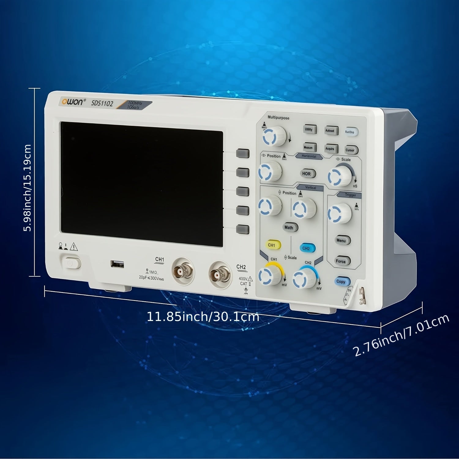 Oscilloscopio Digitale SDS1102 100MHz a 2 Canali - Frequenza di Campionamento 1GS/s, Schermo LCD HD da 17.78cm, Supporto per SCPI e LabVIEW, Design Portatile Ultracompatto, 30 Misurazioni Automatiche, Memoria di Forma d'Onda a 16 Punti, Costruzione in Met