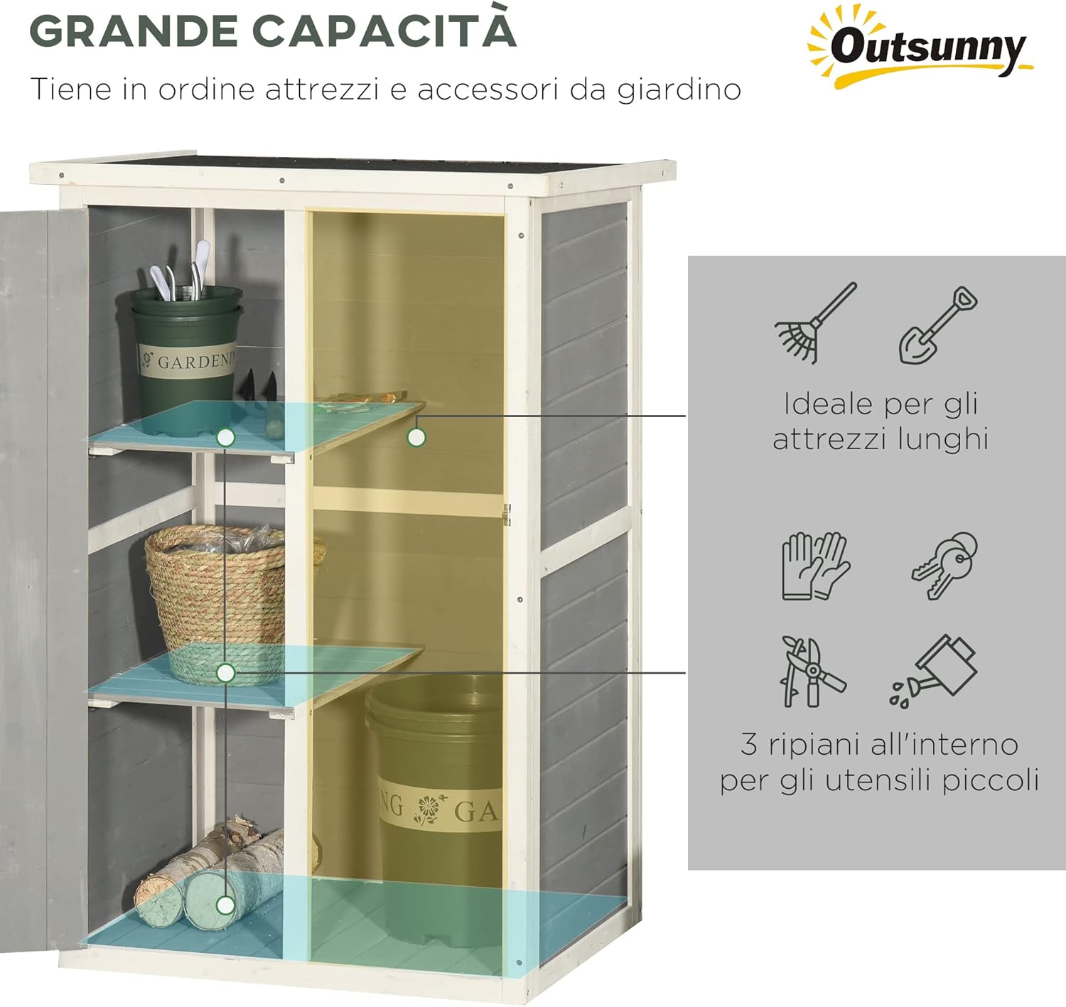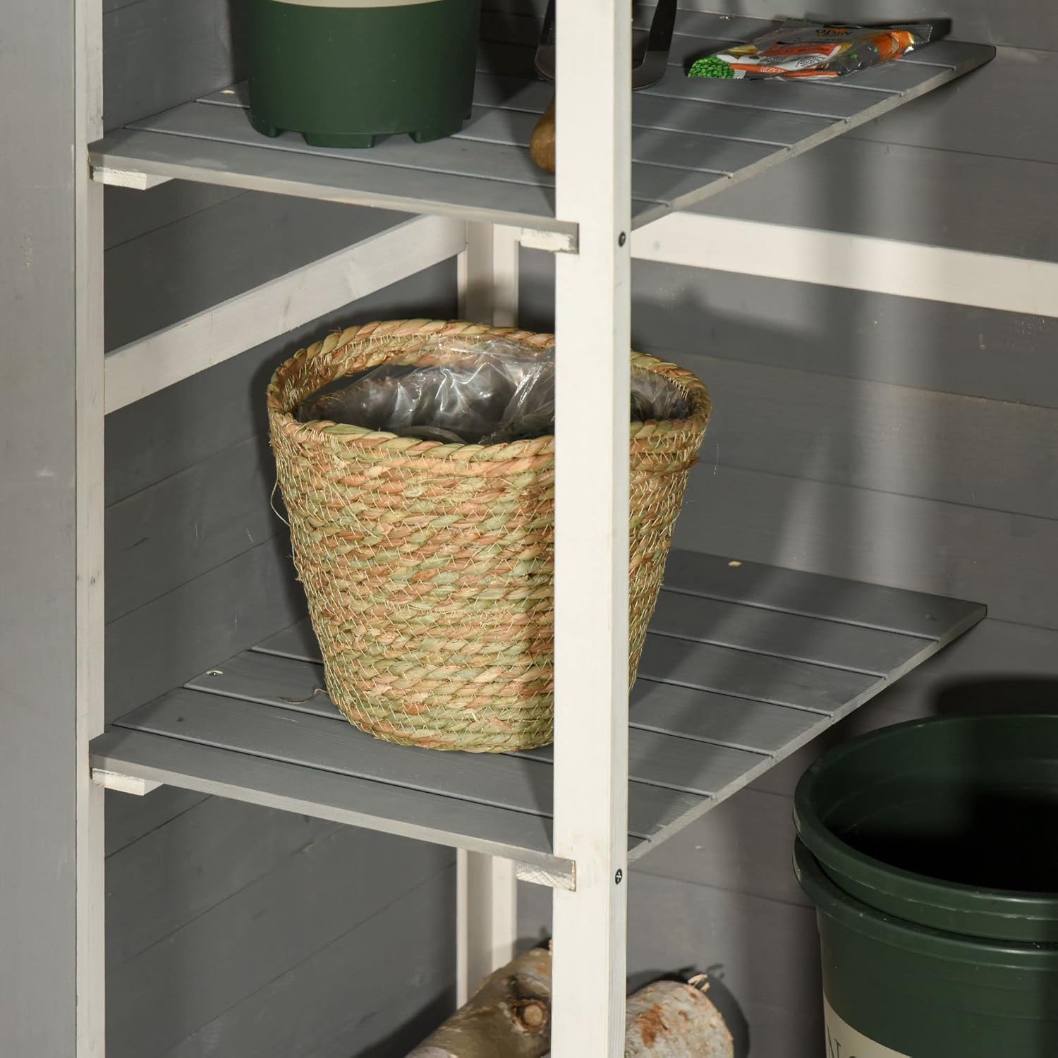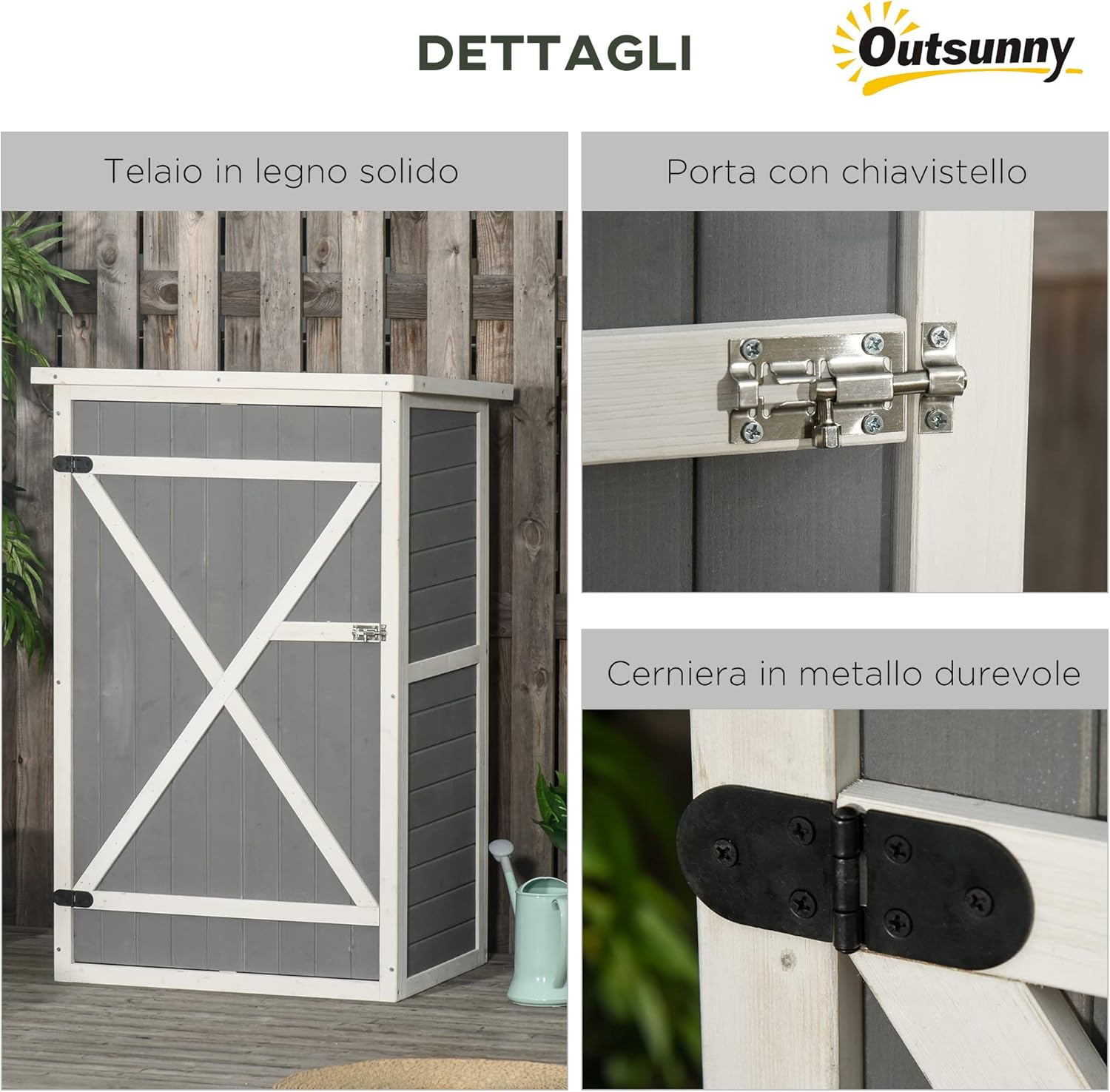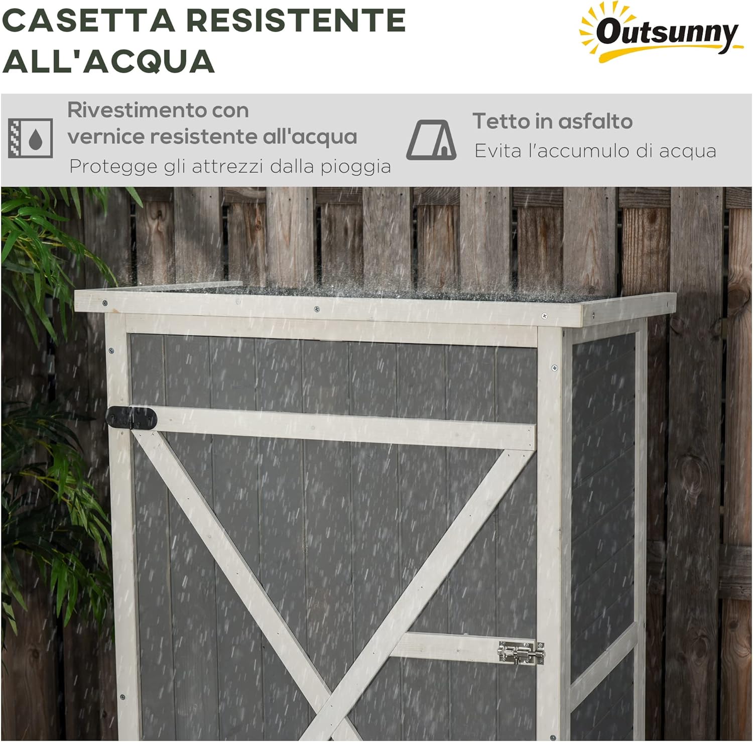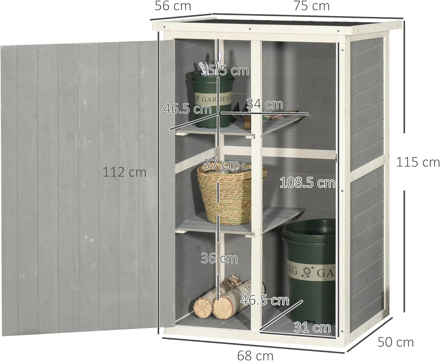 Outsunny Casetta da Giardino in Legno con Tetto Impermeabile, Armadio Porta Attrezzi da Esterno con 2 Mensole, 75x56x115cm, Grigio