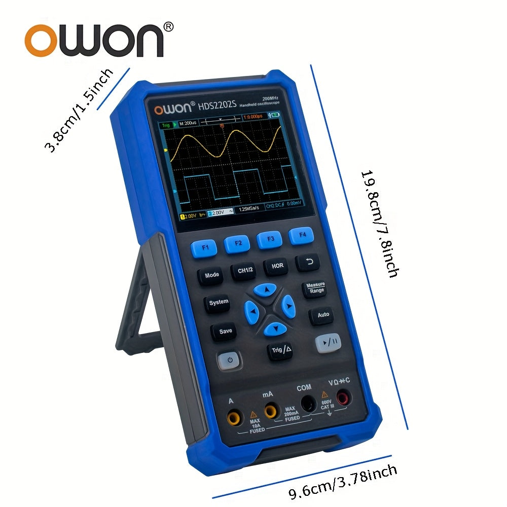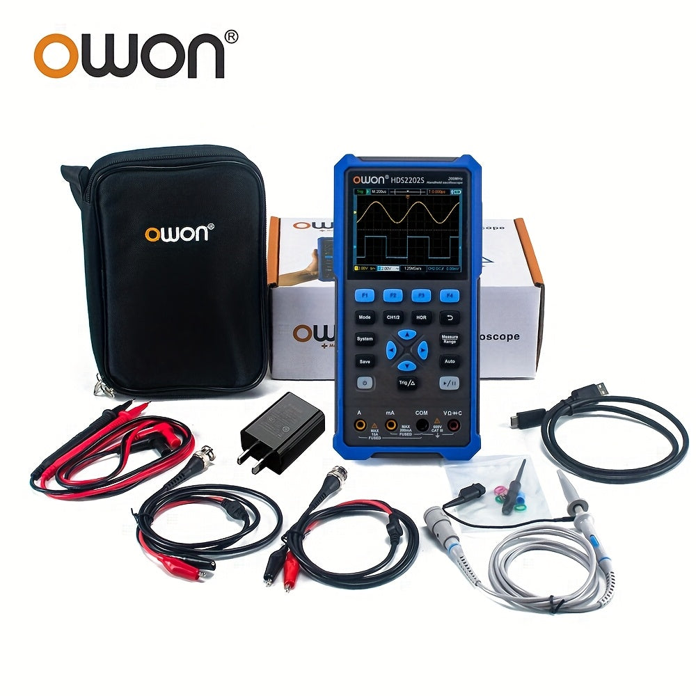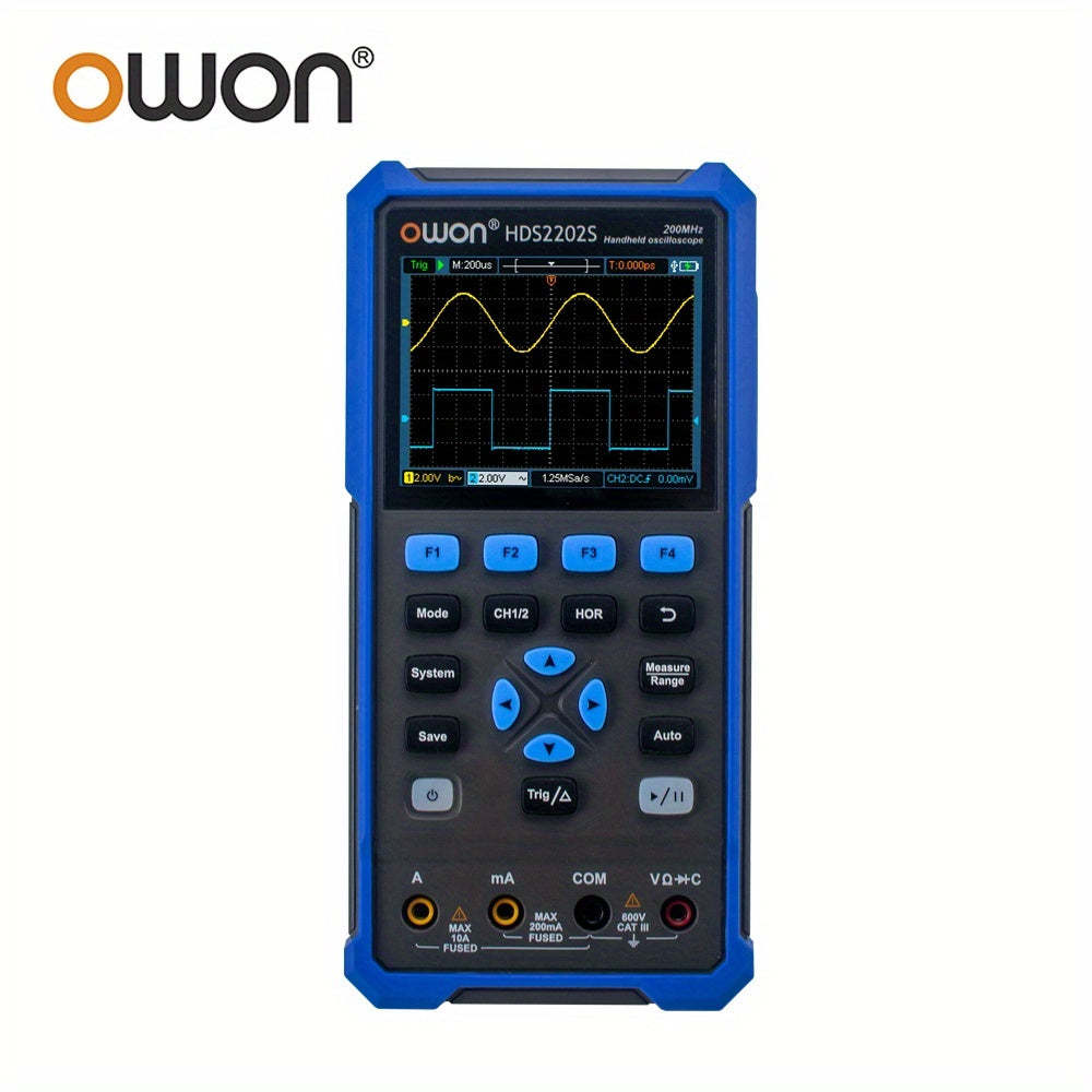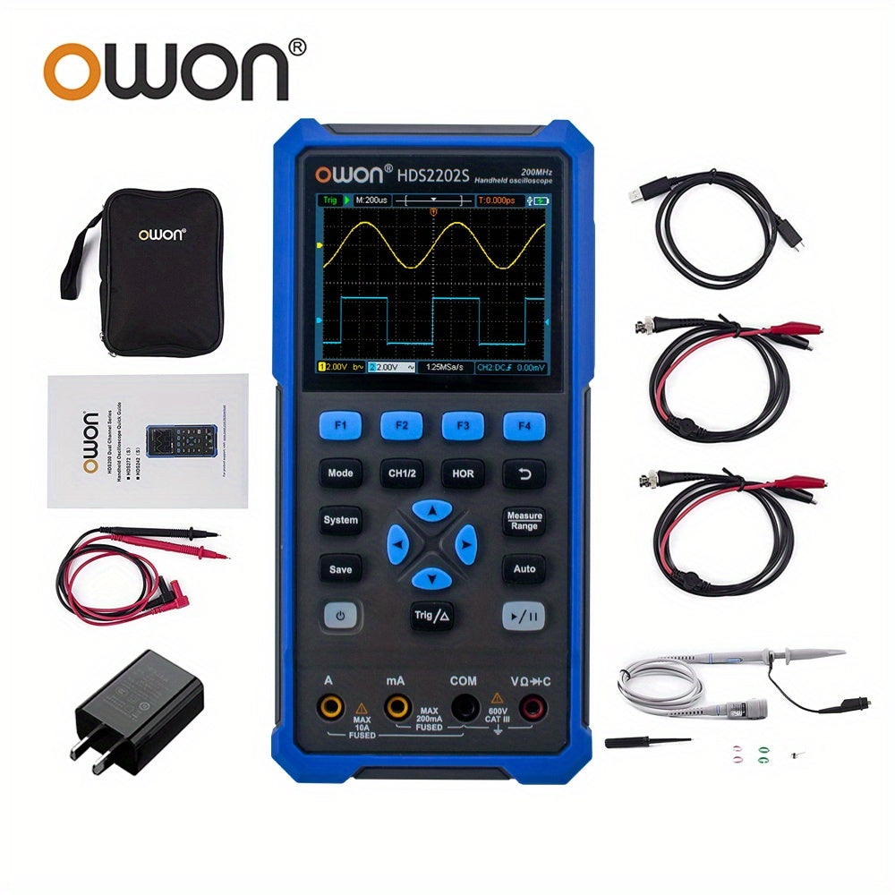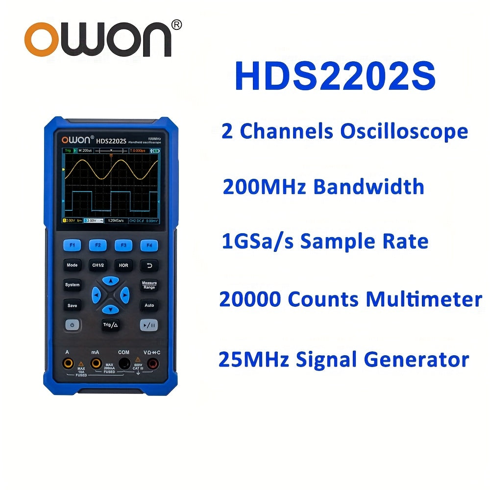 OWON HDS2202S 2102S Oscilloscopio Digitale Multimetro Generatore di Onde 3-in-1 - Portatile a 2 Canali 200MHz 1GSa/s con Connettività USB, Batteria Ricaricabile & Ampio Display per Diagnostica Elettrica Industriale, Test Elettronici, Design Ergonomico, Cu