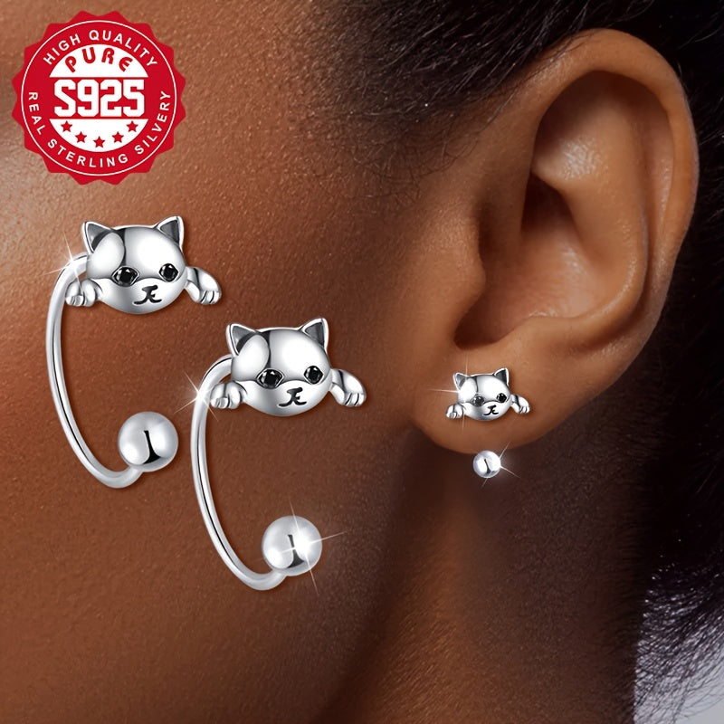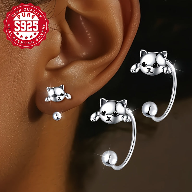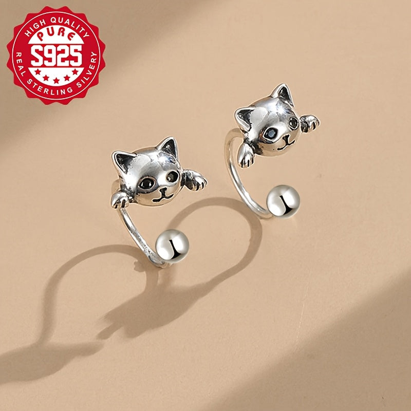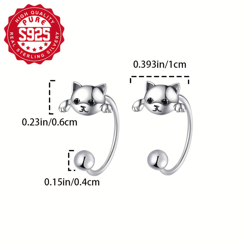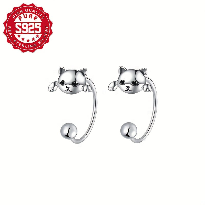 Paio, Argento S925, Gancio per orecchie di gatto, Orecchini da donna alla moda, Carini, Orecchini esquisiti, Adatti per regali, Amanti degli animali domestici, Abbigliamento quotidiano, Feste, Festival musicali, Bassa allergia