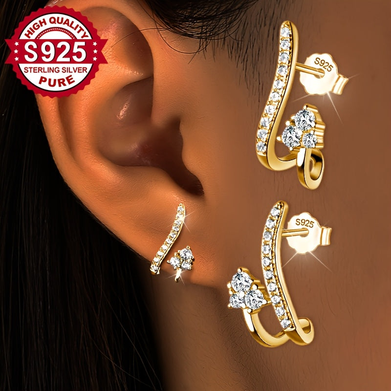 Paio di Orecchini in Argento S925, Lunghe e Corte, Ornamenti per le Orecchie Dolci ed Eleganti Retrò, Borchie alla Moda da Donna, Adatti come Regali, Indossabili Quotidianamente dalle Signore, Bassa Allergia