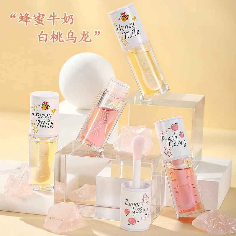 Peach Lip Oil Gloss Plumper Moisturizing Non Sticky Sexy Water Glossy Long-Lasting Transparent Liquid Lipstick