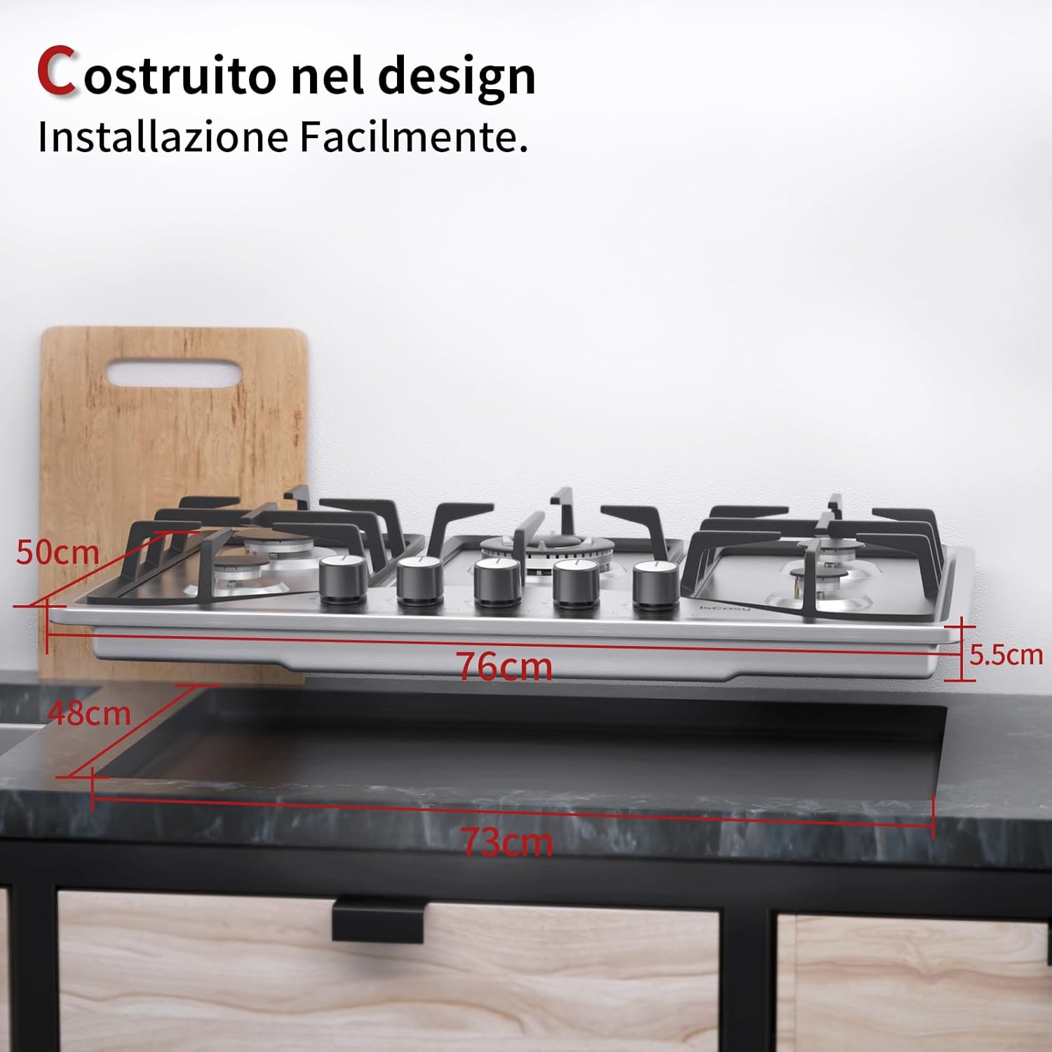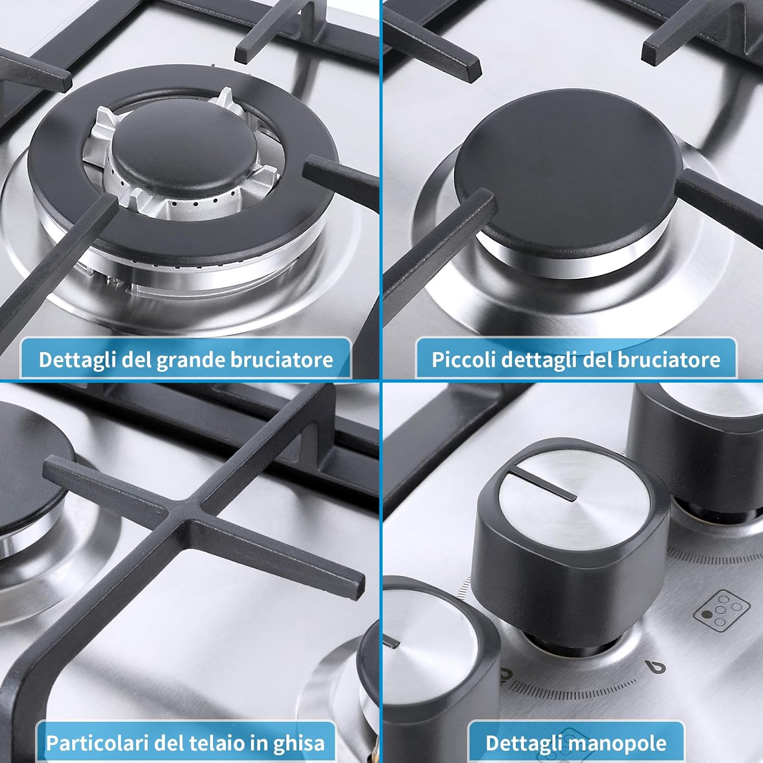 Piano Cottura a Gas (Acciaio Inossidabile -Piano Cottura 5 Fuochi)