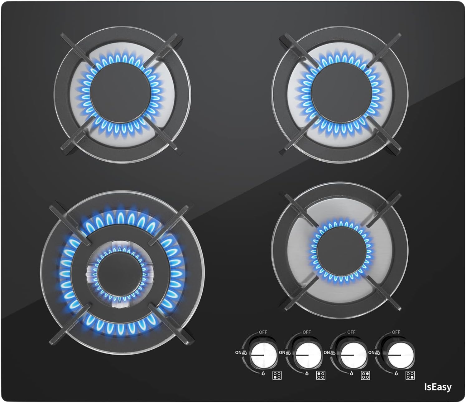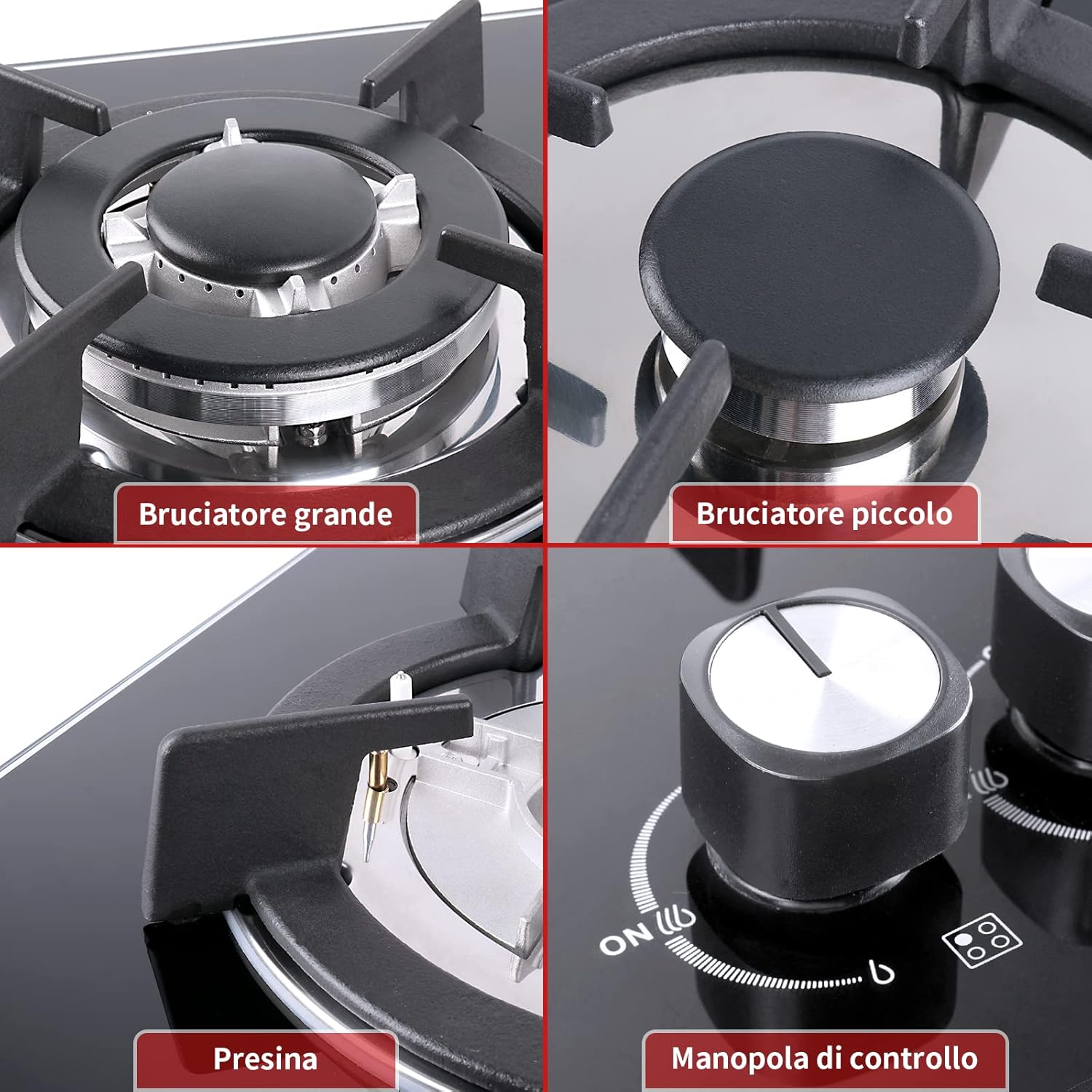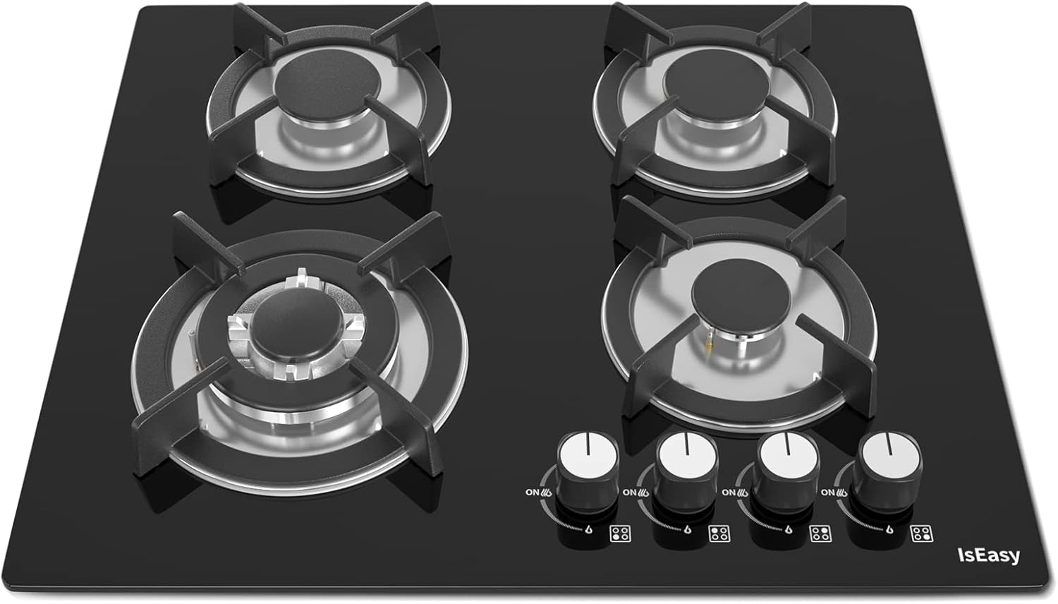 Piastra di cottura a gas a 4 fuochi, autosufficiente, piano cottura a incasso, per gas naturale/propano, sicurezza tramite termocoppia