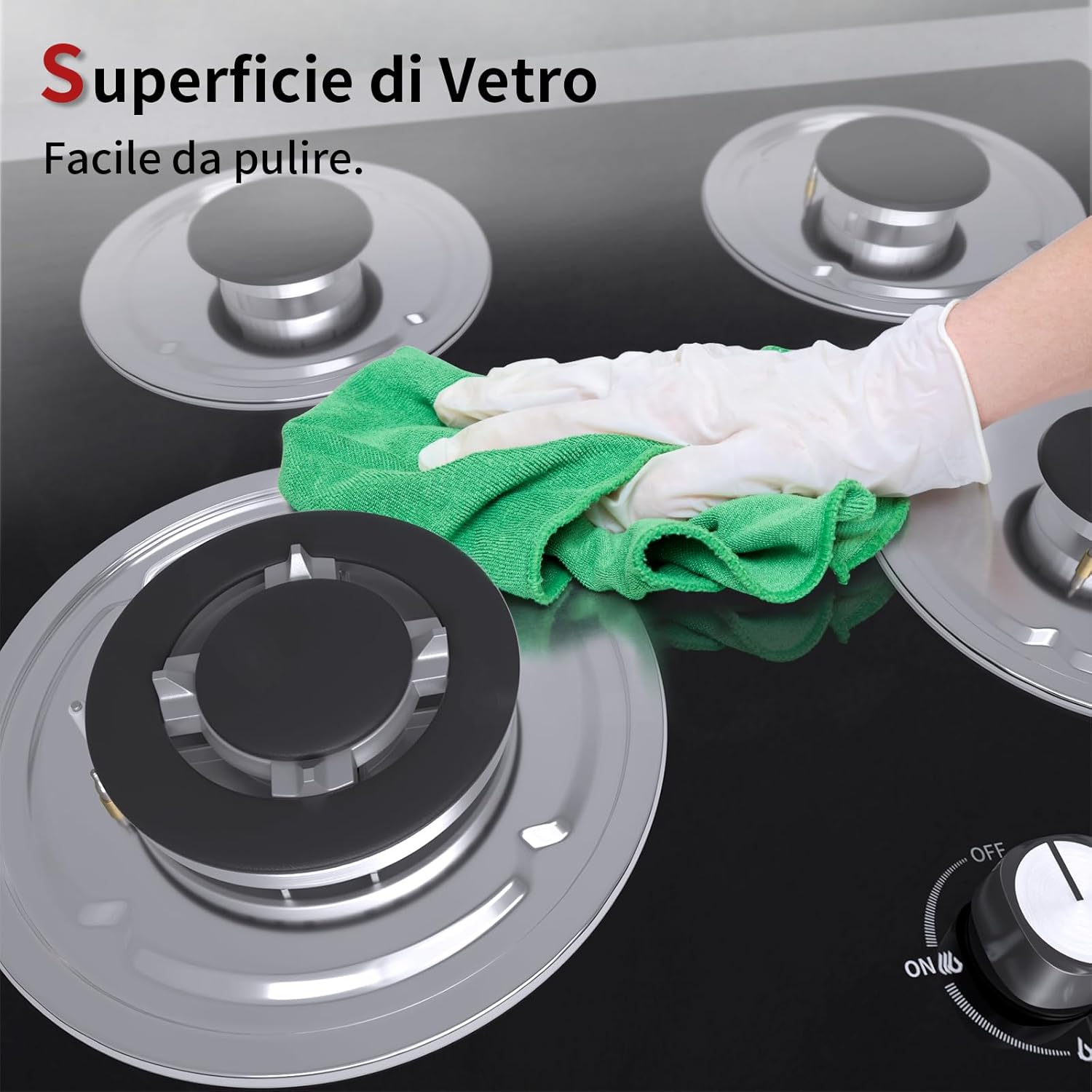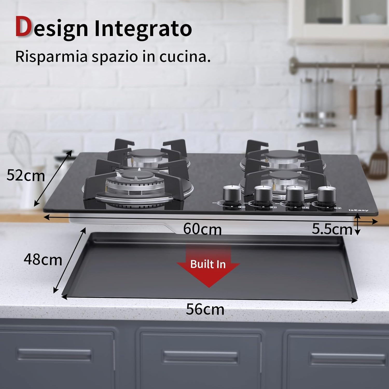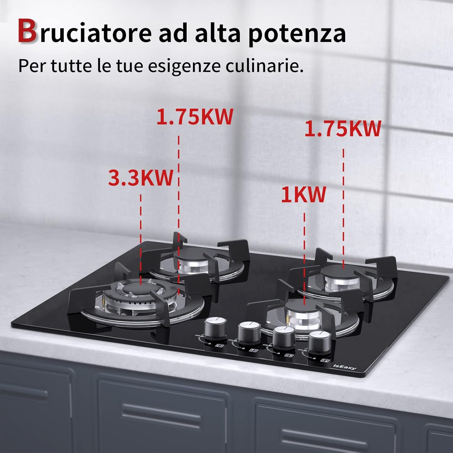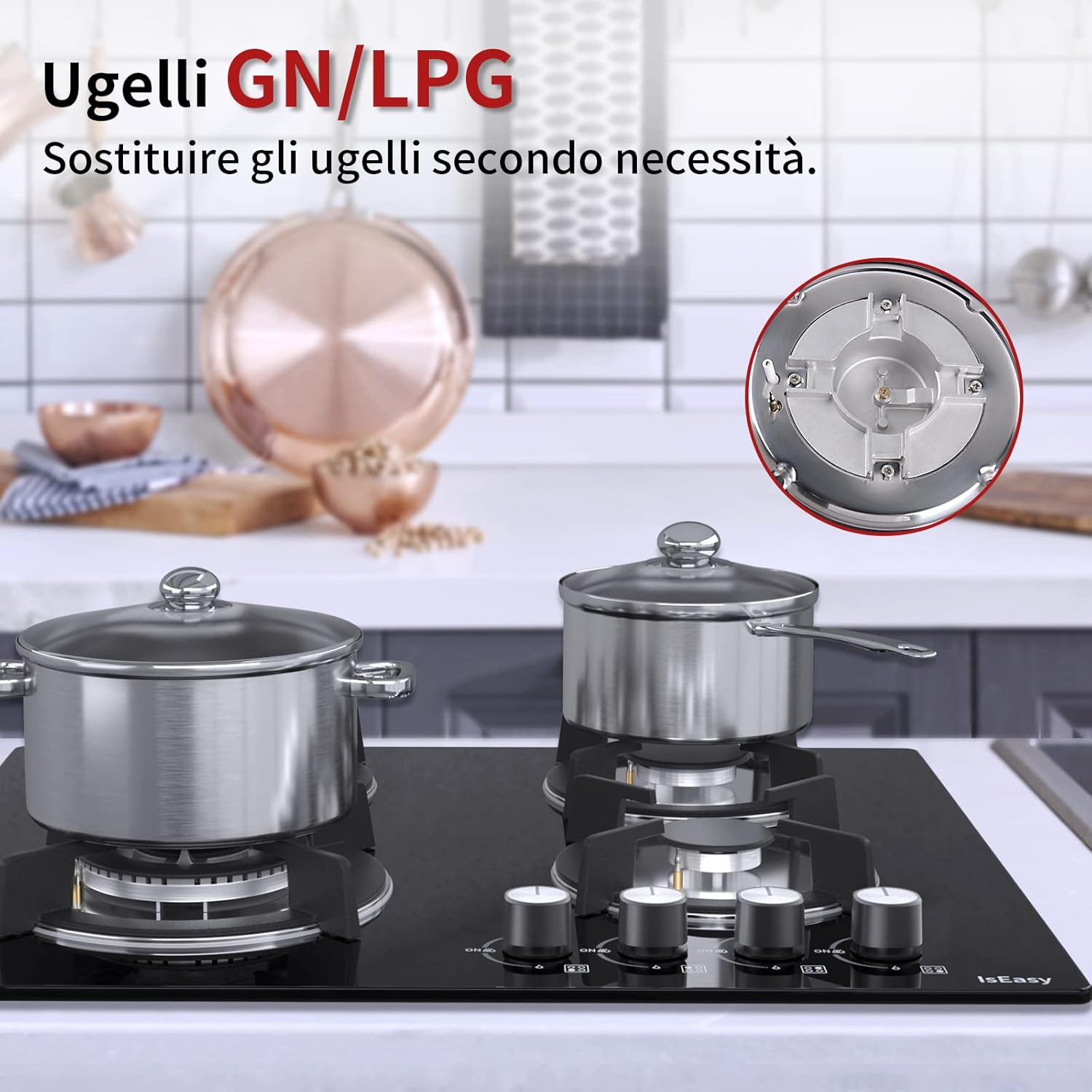 Piastra di cottura a gas a 4 fuochi, autosufficiente, piano cottura a incasso, per gas naturale/propano, sicurezza tramite termocoppia
