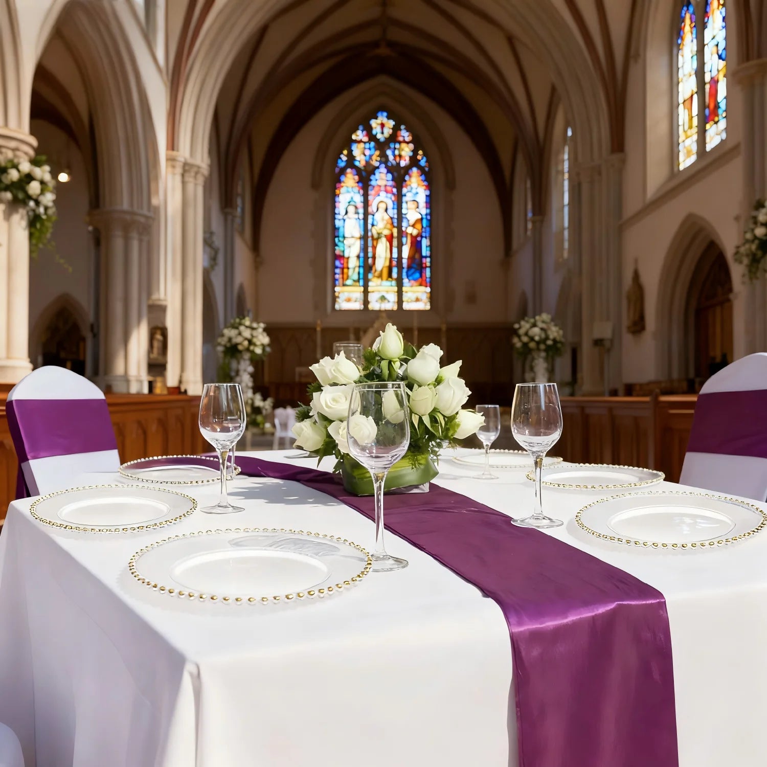 Flessibilità dello stile: Abbinalo ai runner da tavola pastello (come il rosa nell'immagine 1) per un matrimonio romantico, accenti viola intenso (come l'immagine 3) per un'atmosfera regale o classico bianco per una raffinatezza senza tempo.