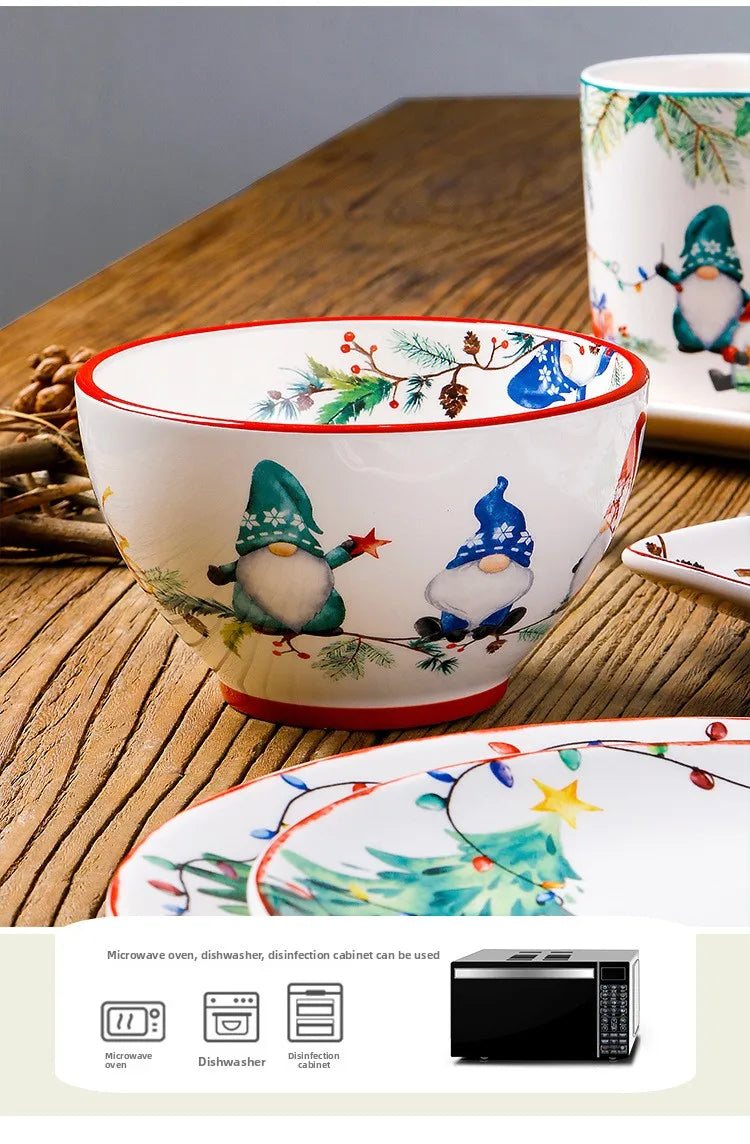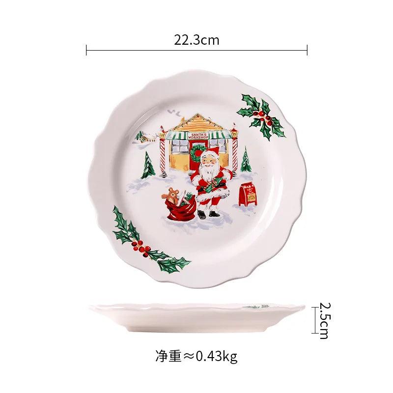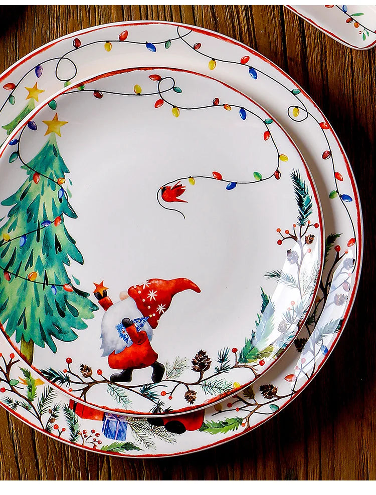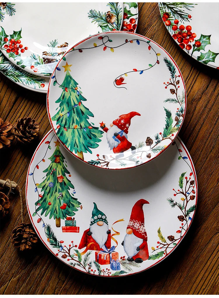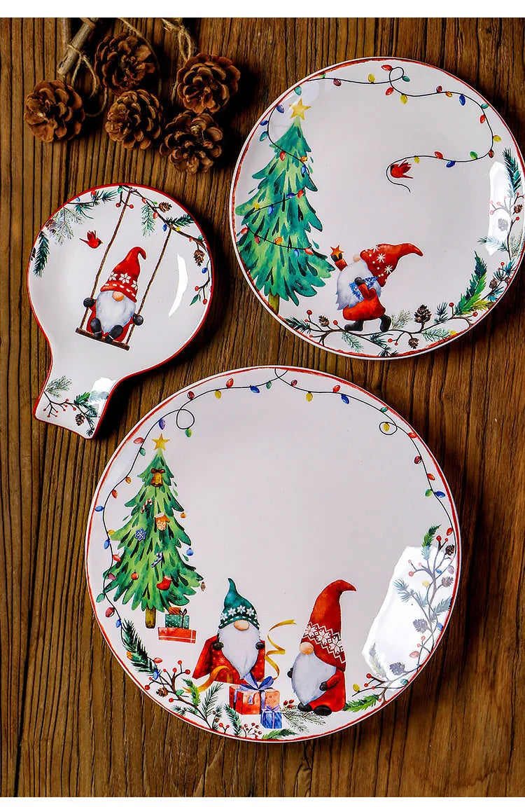 Piatto da pranzo in ceramica Goblin natalizio Piatti da dessert per bistecche di Babbo Natale Piatto da insalata per spaghetti Stoviglie per la decorazione della casa