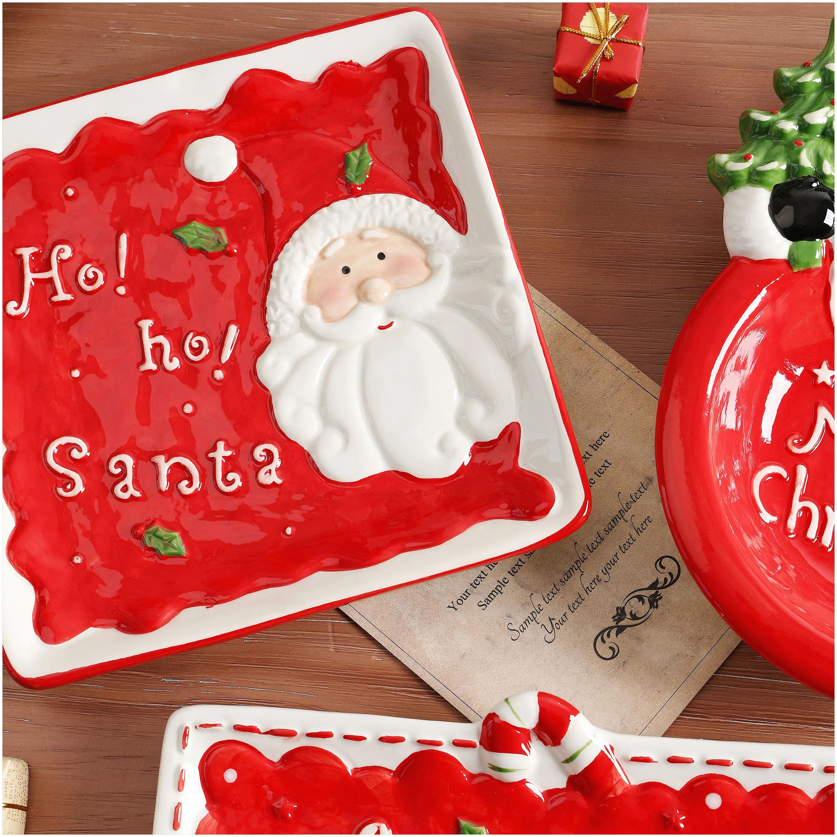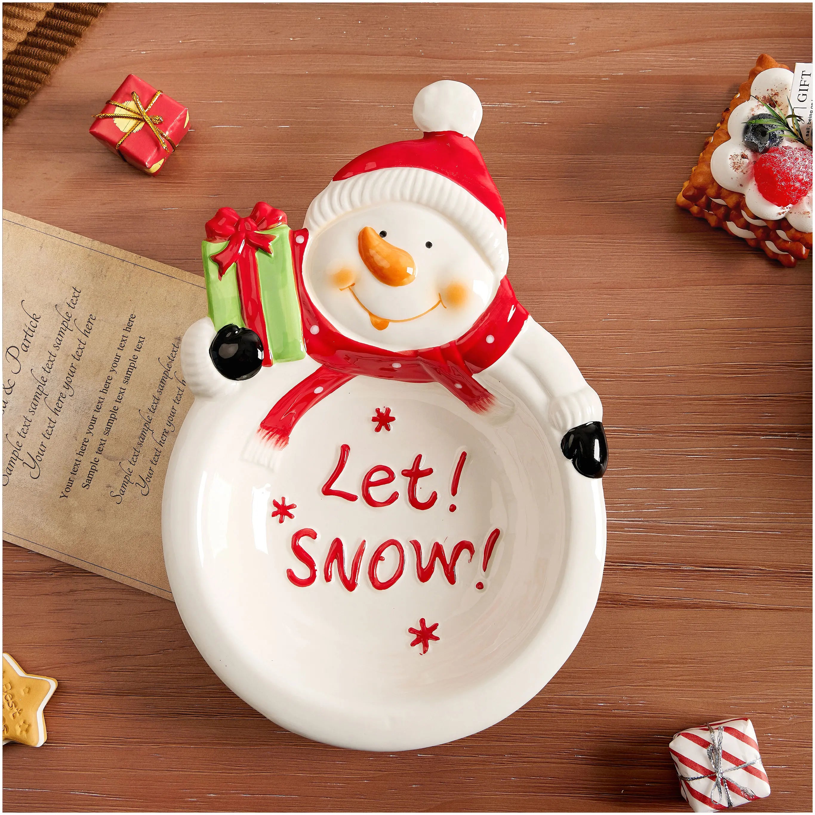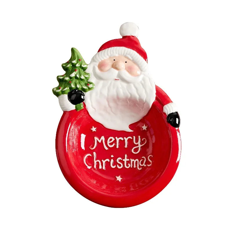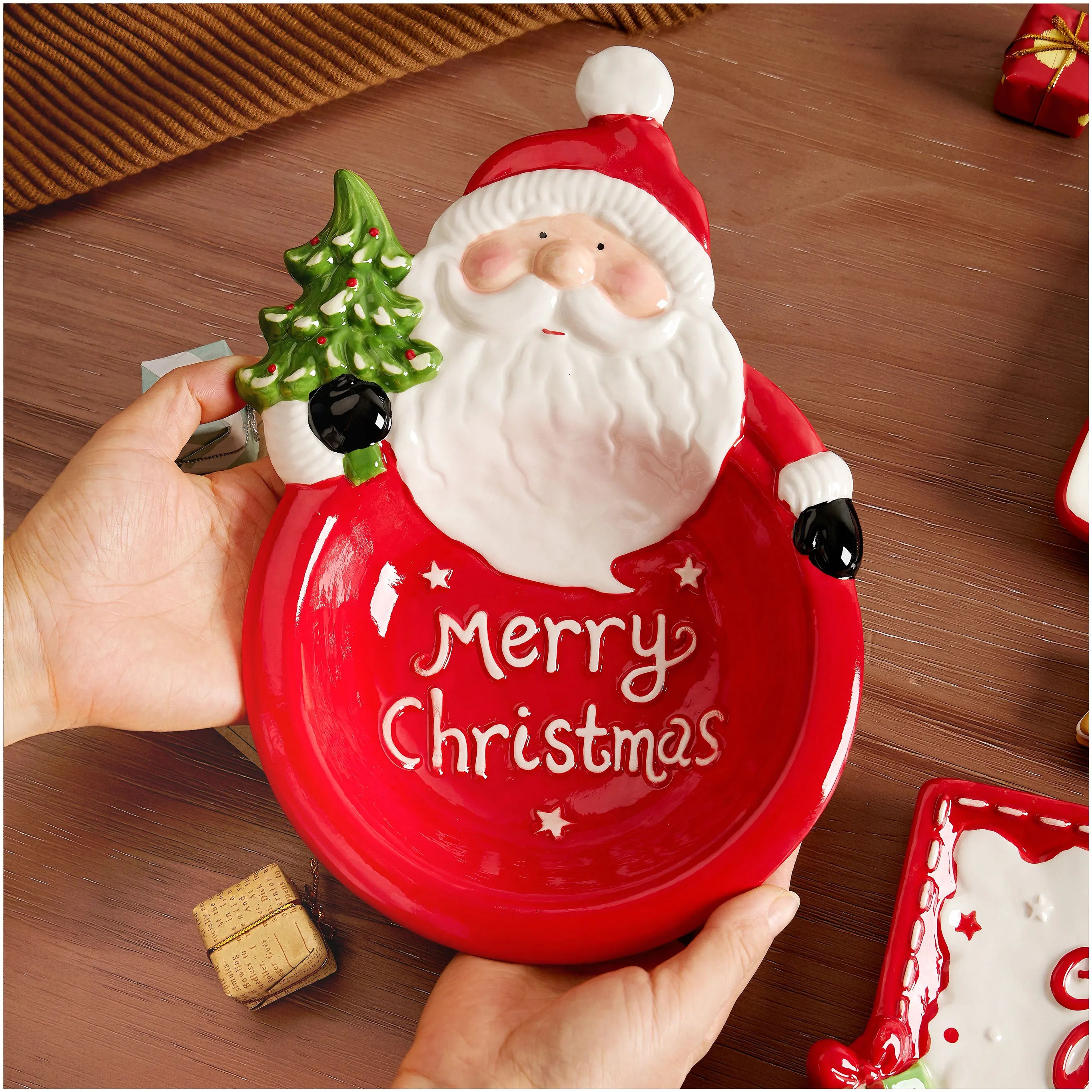 Piatto in ceramica di Babbo Natale dipinto a mano Vassoio decorativo regalo di Natale Piatto da dessert festivo Piatto da portata per biscotti carino