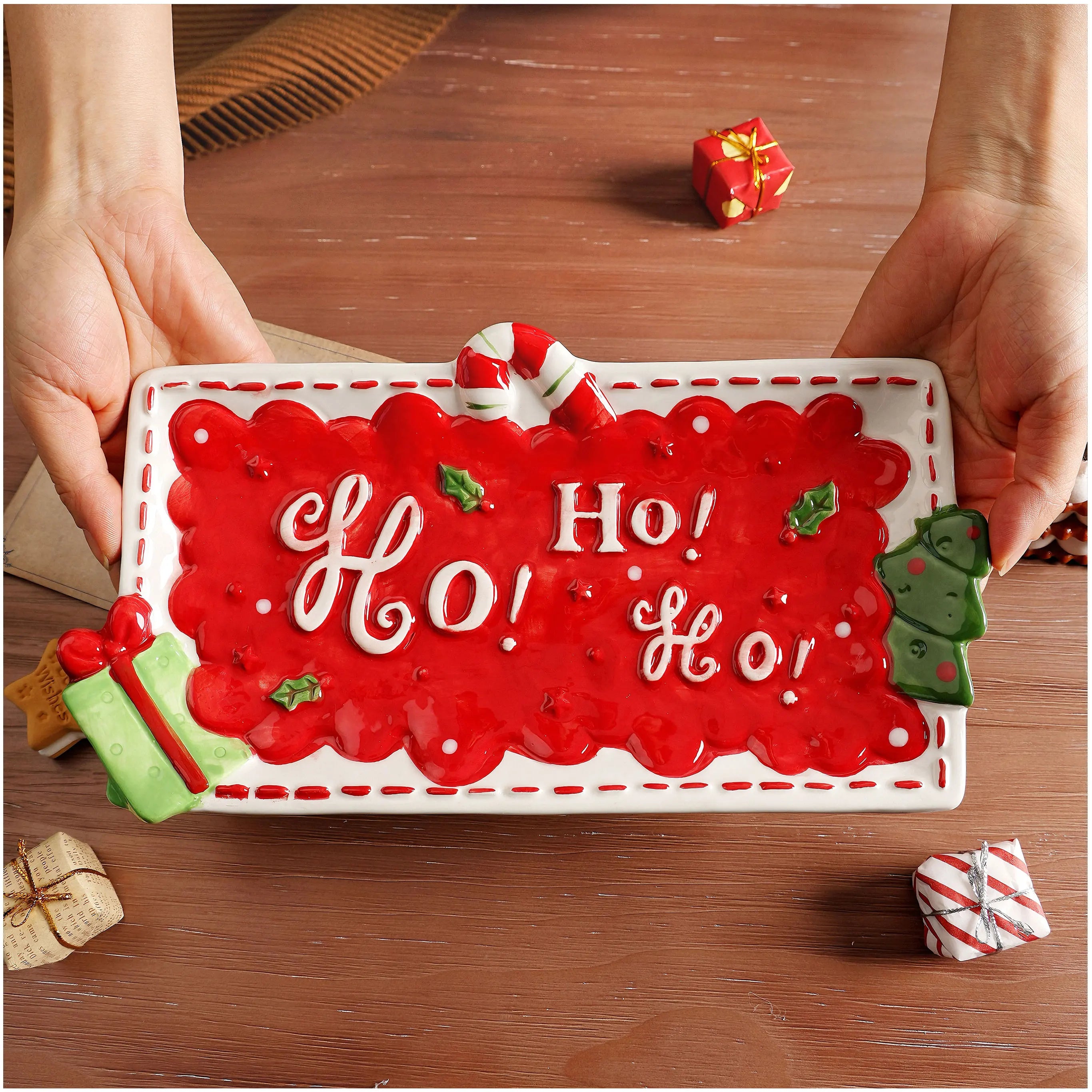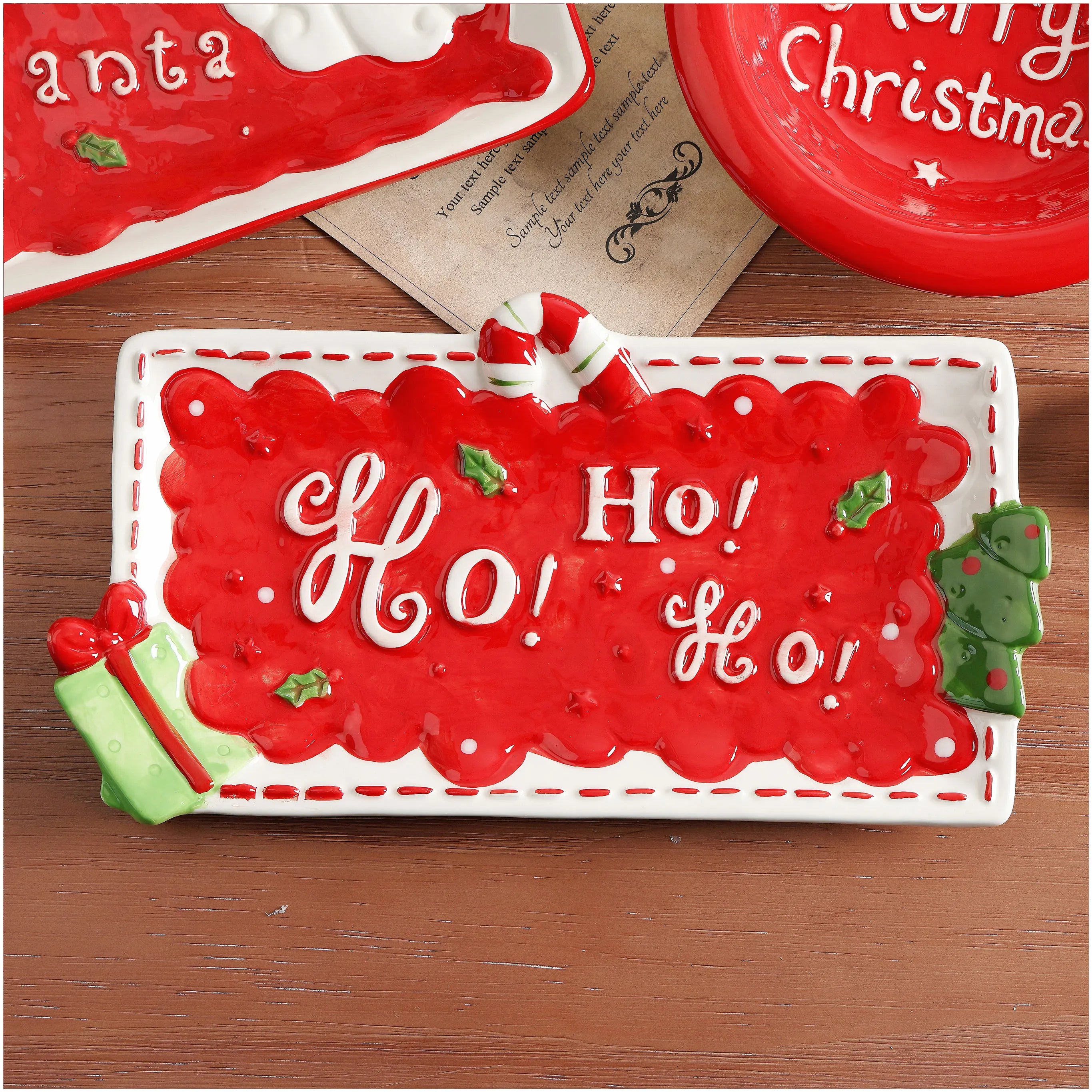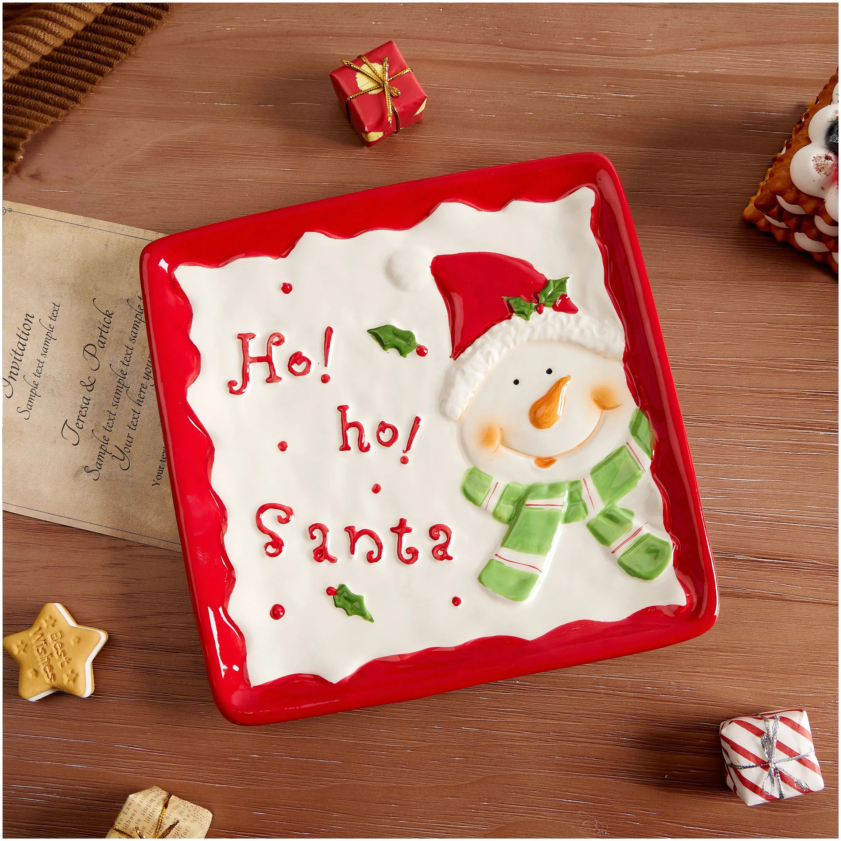 Piatto in ceramica di Babbo Natale dipinto a mano Vassoio decorativo regalo di Natale Piatto da dessert festivo Piatto da portata per biscotti carino