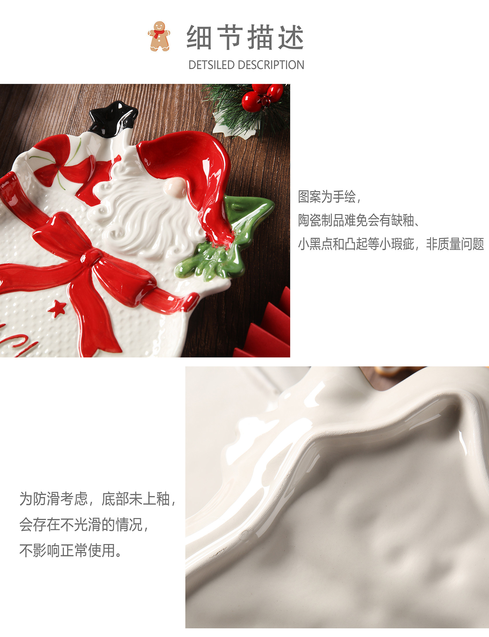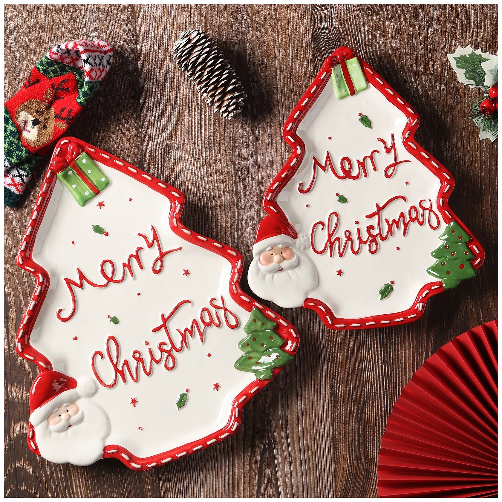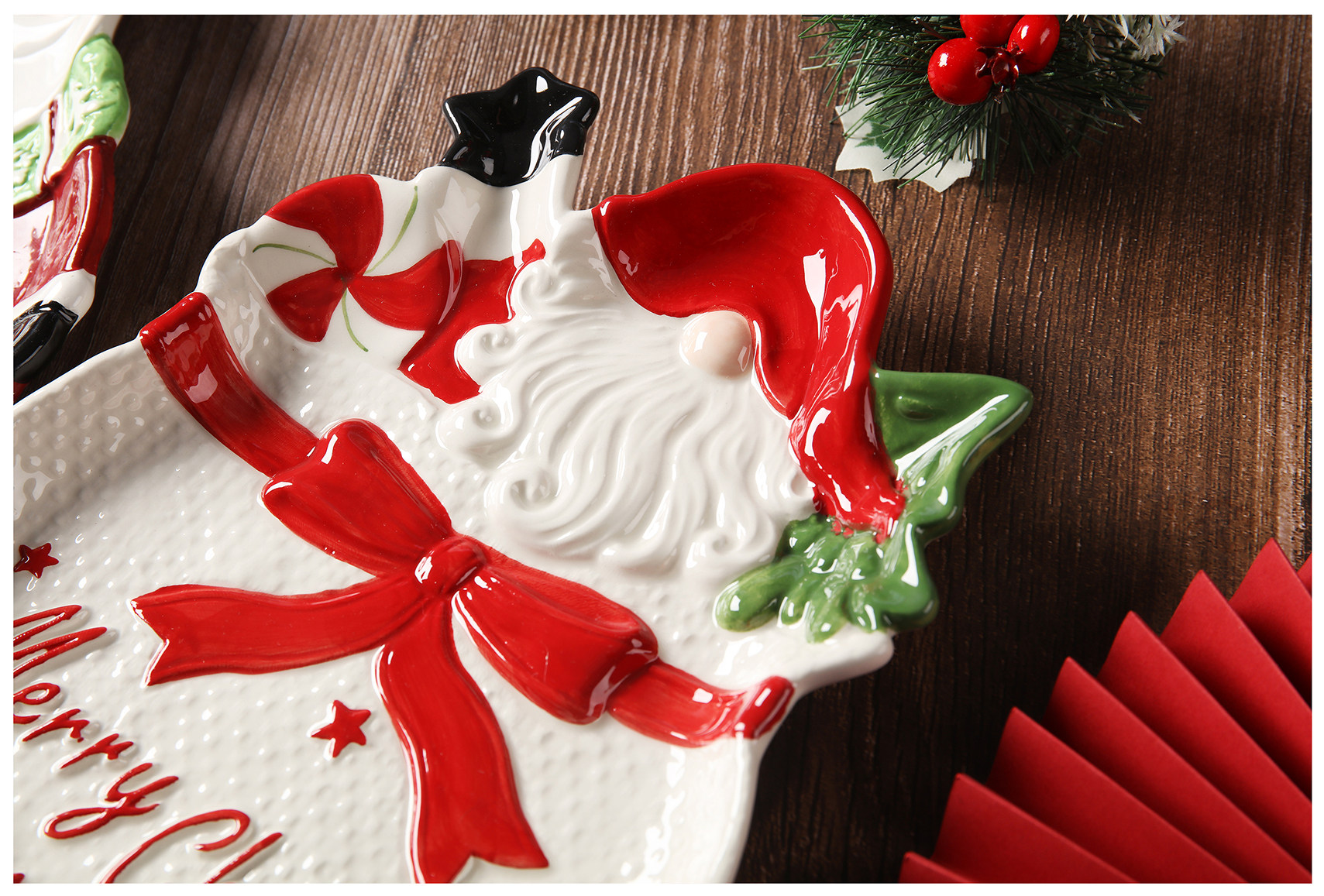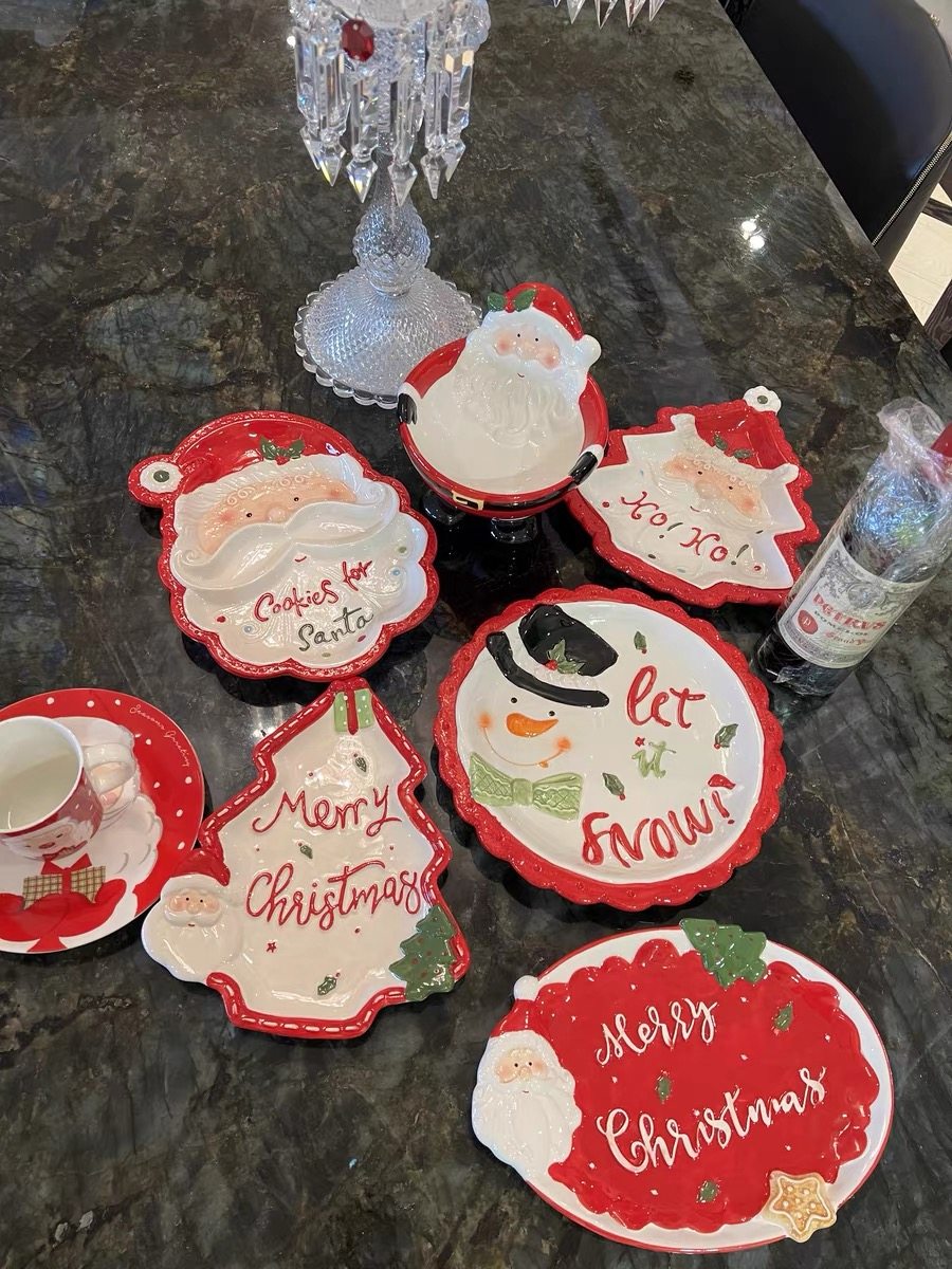 Nome prodotto: Piastra in ceramica a forma di pino di Babbo Natale per esportazione dipinta a mano in 3D