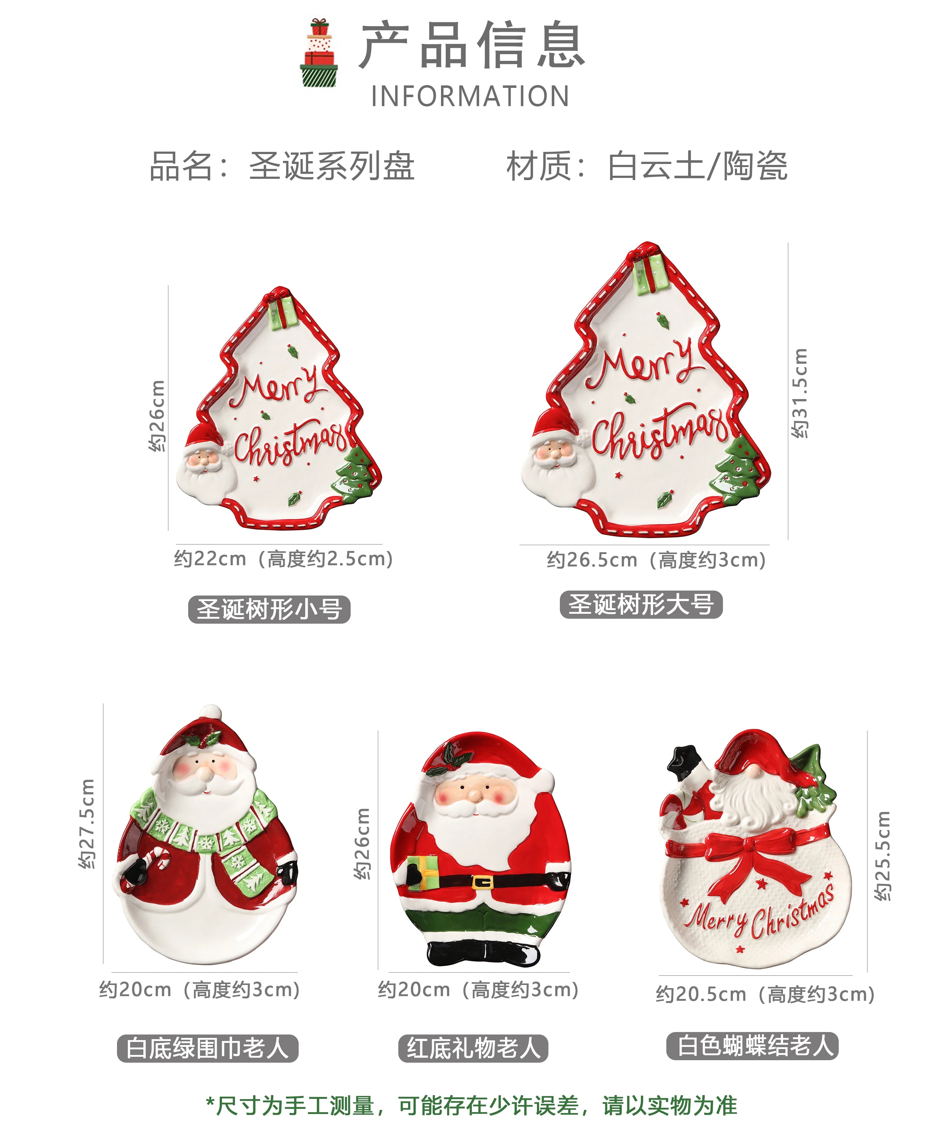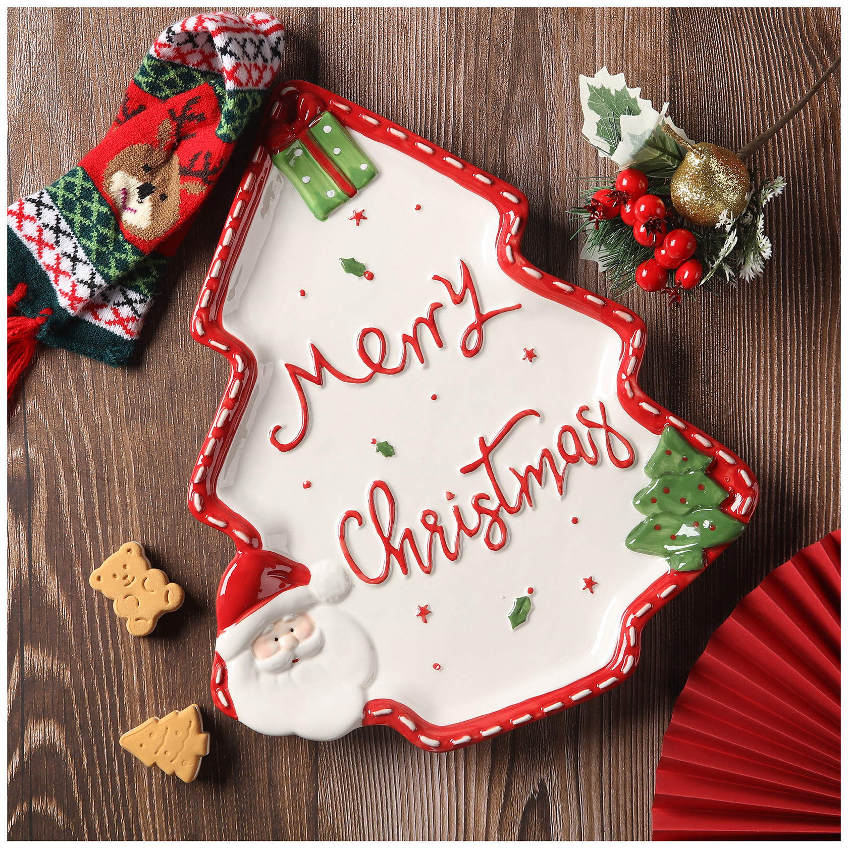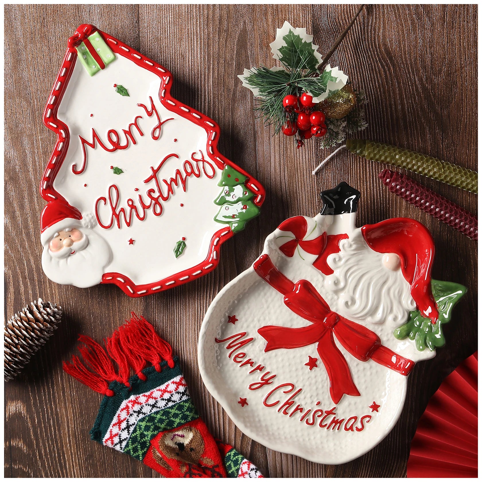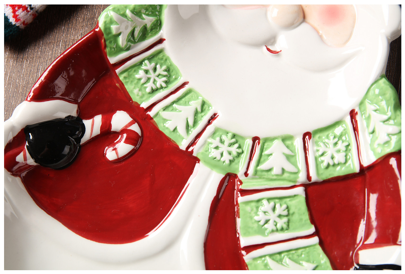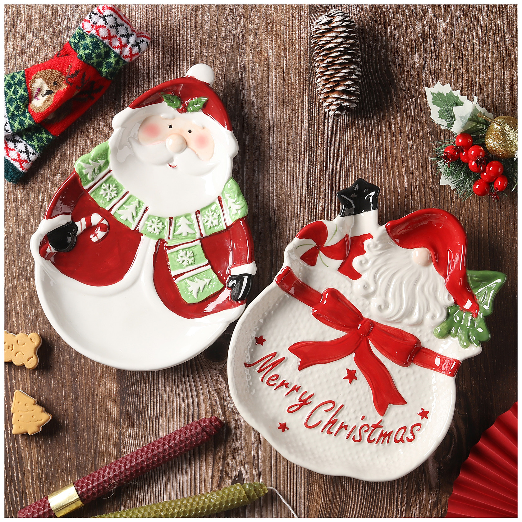 Nome prodotto: Piastra in ceramica a forma di pino di Babbo Natale per esportazione dipinta a mano in 3D
