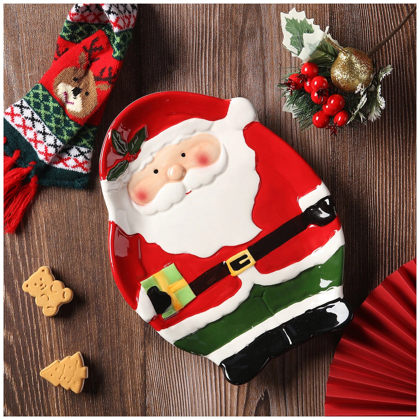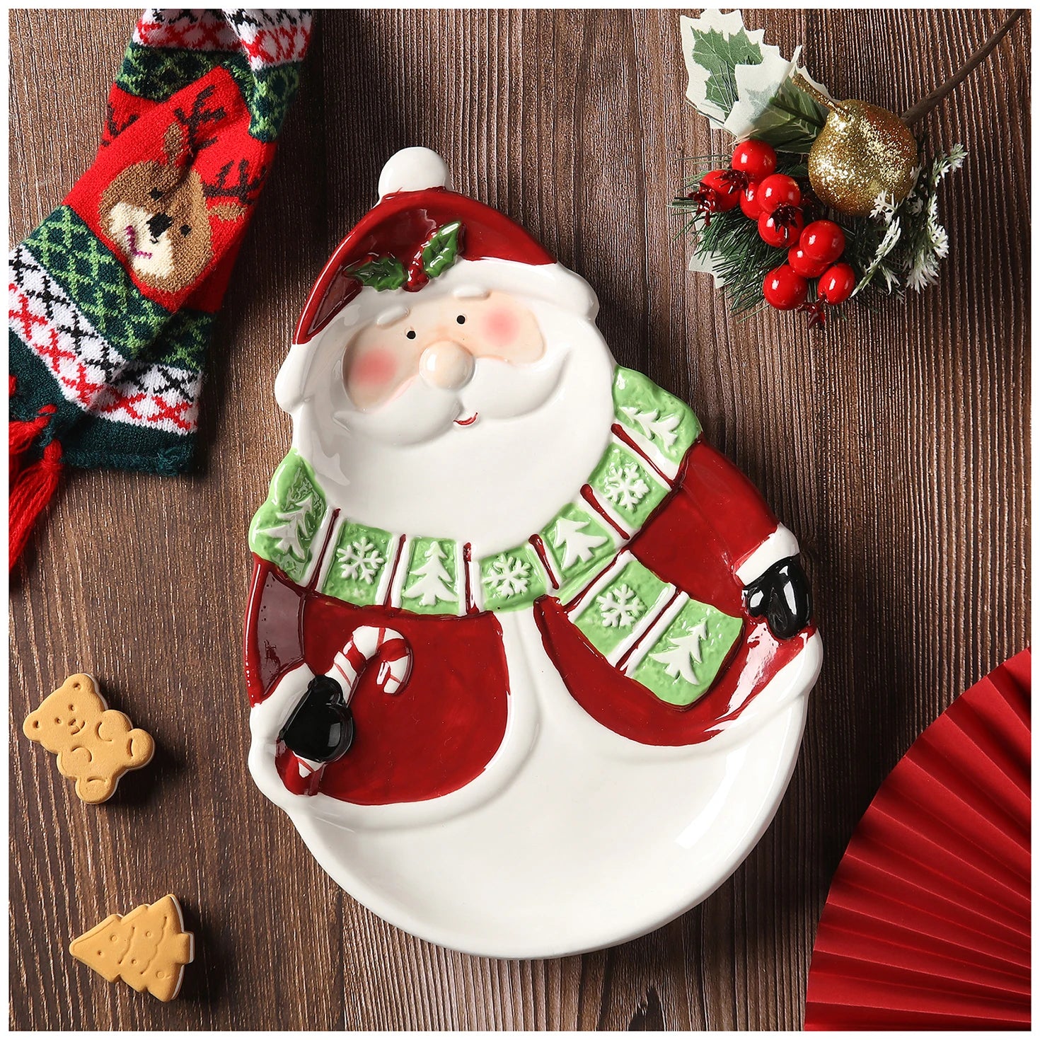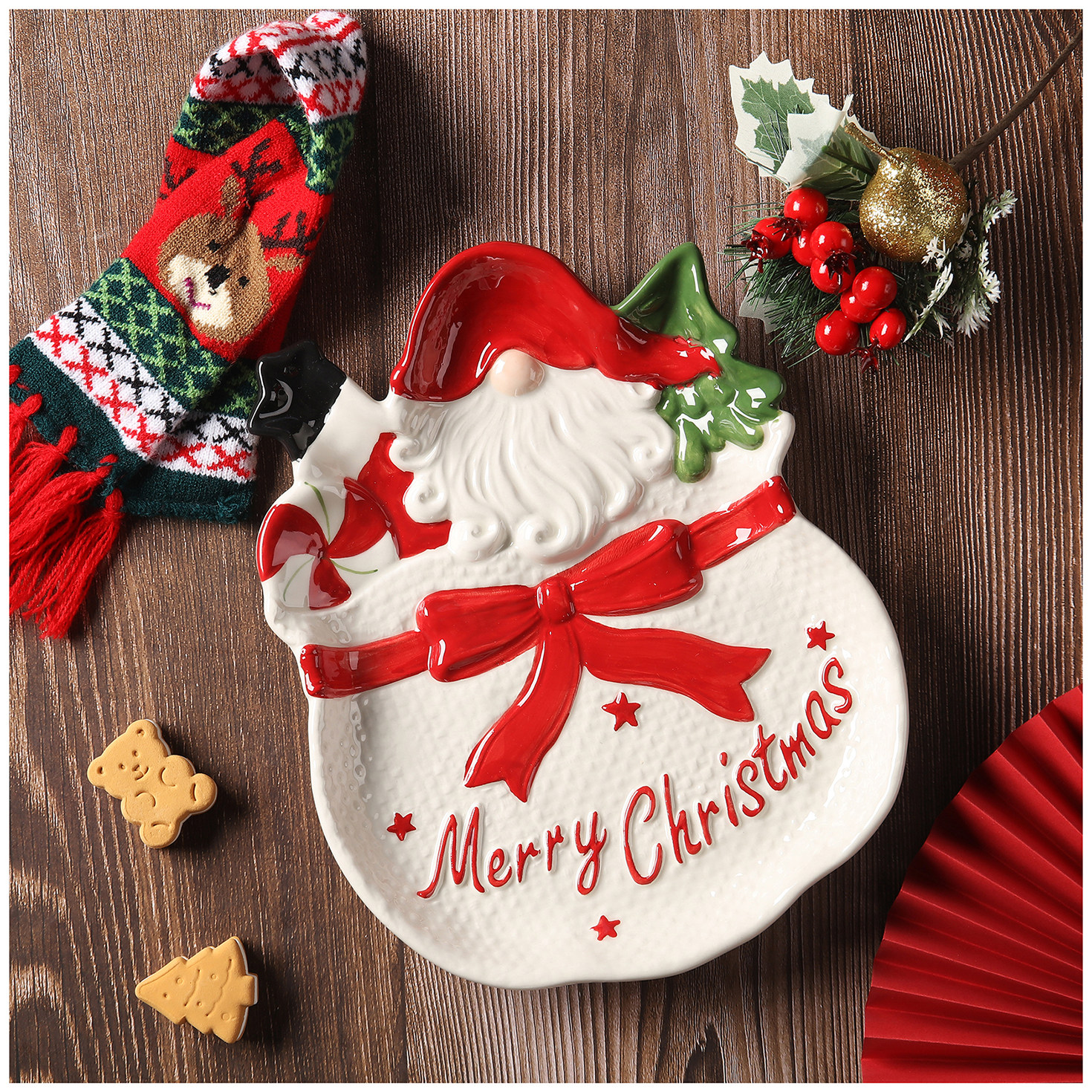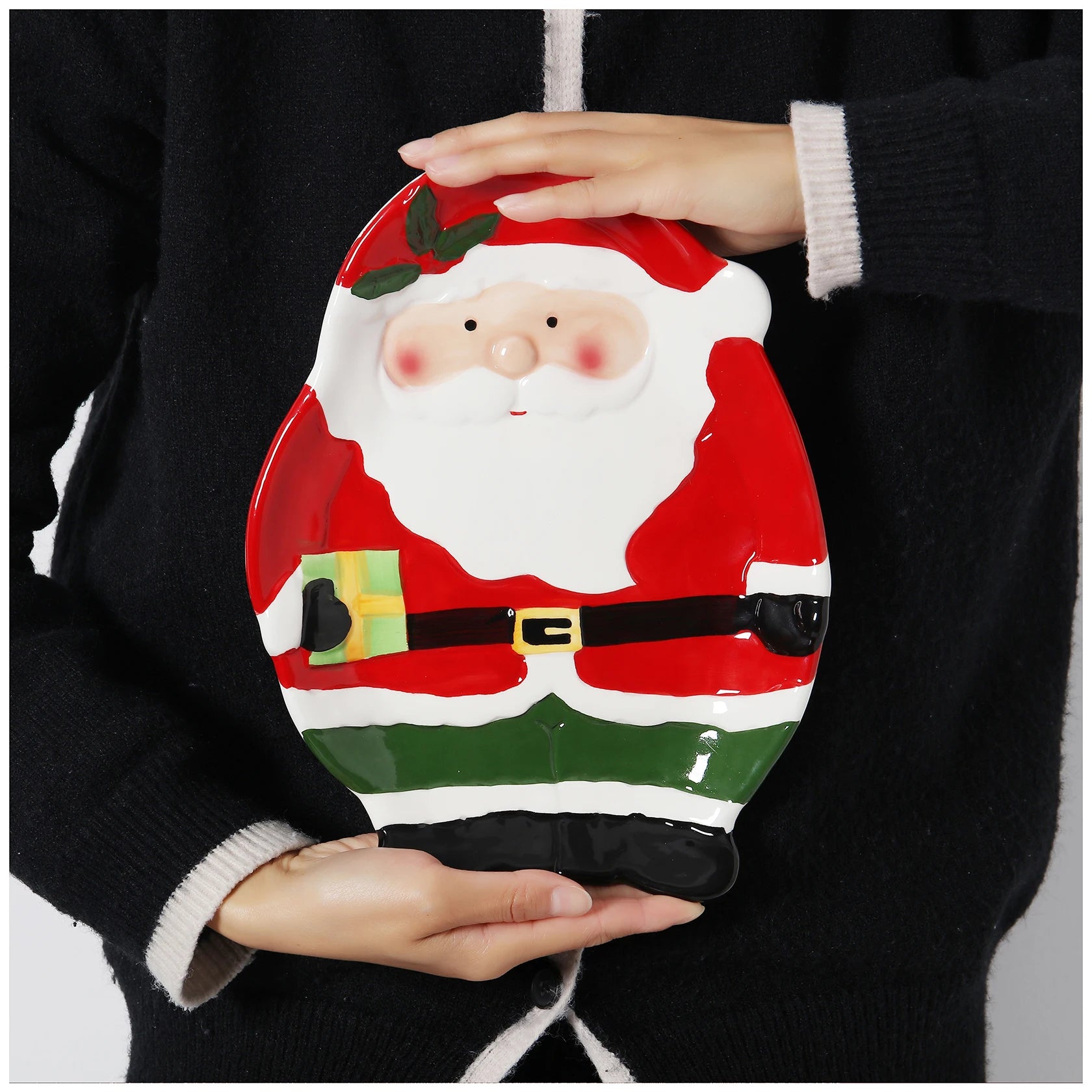 Nome prodotto: Piastra in ceramica a forma di pino di Babbo Natale per esportazione dipinta a mano in 3D