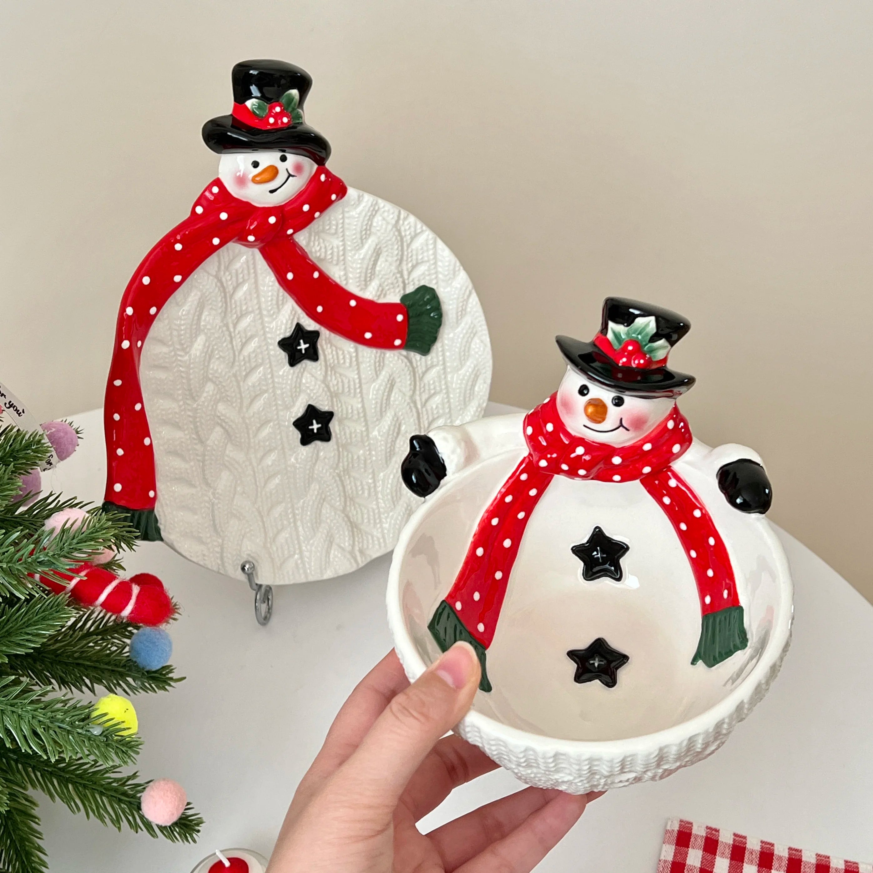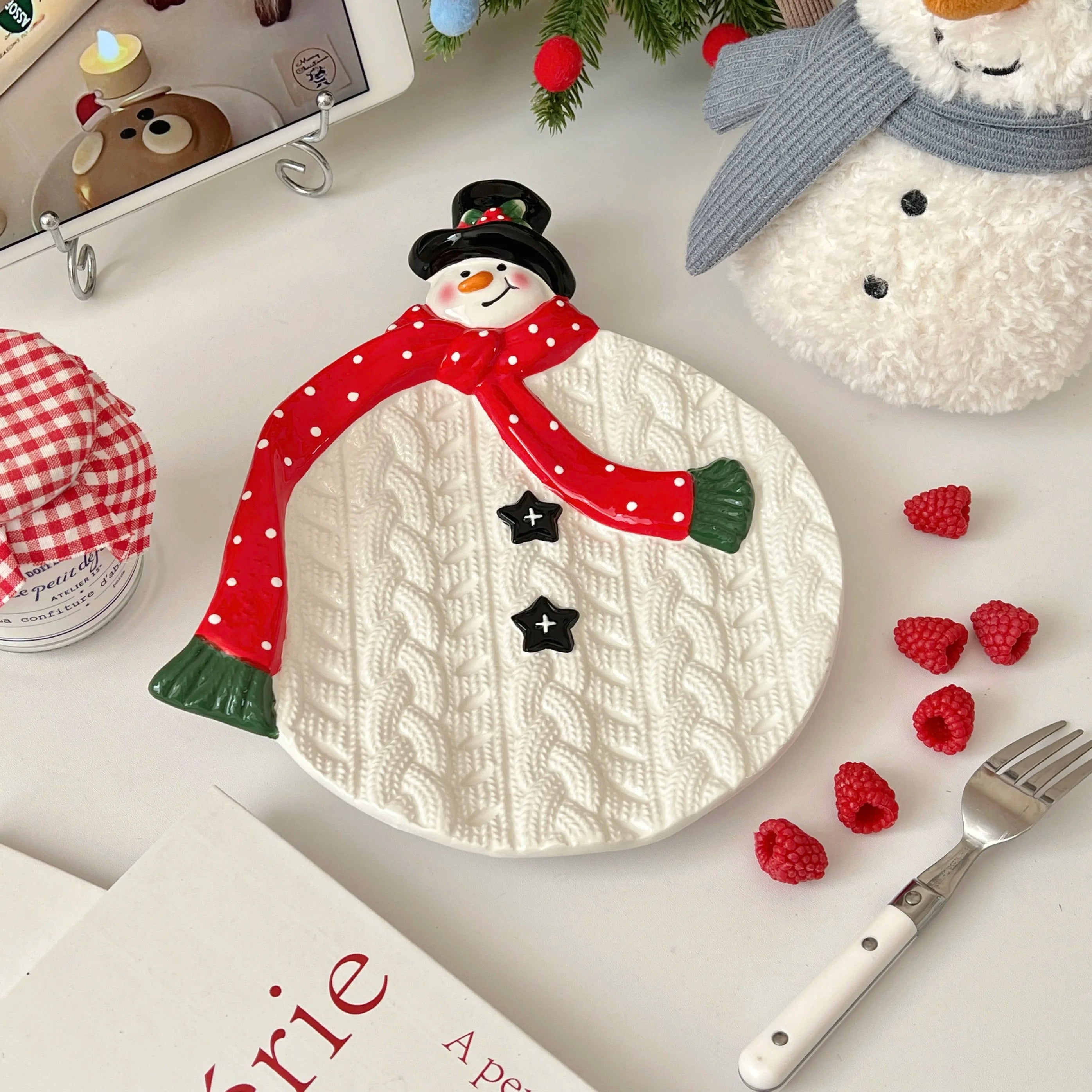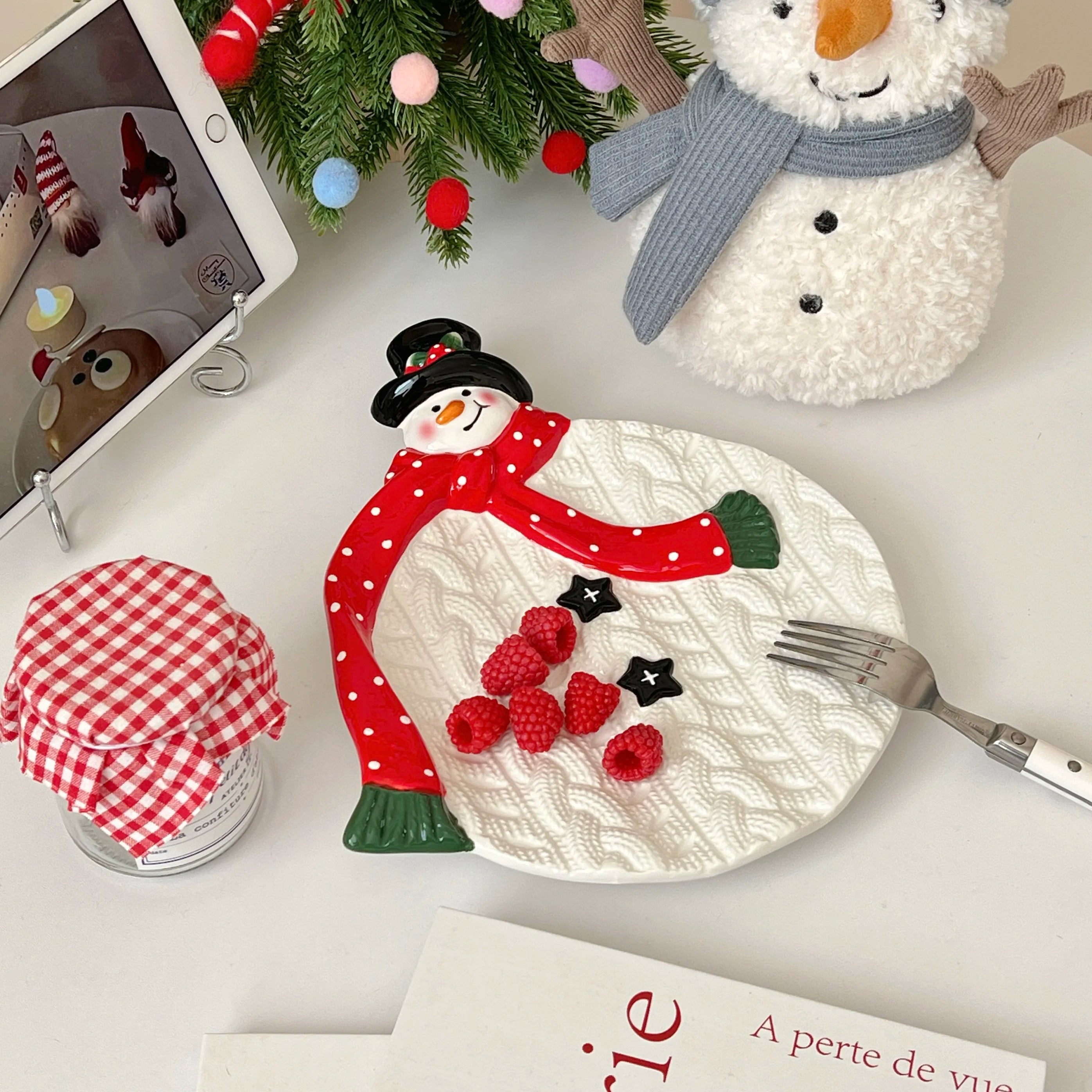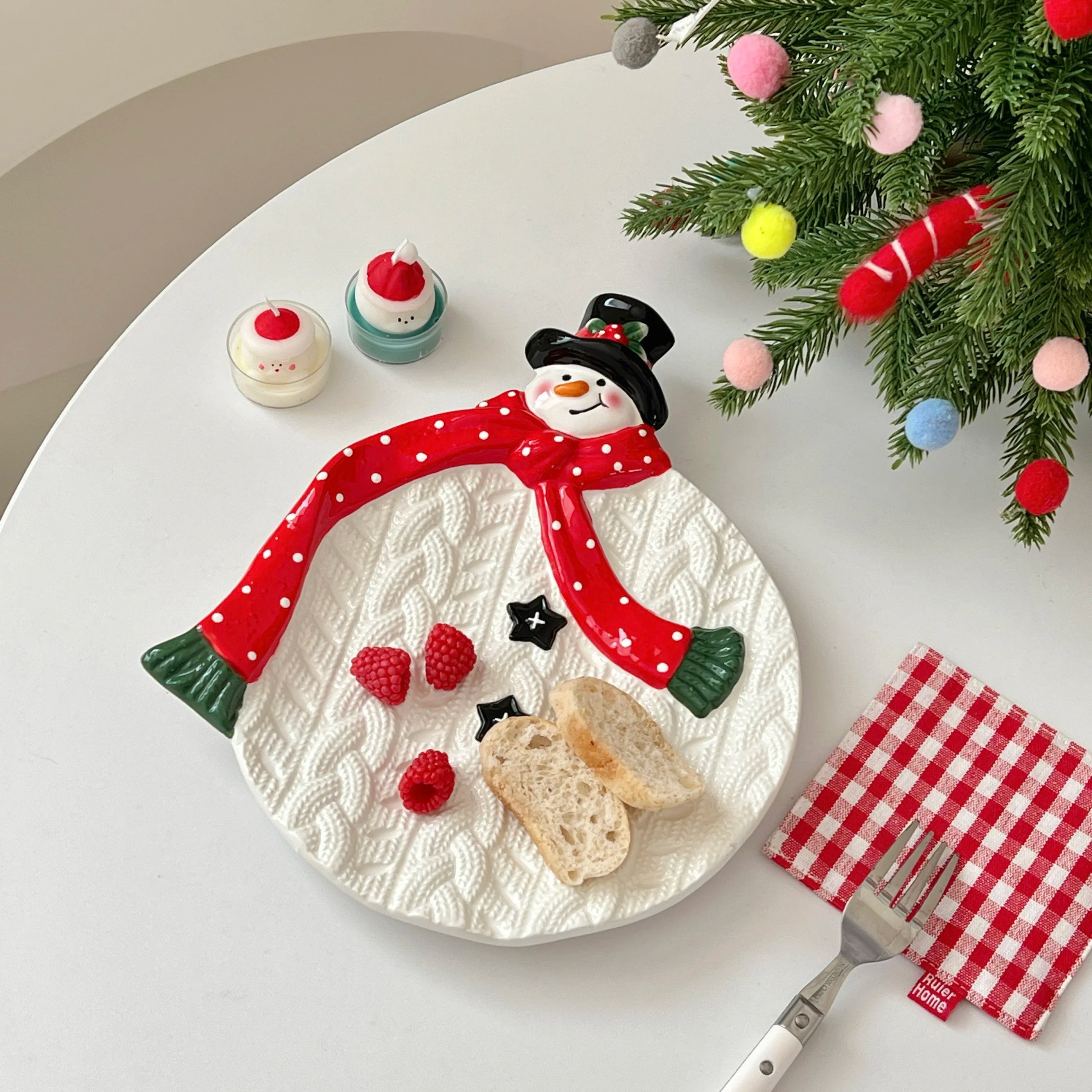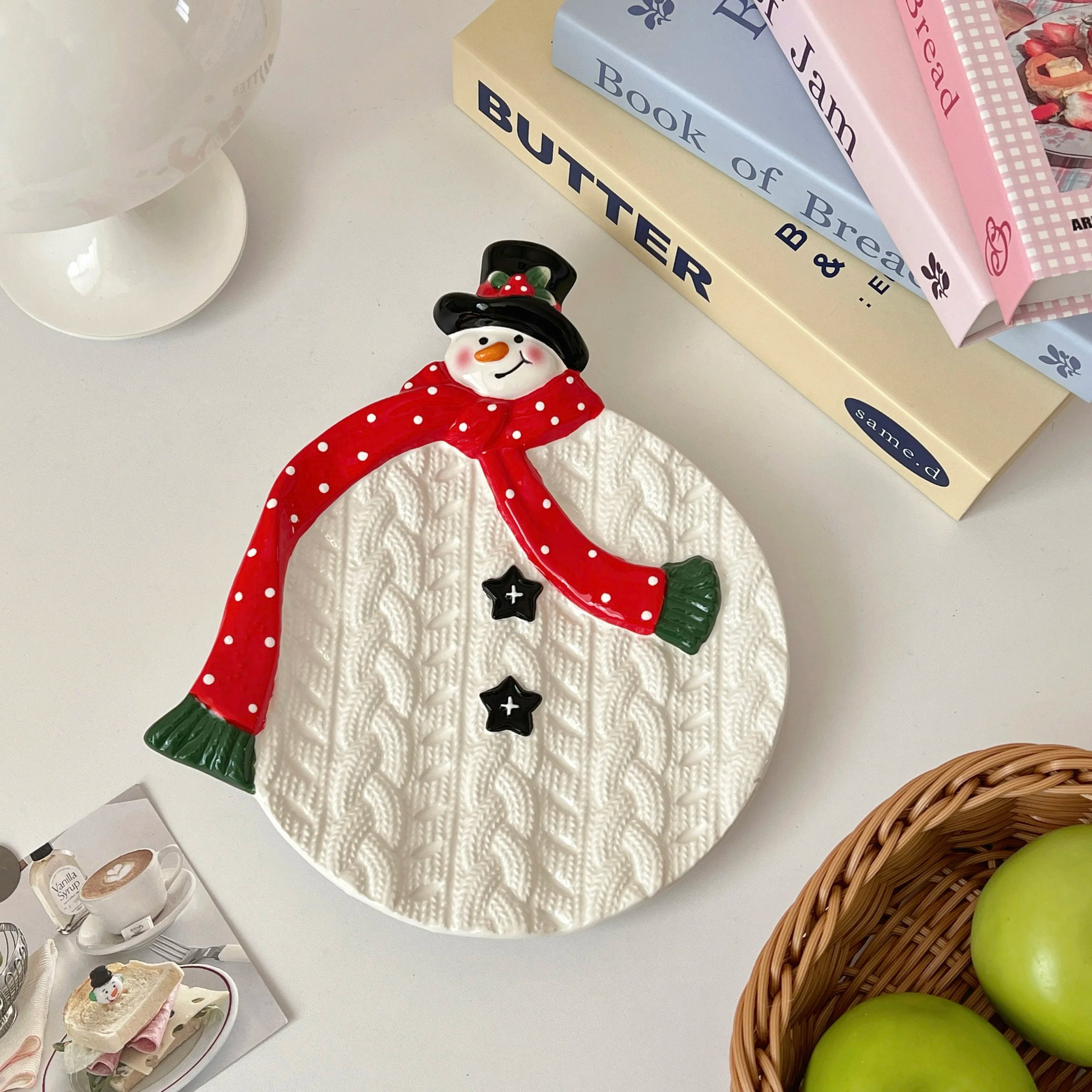 Piatto pupazzo di neve di Natale, piatto da dessert in ceramica, regalo di Natale, piatto creativo e carino