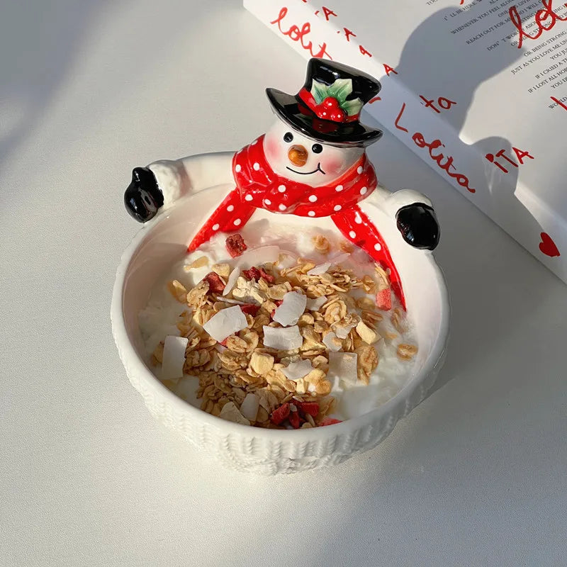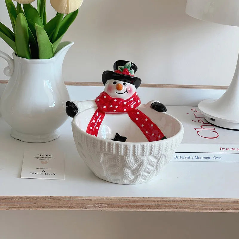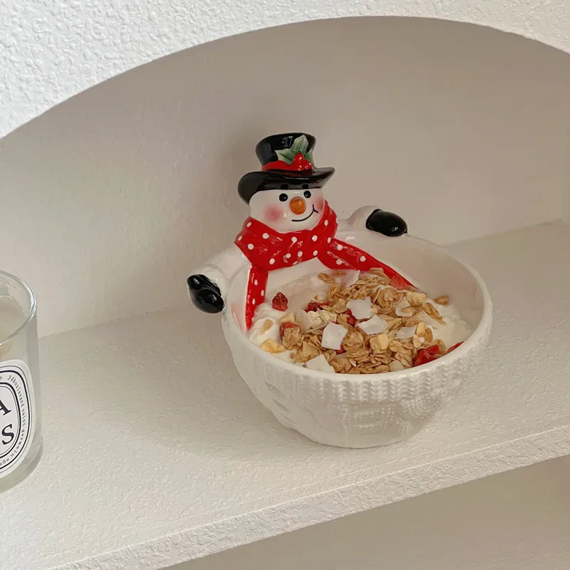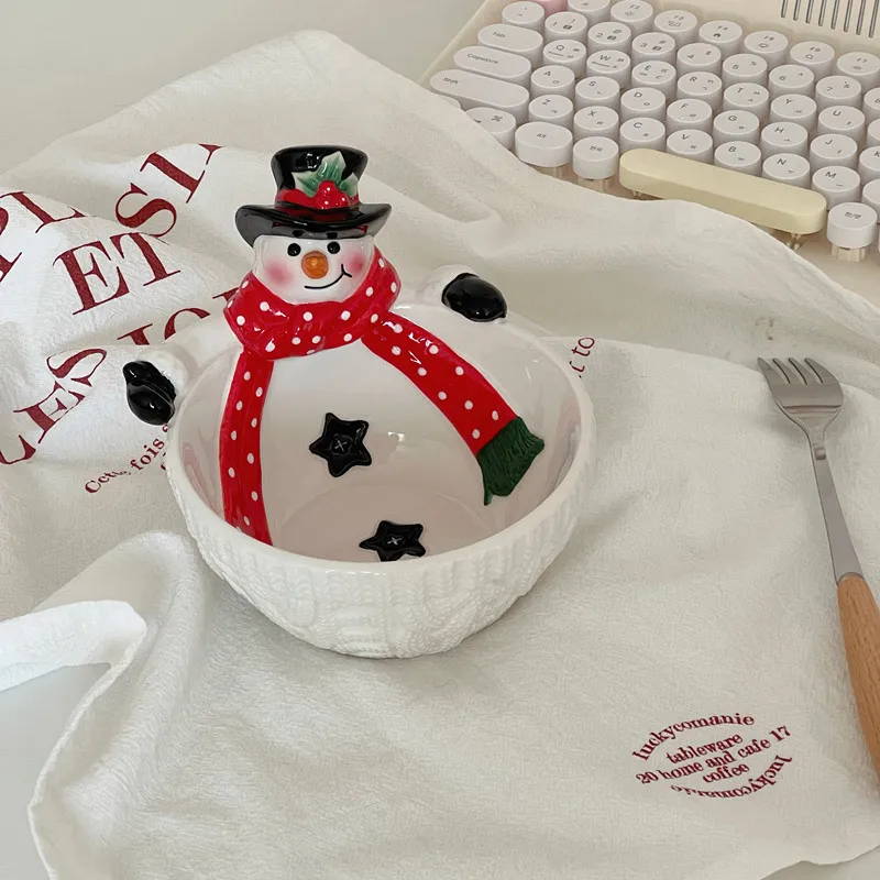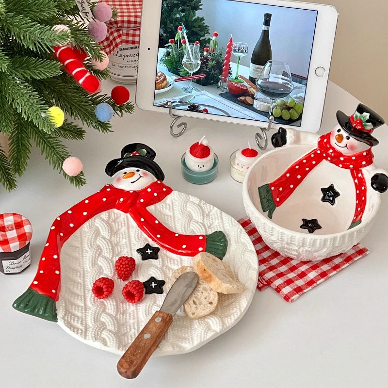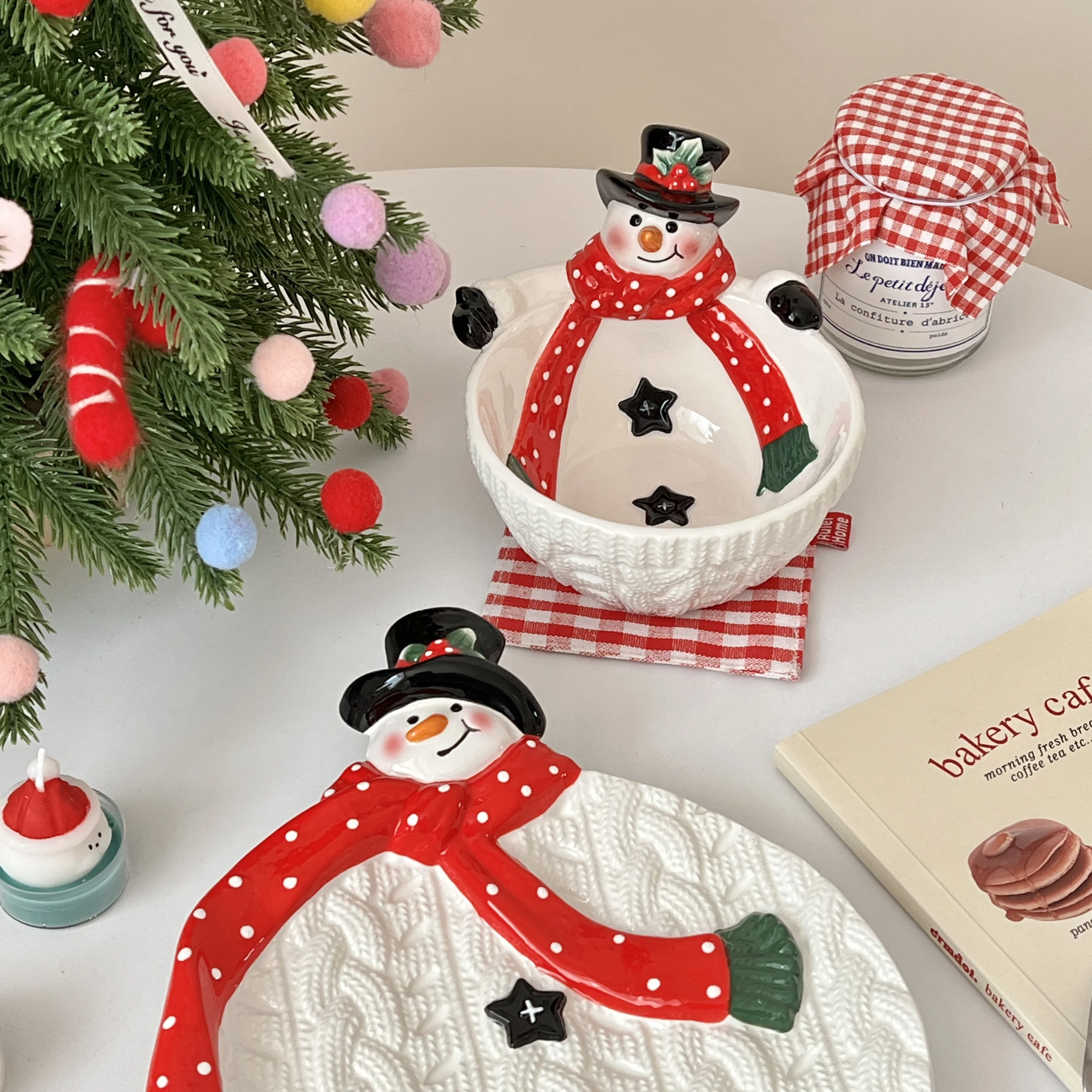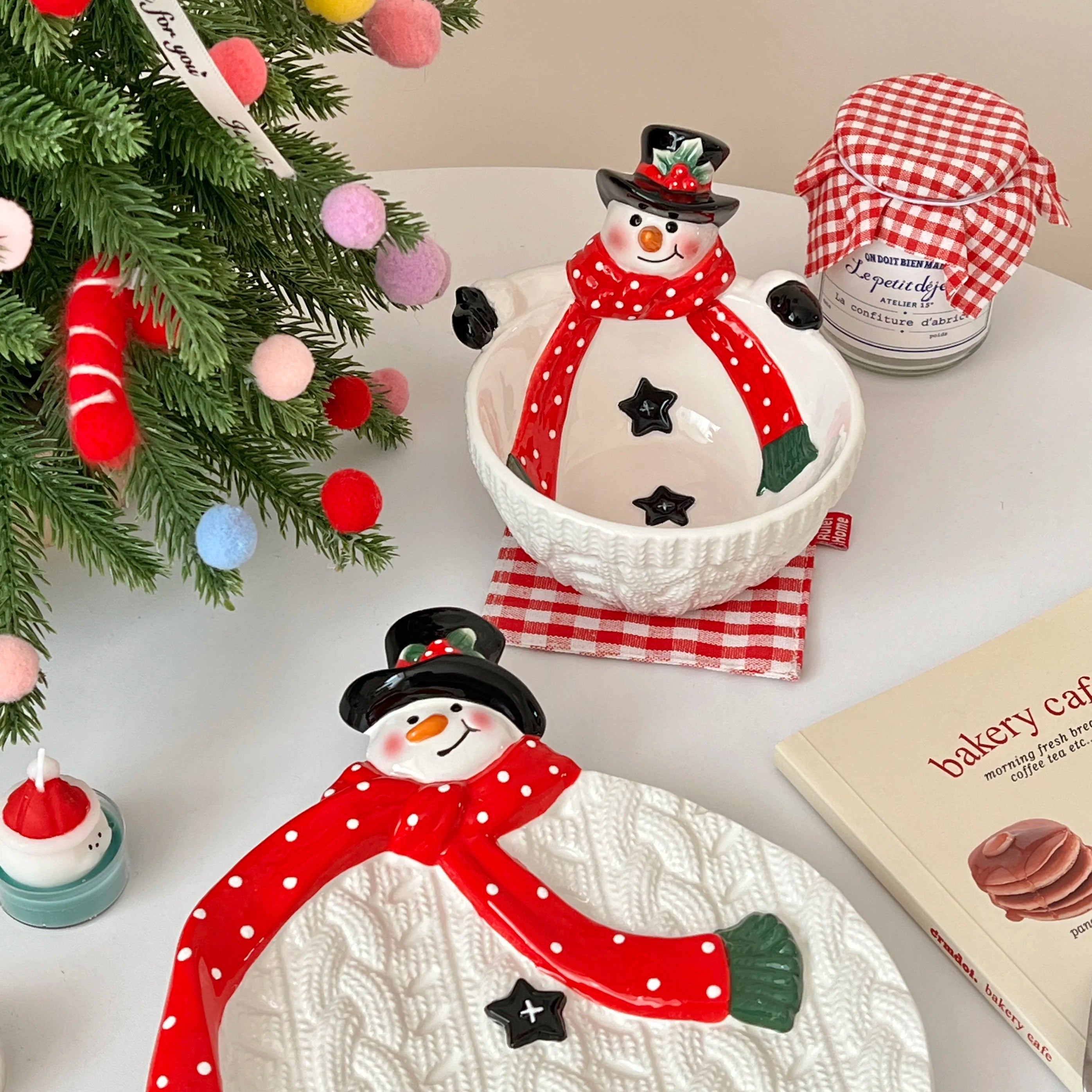 Piatto pupazzo di neve di Natale, piatto da dessert in ceramica, regalo di Natale, piatto creativo e carino