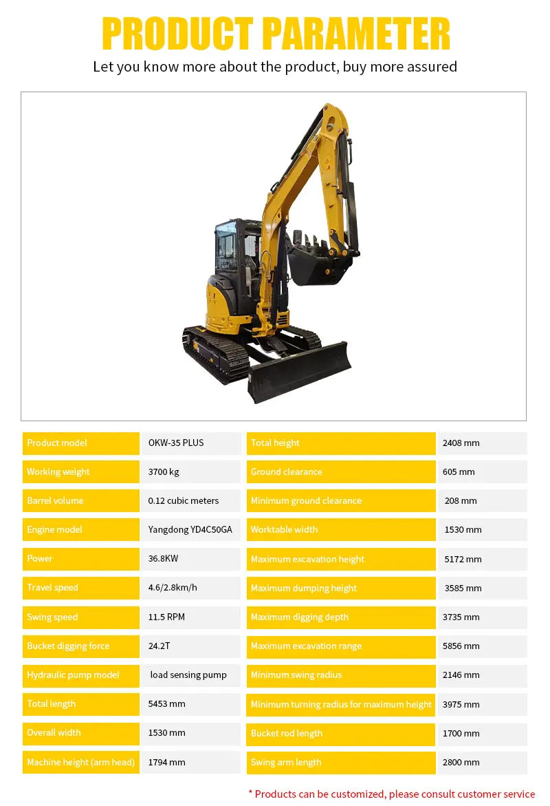Piccolo escavatore diesel da 3,5 tonnellate, gru cingolata da 3 tonnellate, potente forza di sollevamento e scavo dell'escavatore