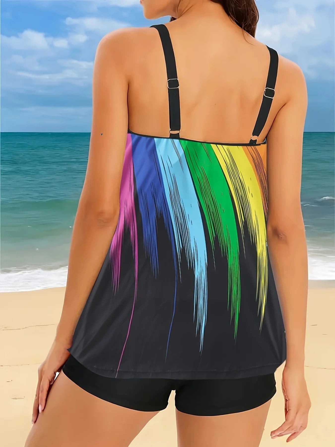 Plus size bikini skirt one-piece style conservative swimsuit print totem suitable for mature women color