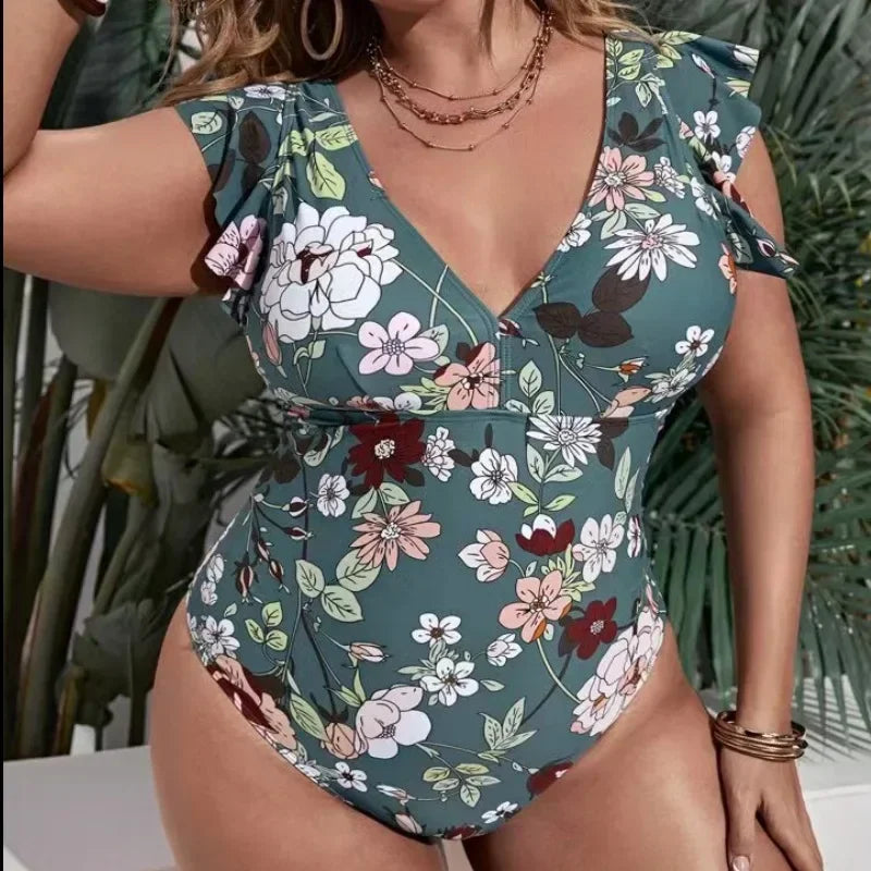 Plus Size Swimwear Women 2025 Sexy Bikini One Piece Swimsuit Print Tankini Beach Wear Bathing Suit Bodysuits Thong Monokini 4XL
