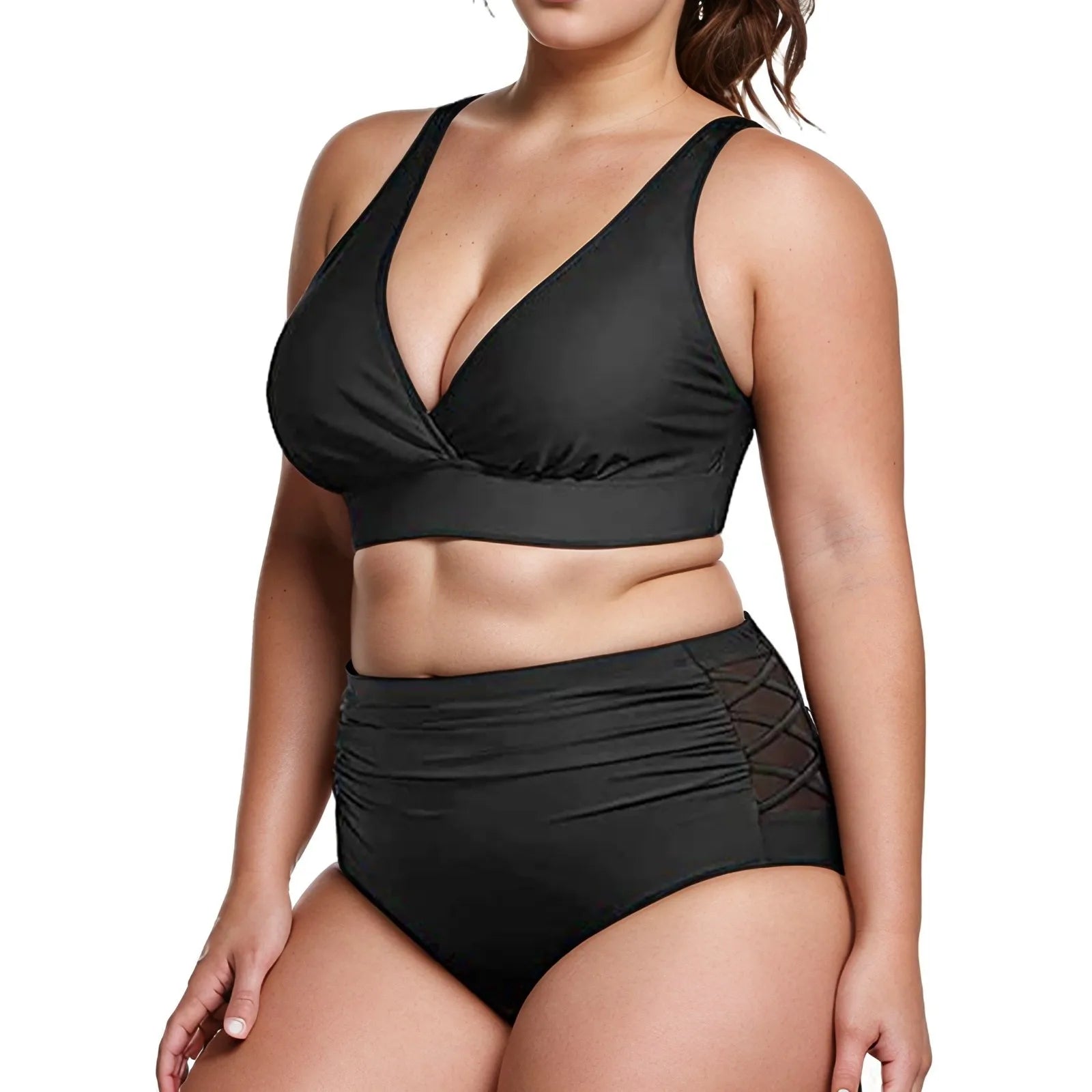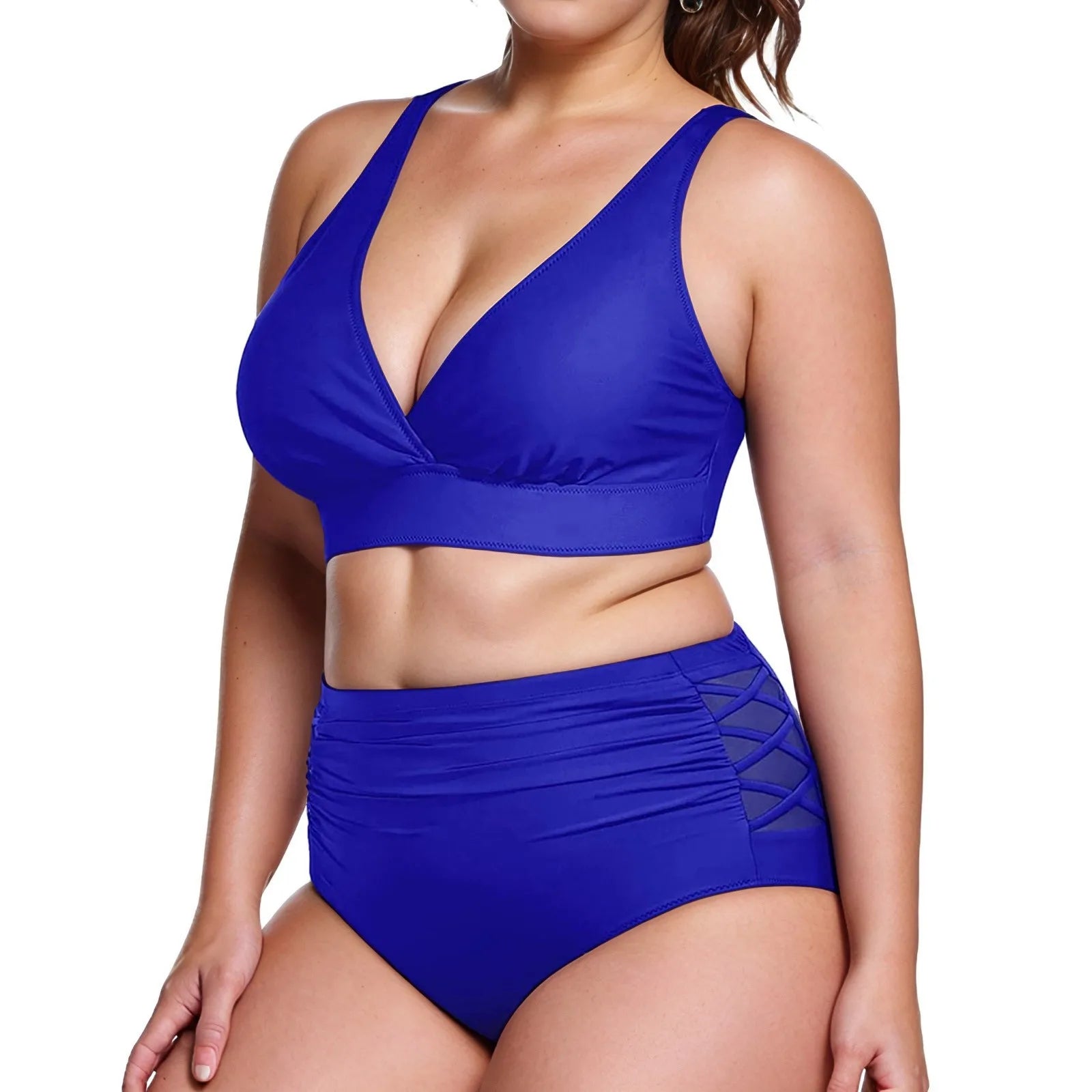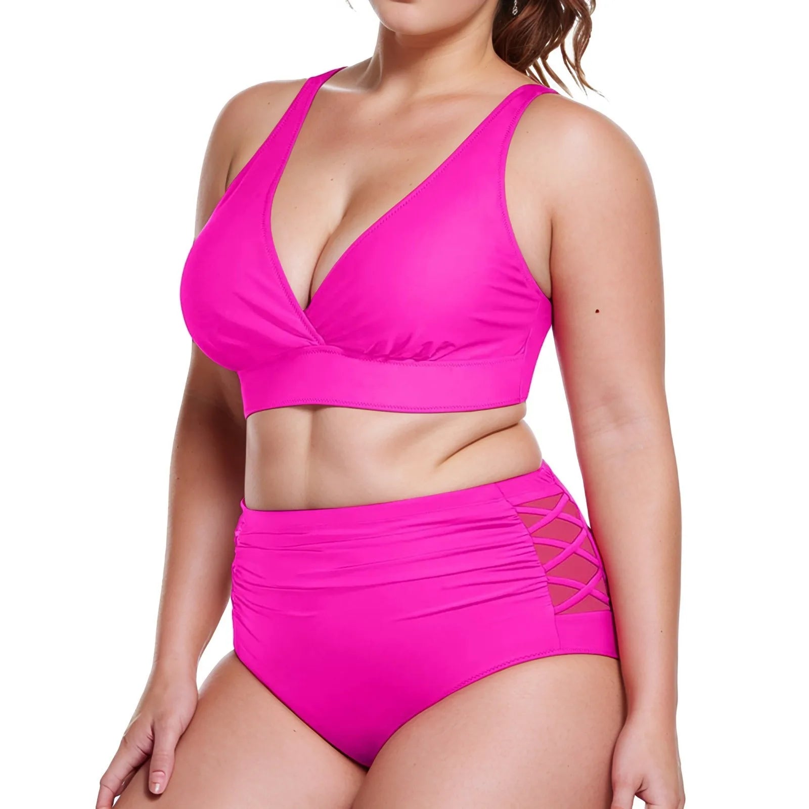 Plus Size Two Pieces Sexy Swimsuits 2025 Women Bikini Set Beachwear Push Up Solid Summer Bathing Suit Triangle Bikini Swimwear