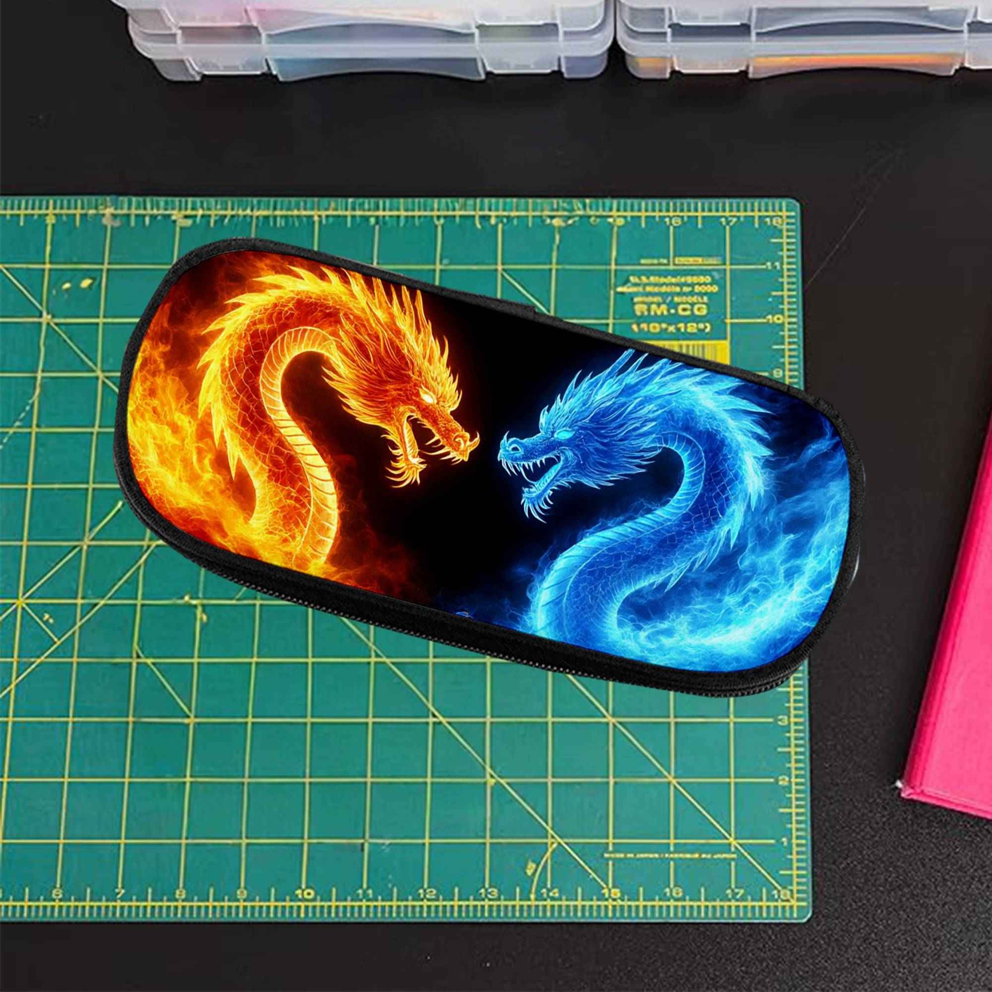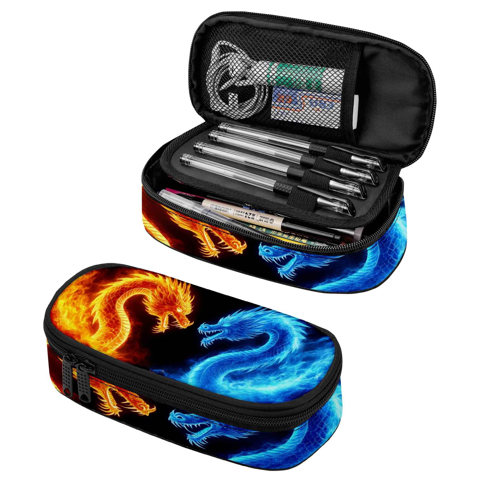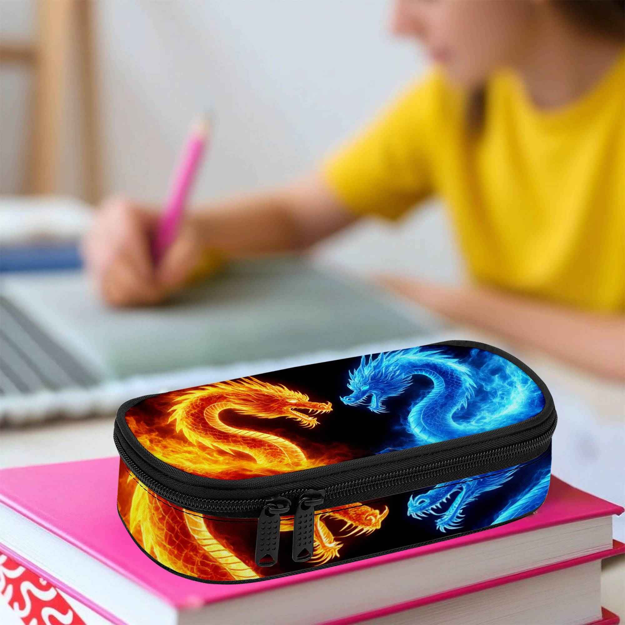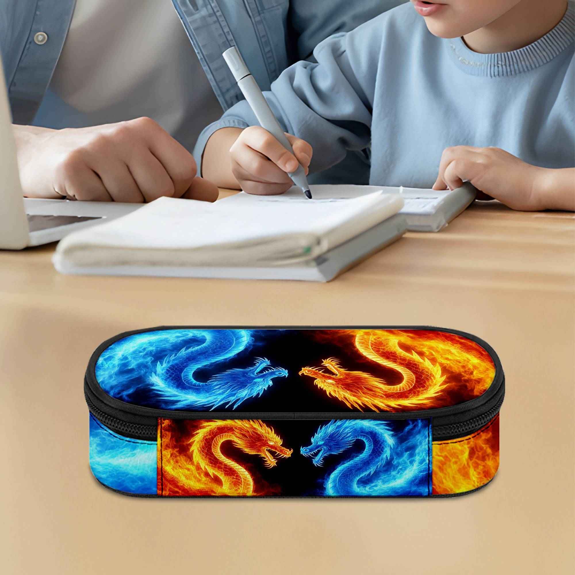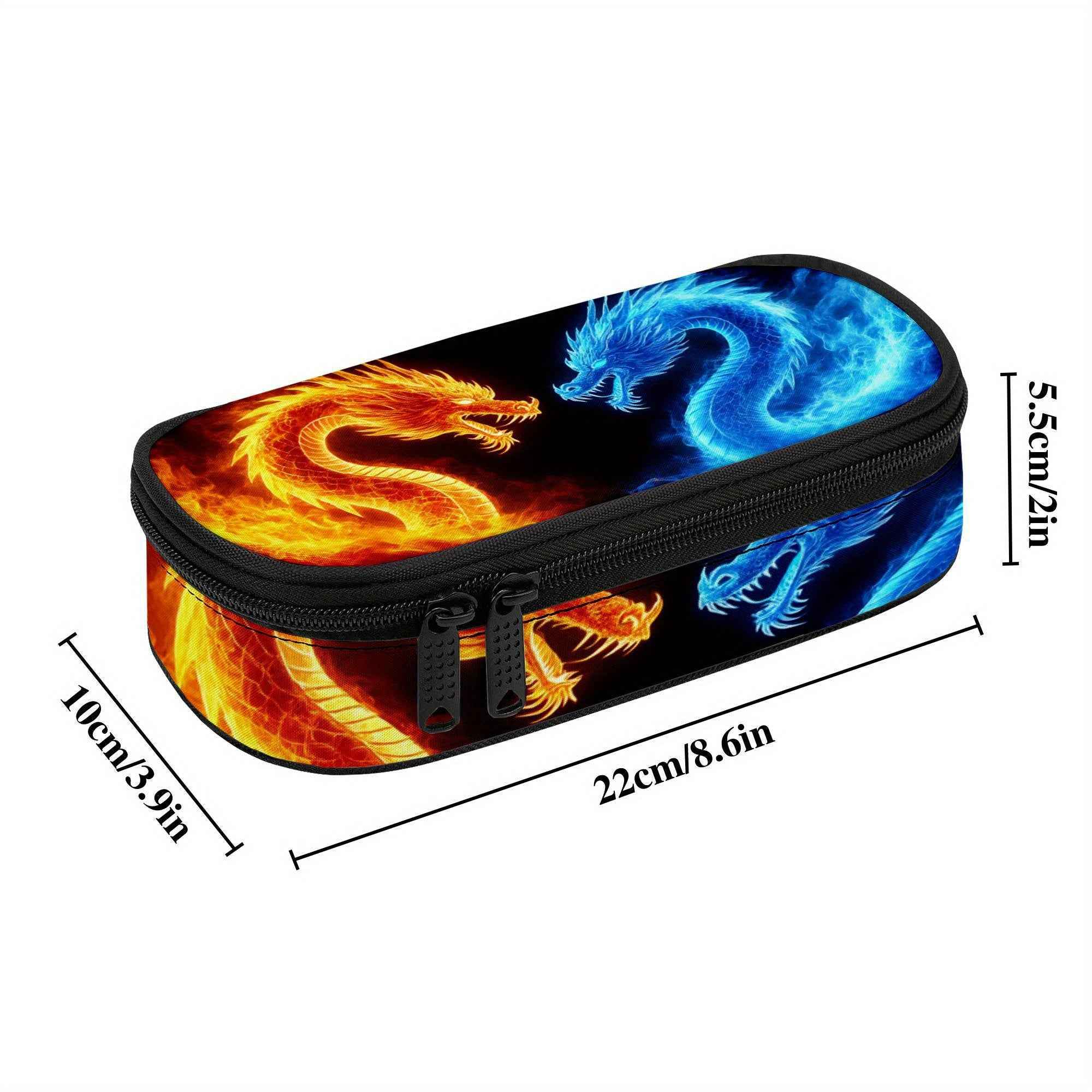 Portapenne Dual Dragons - Design Drago di Fuoco e Ghiaccio con Scomparto a Cerniera, Astuccio Resistente per Materiale Scolastico, Viaggi, Ragazze e Ragazzi Adolescenti