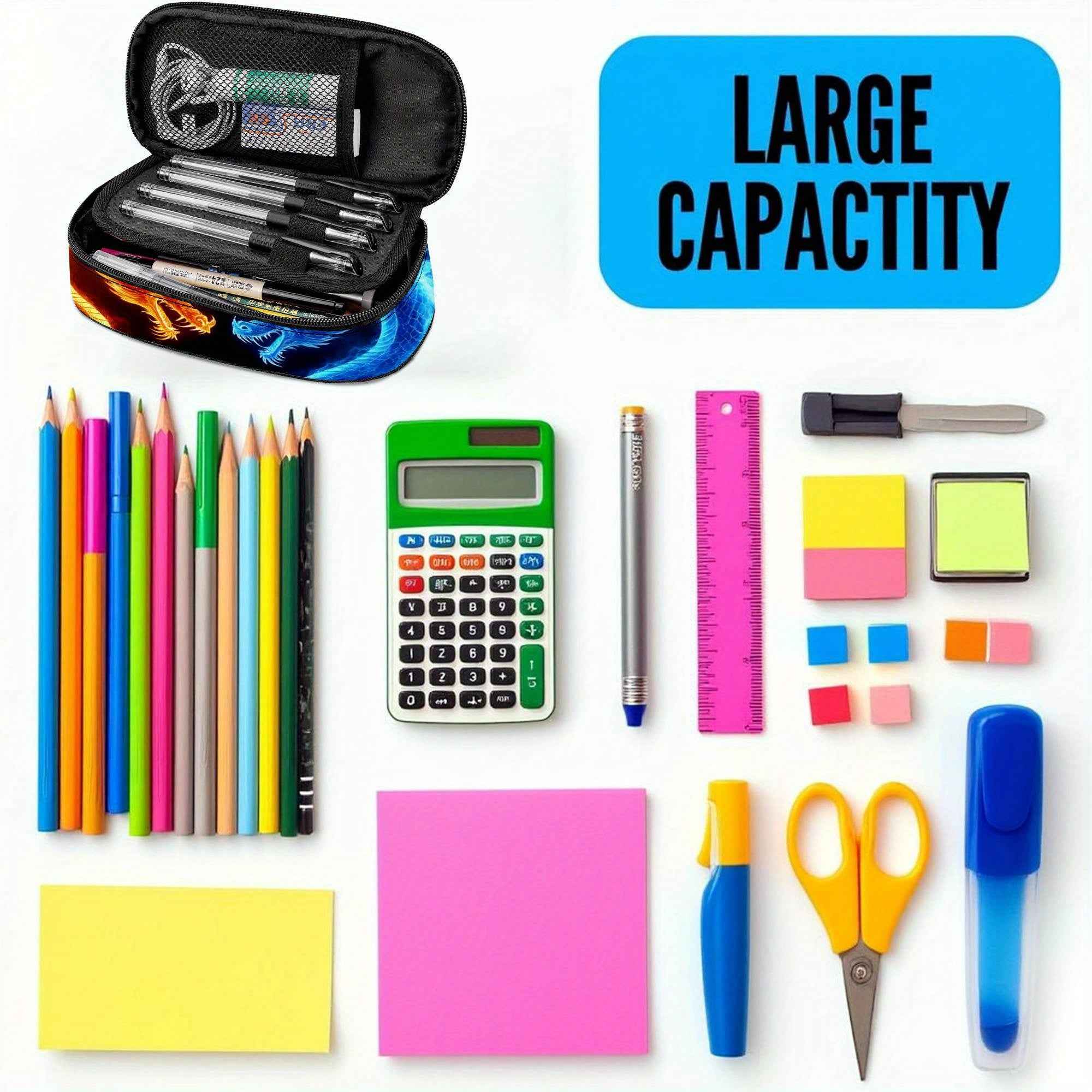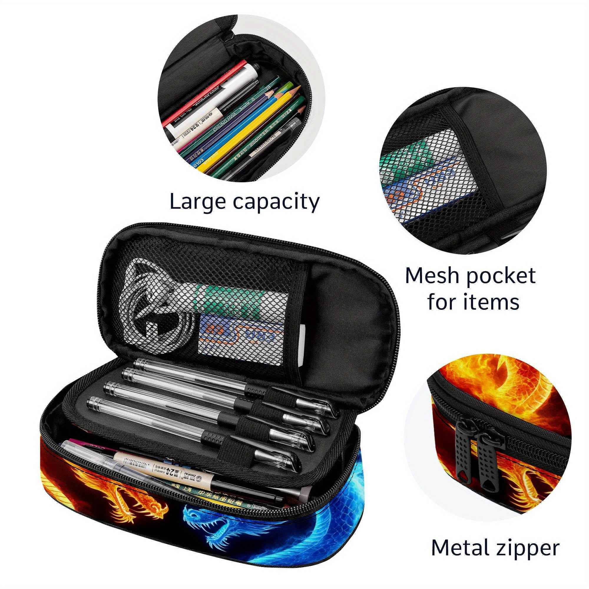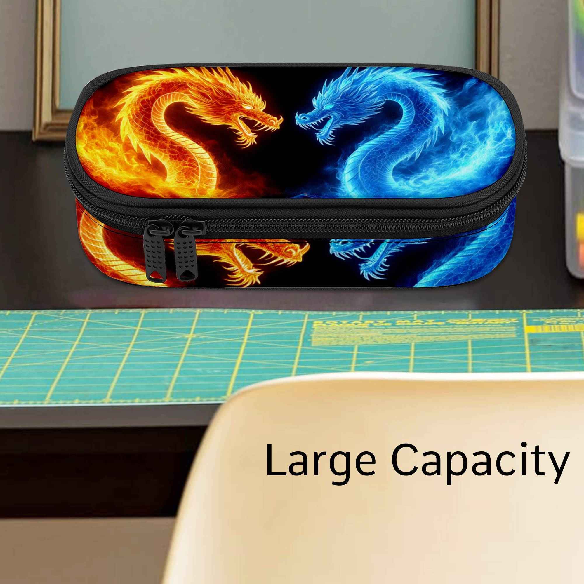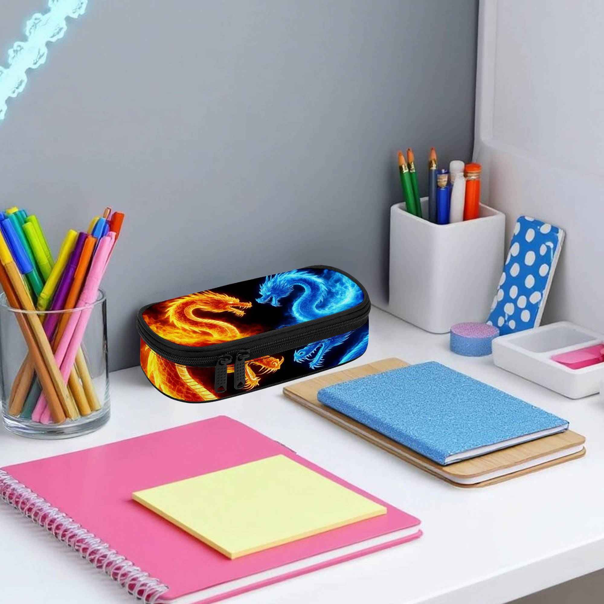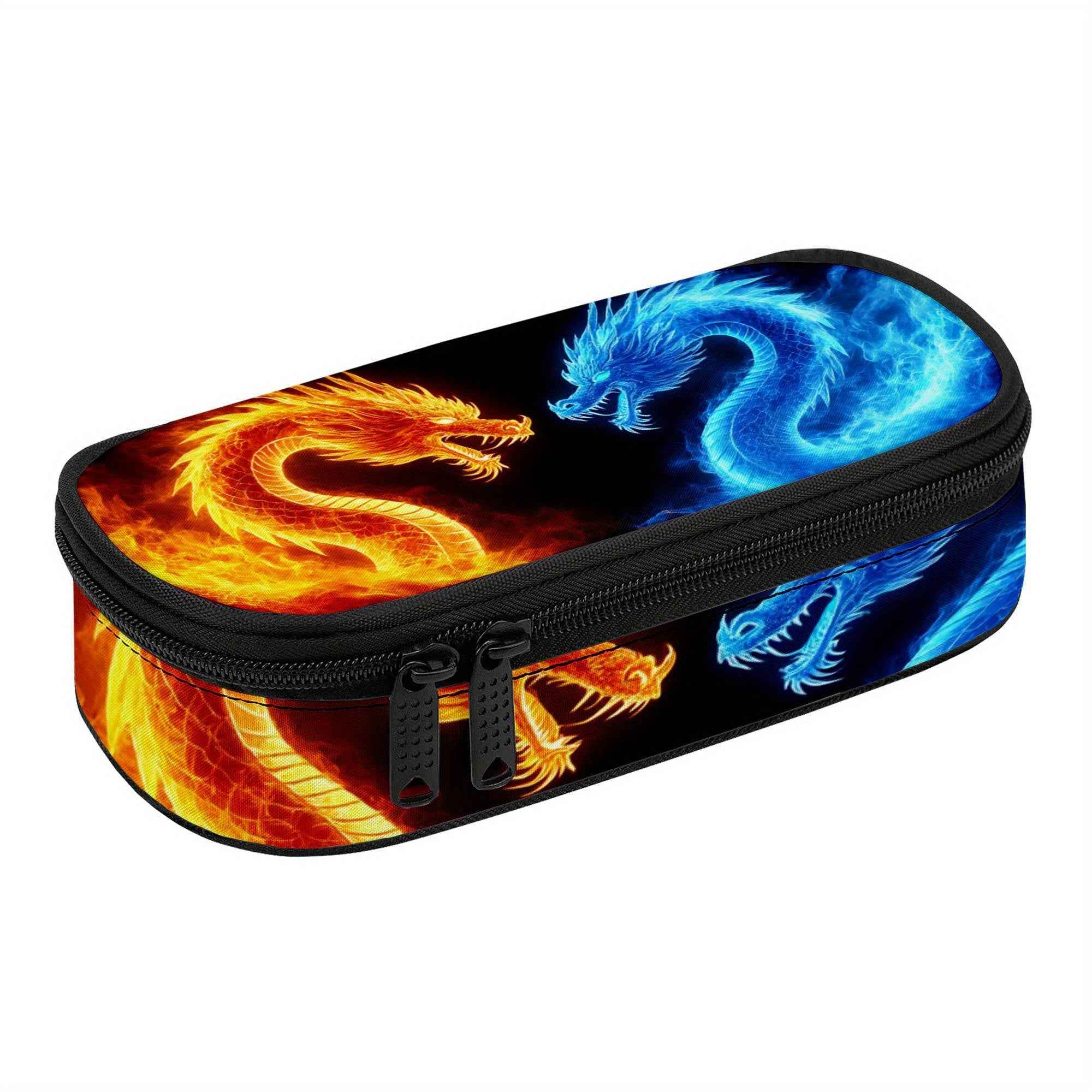 Portapenne Dual Dragons - Design Drago di Fuoco e Ghiaccio con Scomparto a Cerniera, Astuccio Resistente per Materiale Scolastico, Viaggi, Ragazze e Ragazzi Adolescenti