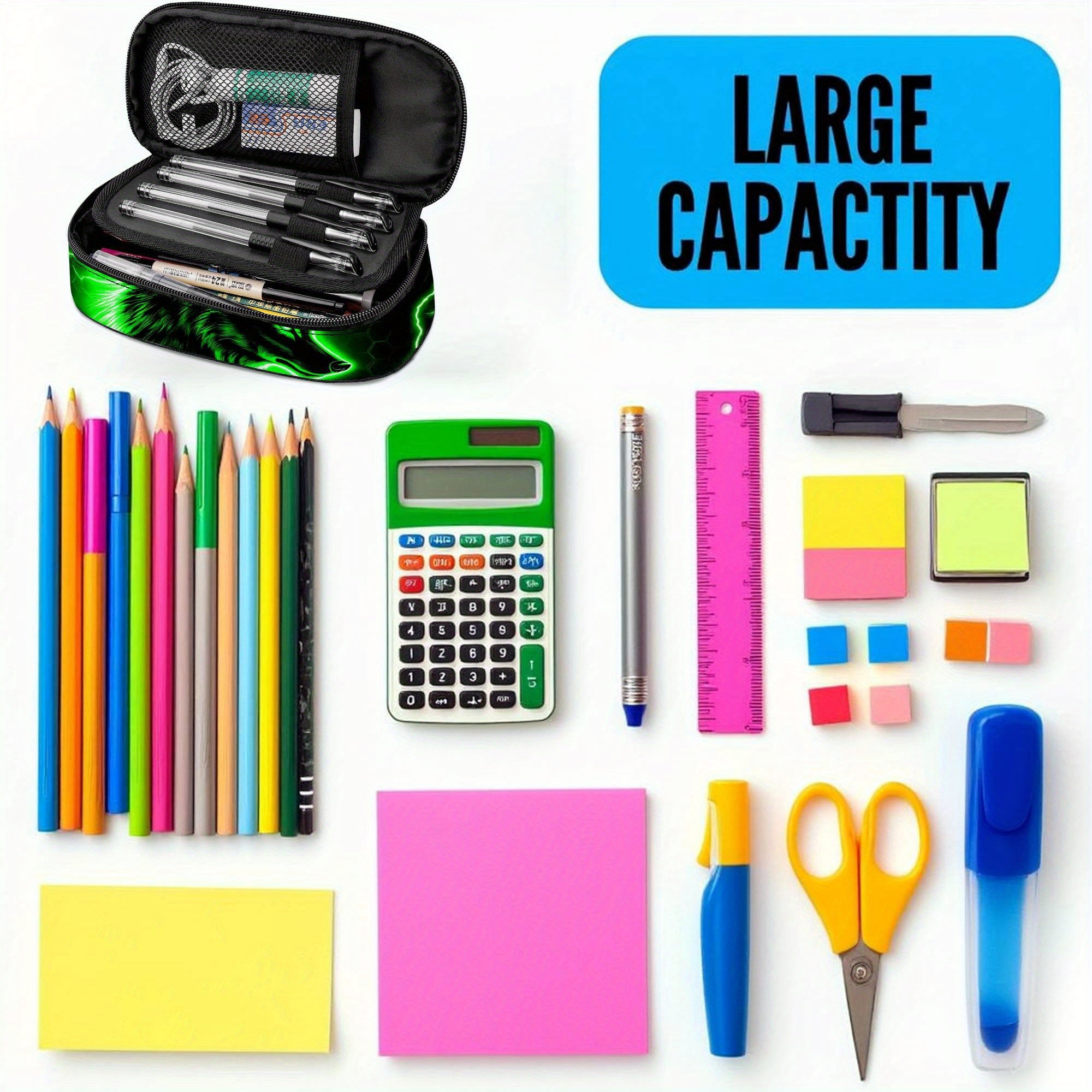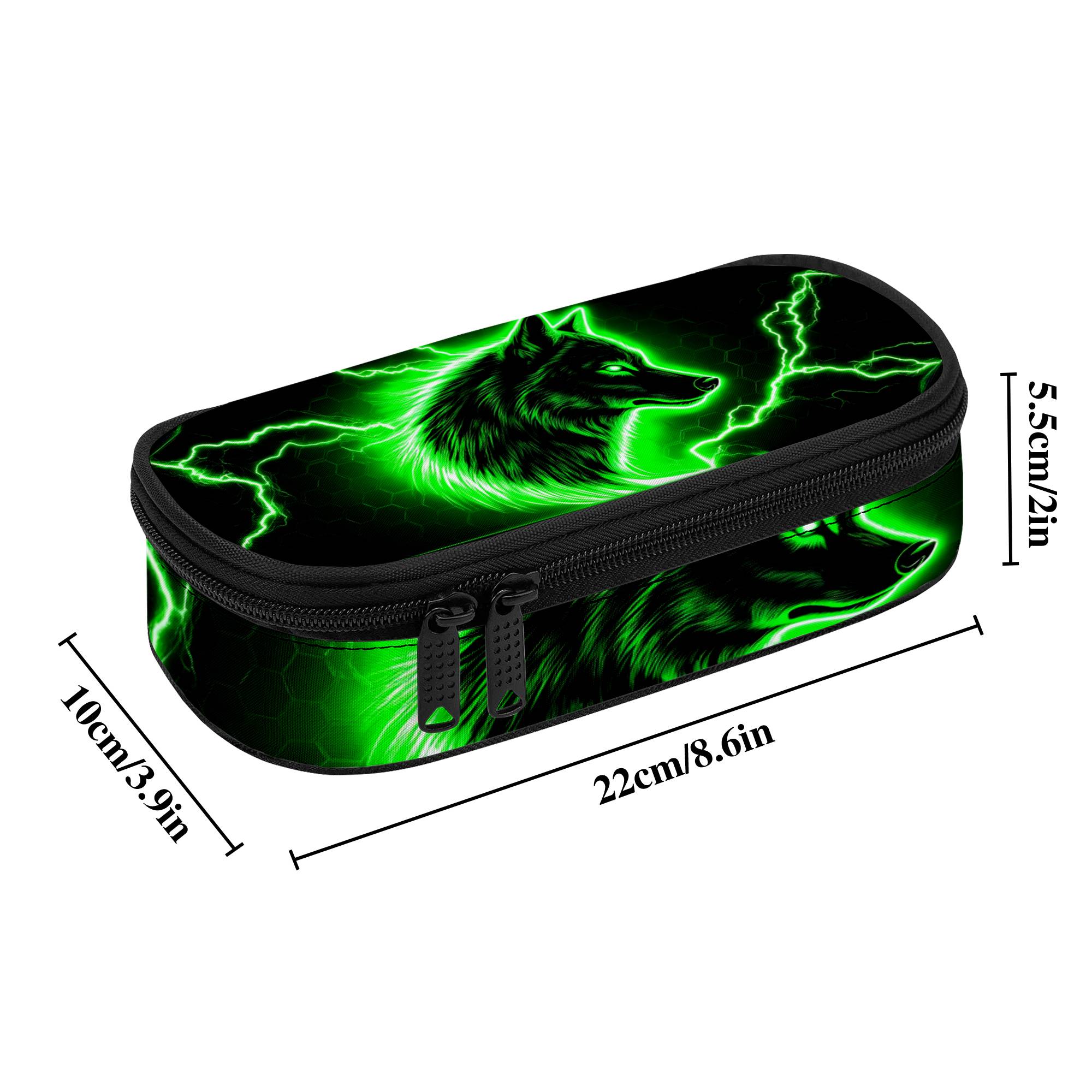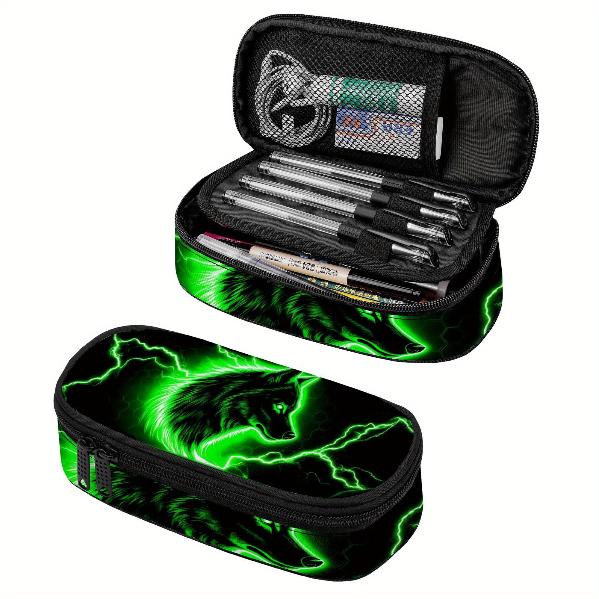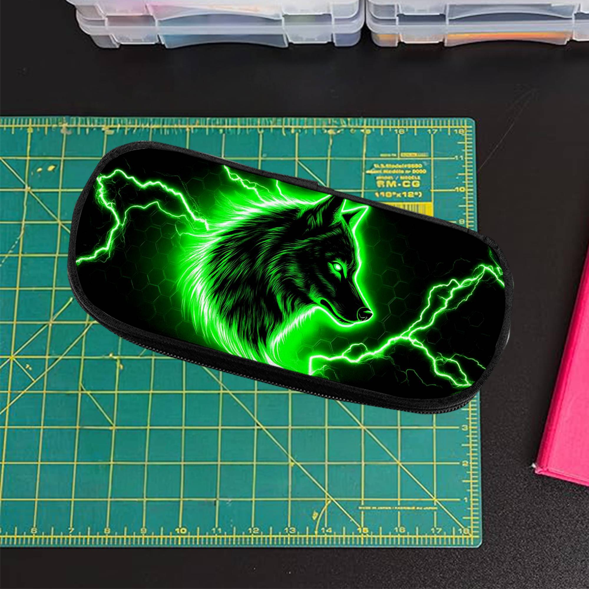 Portapenne Neon Verde Lupo Fulmine - Astuccio con Zip Design Elettrico Lupo, Organizzatore Trucchi per Scuola e Viaggio, Ragazzi & Ragazze (Compatibile con MacBook Air), Estetica Audace, Chiusura Sicura a Cerniera, Accessori per Adolescenti