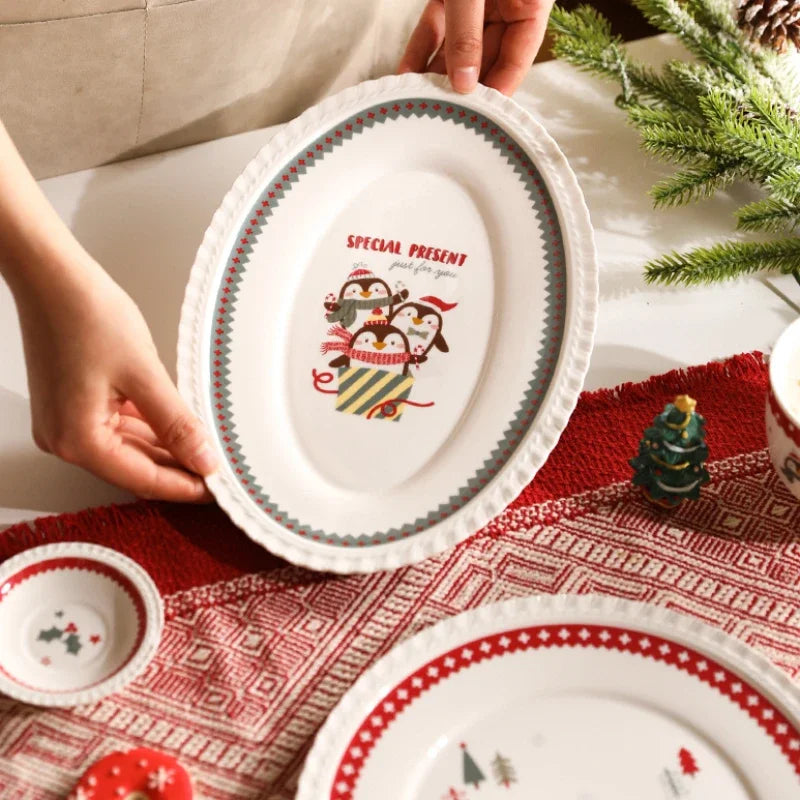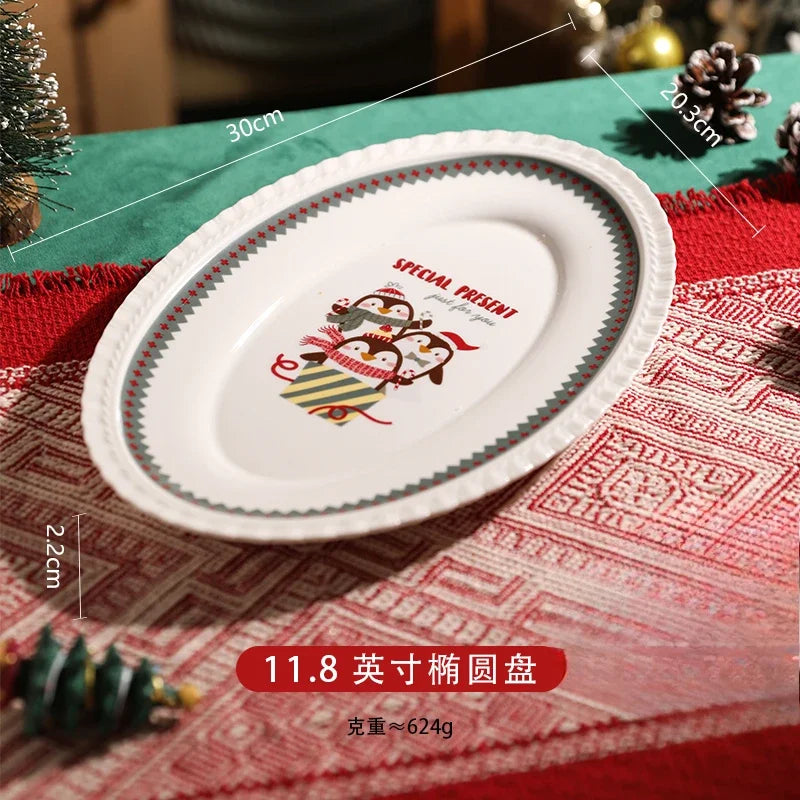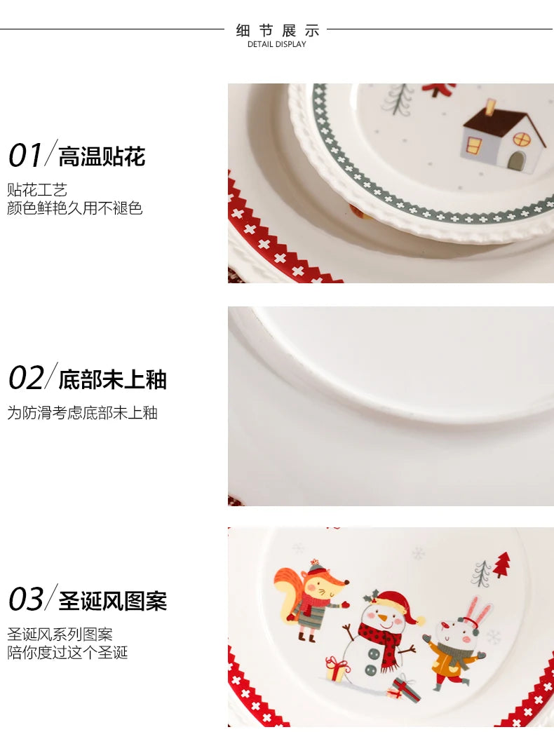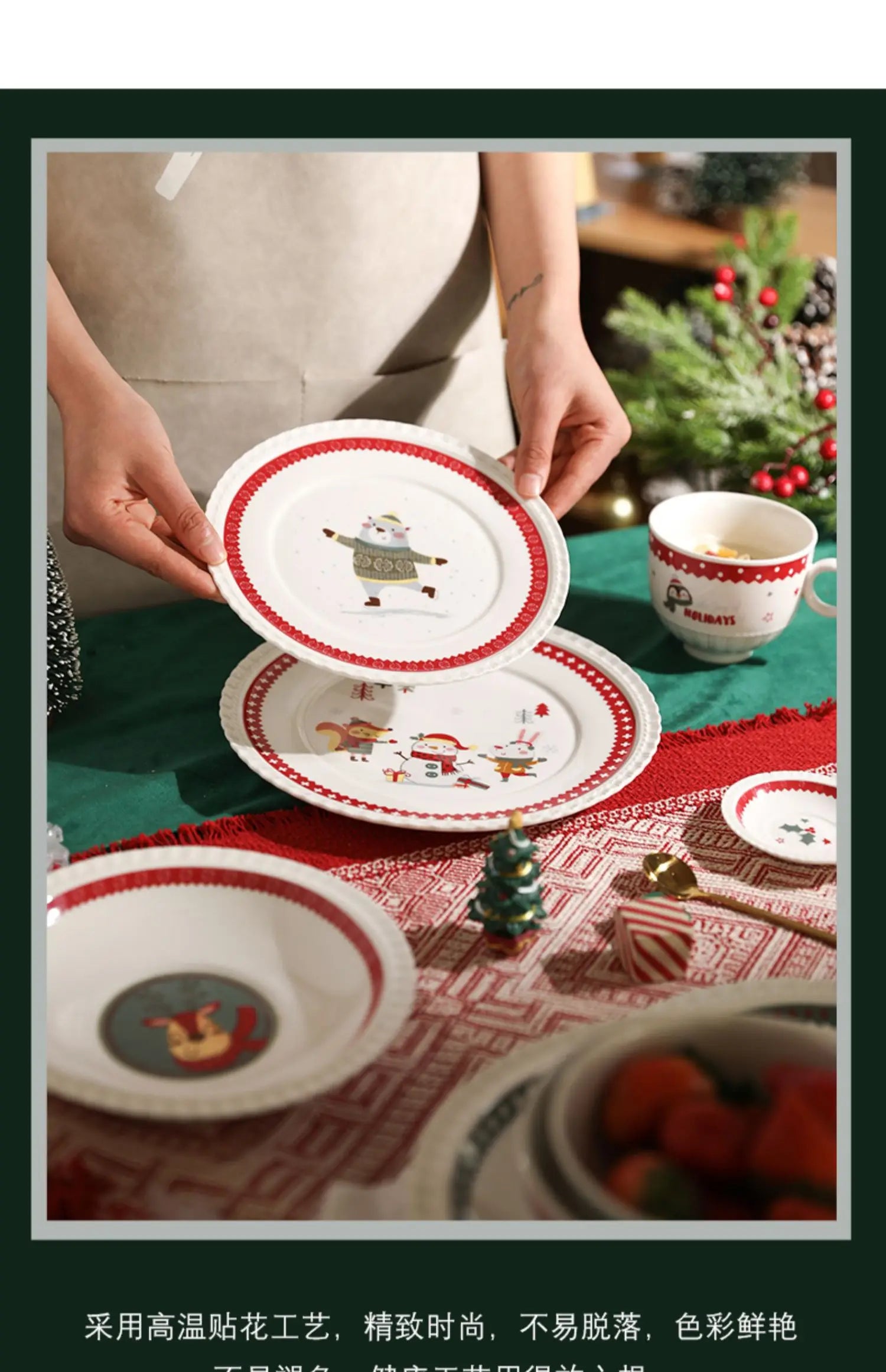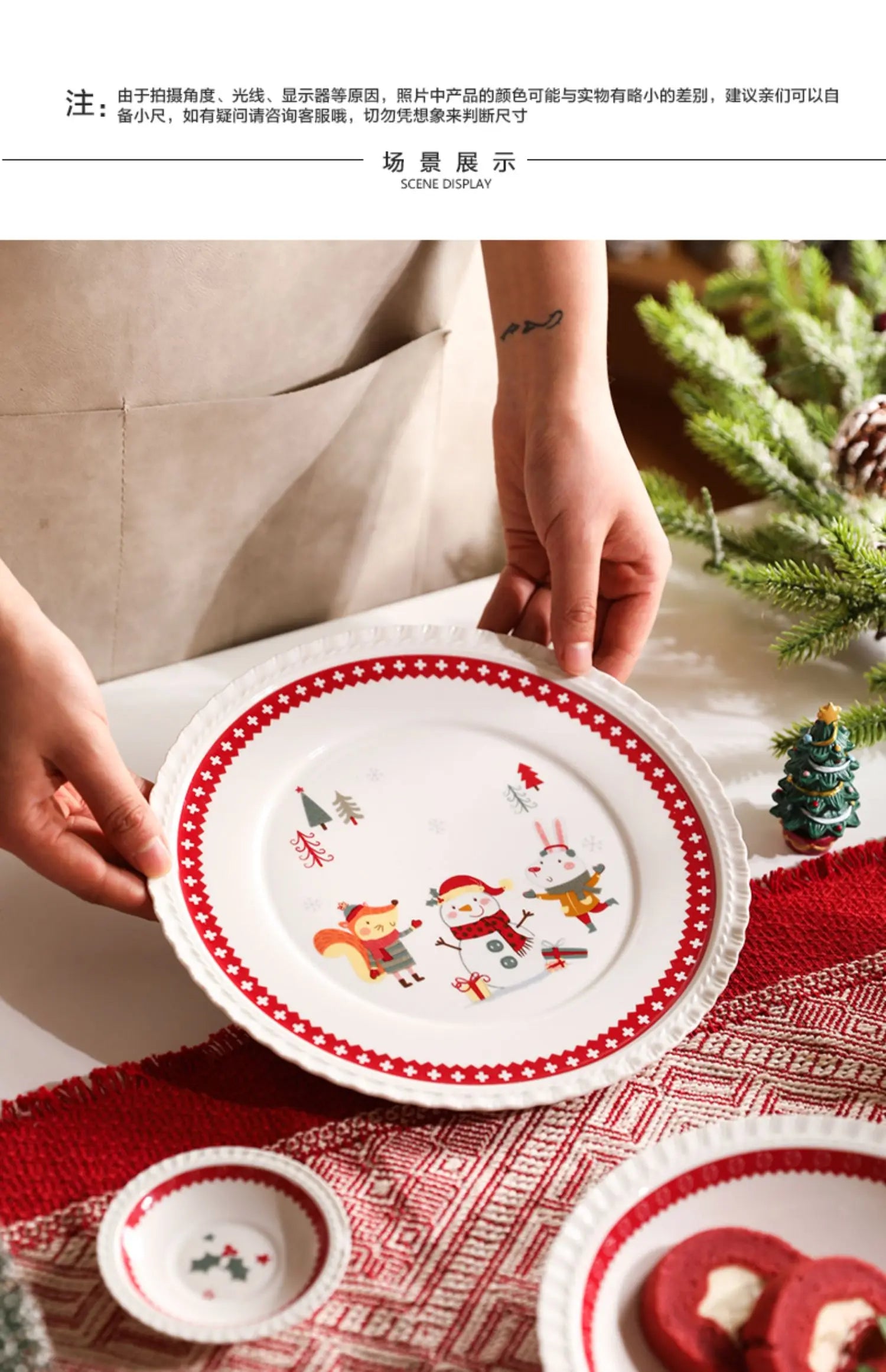 Posate natalizie Simpatico piatto Dim Sum in ceramica Piatto alimentare occidentale Regalo di Natale creativo